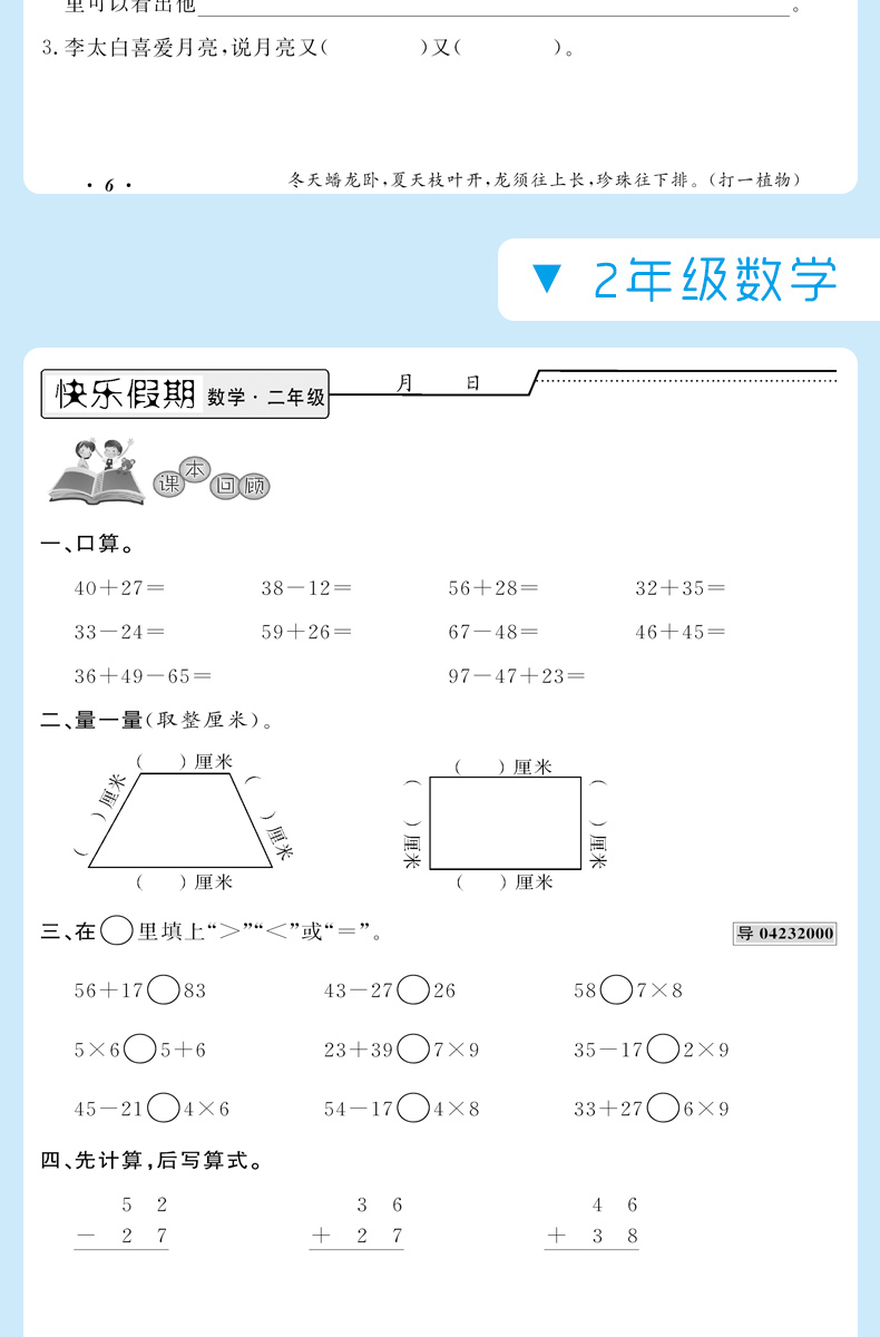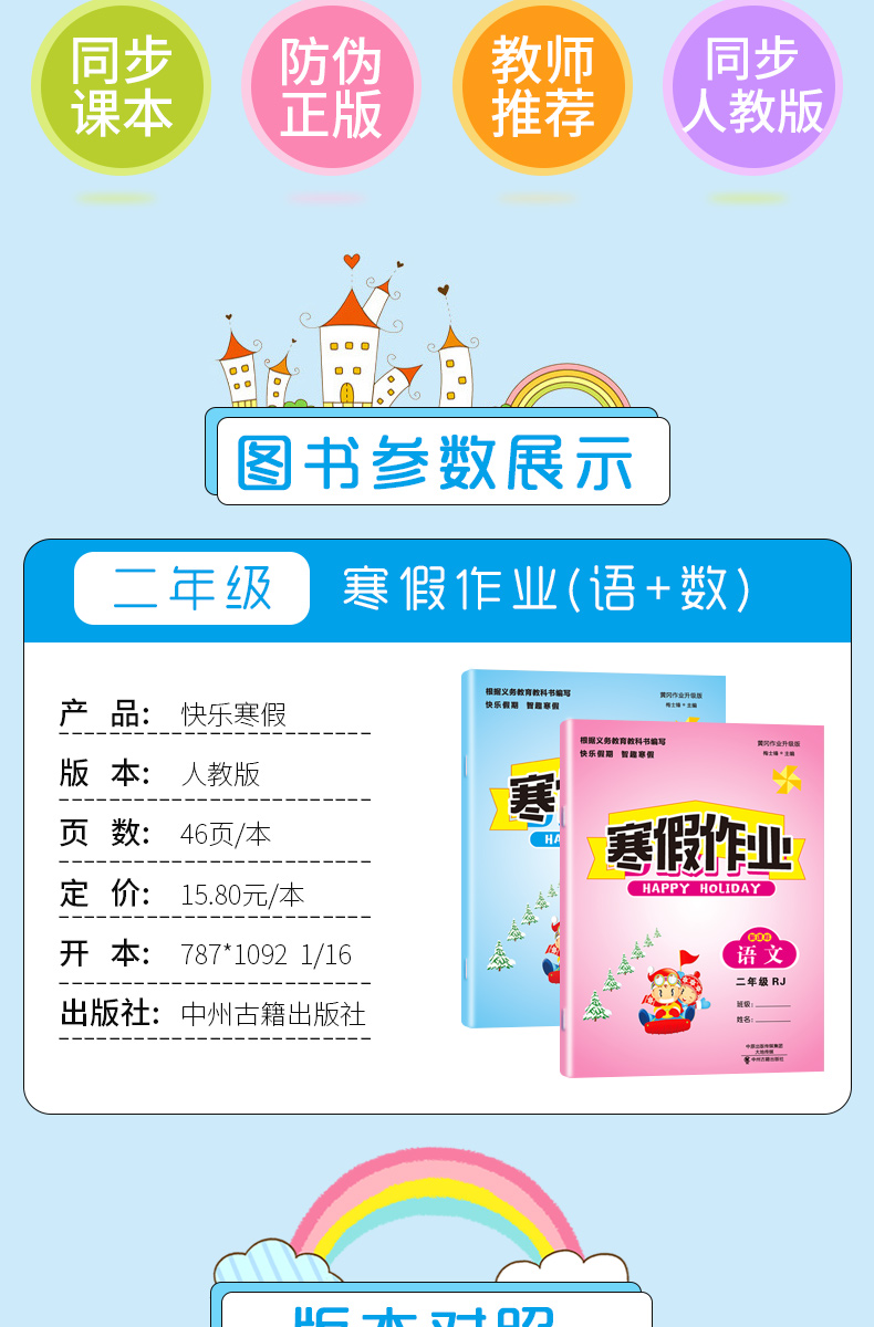二年级语文+数学共2本,巩固基础知识,从易到难,循序渐进,提升学习能力,帮助孩子提高学习效率