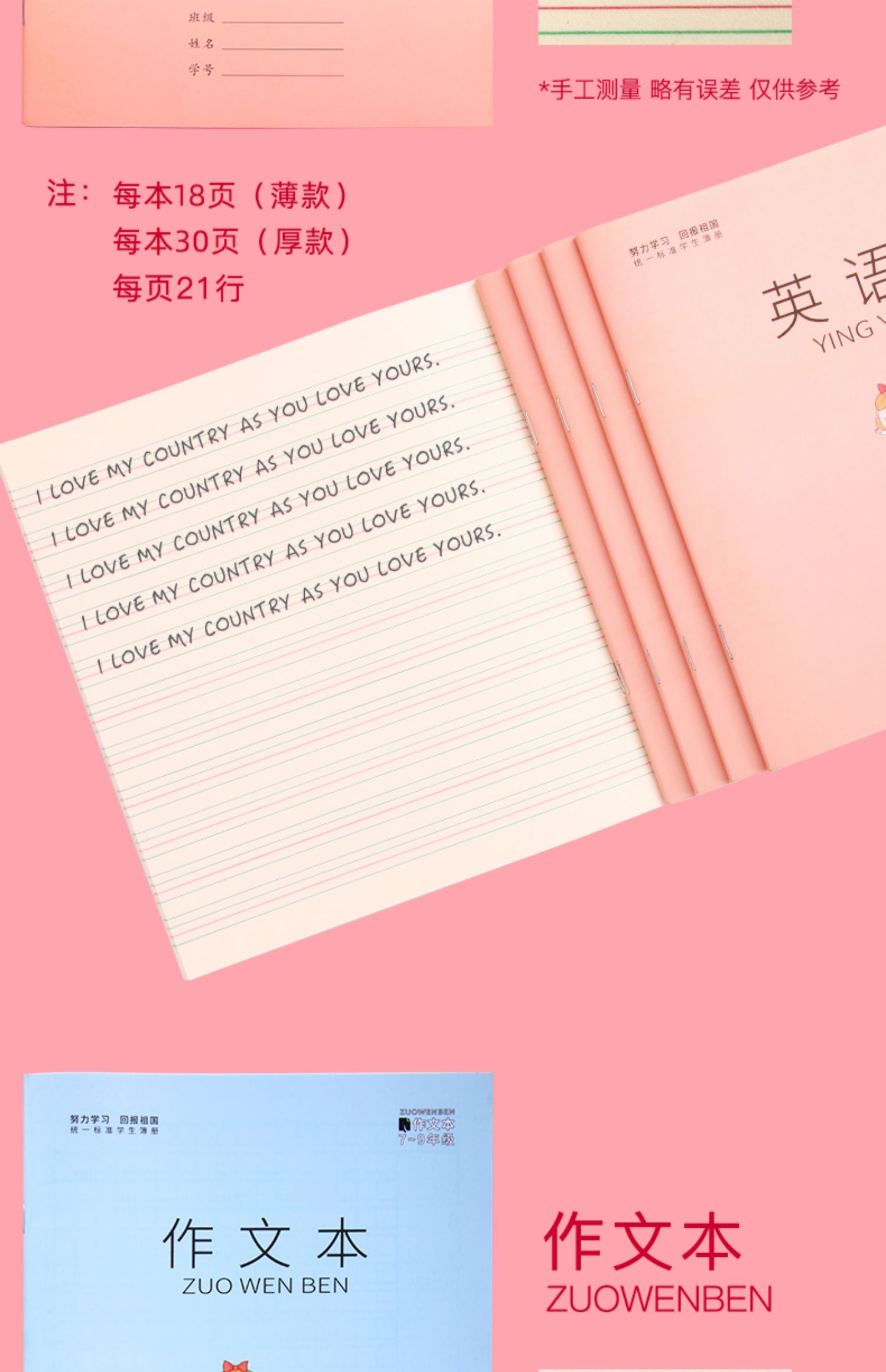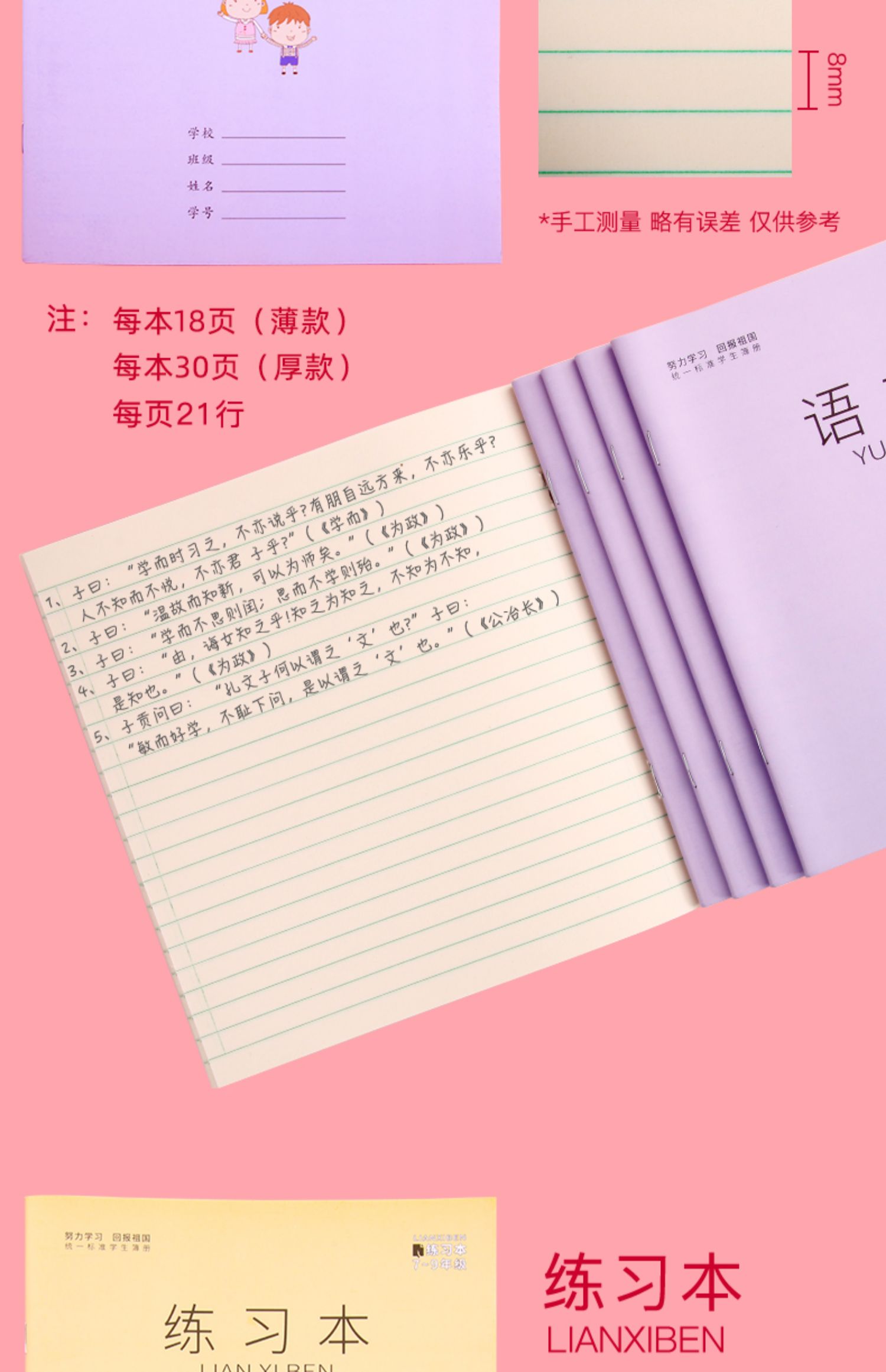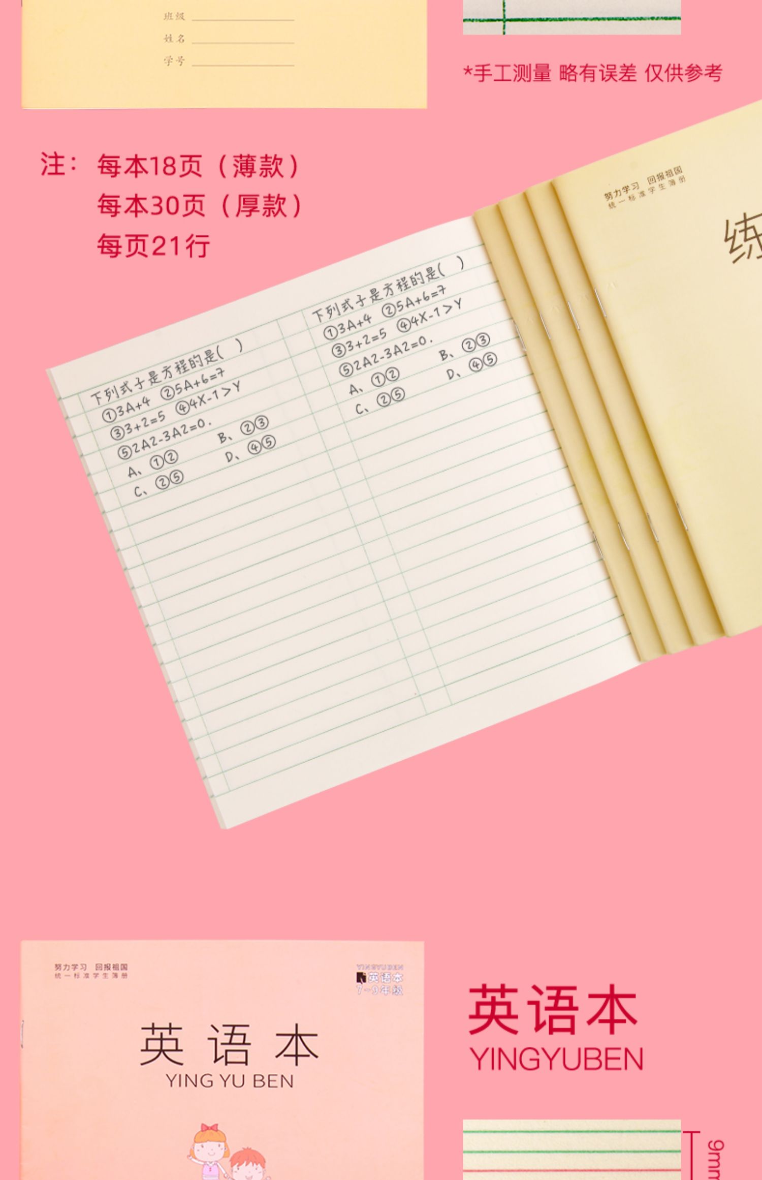 【每本22张,英语本、数学本、练习本三种可选!】米黄色护眼纸张,缓解视力疲劳,纸张厚实,写字不滑,让孩子高效学习,事半功倍,健康美观护眼本子,学习必备~