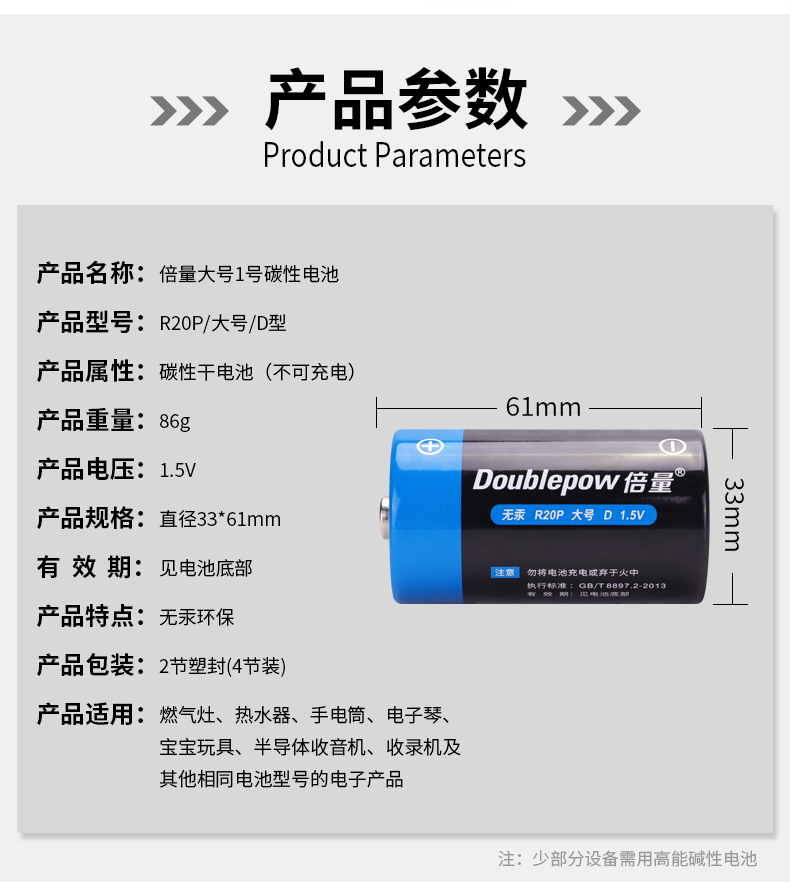 【倍量】4节干电池1号碳性电池