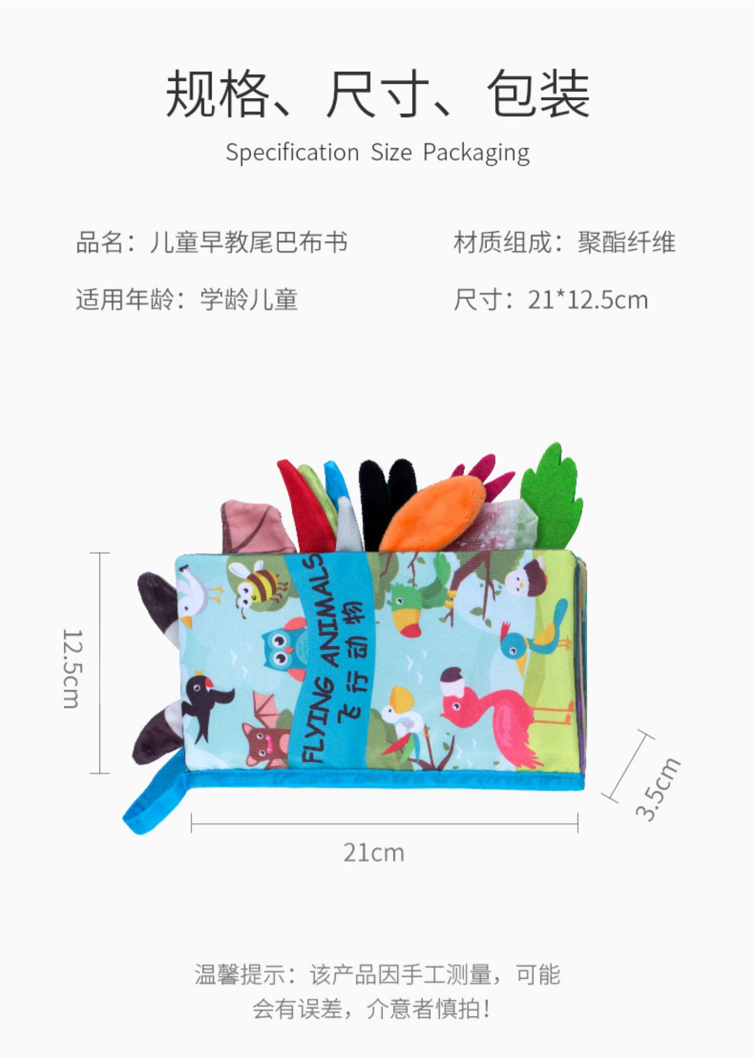 【快递不停,买二送一,顺丰包邮】宝宝小手抓的住的尾巴布书,手脑结合,缤纷动物,丰富色彩和‘沙沙’声,满足宝宝好奇心,耐咬耐撕。环保印染,机洗不掉色,可高温消毒~【赠运费险】