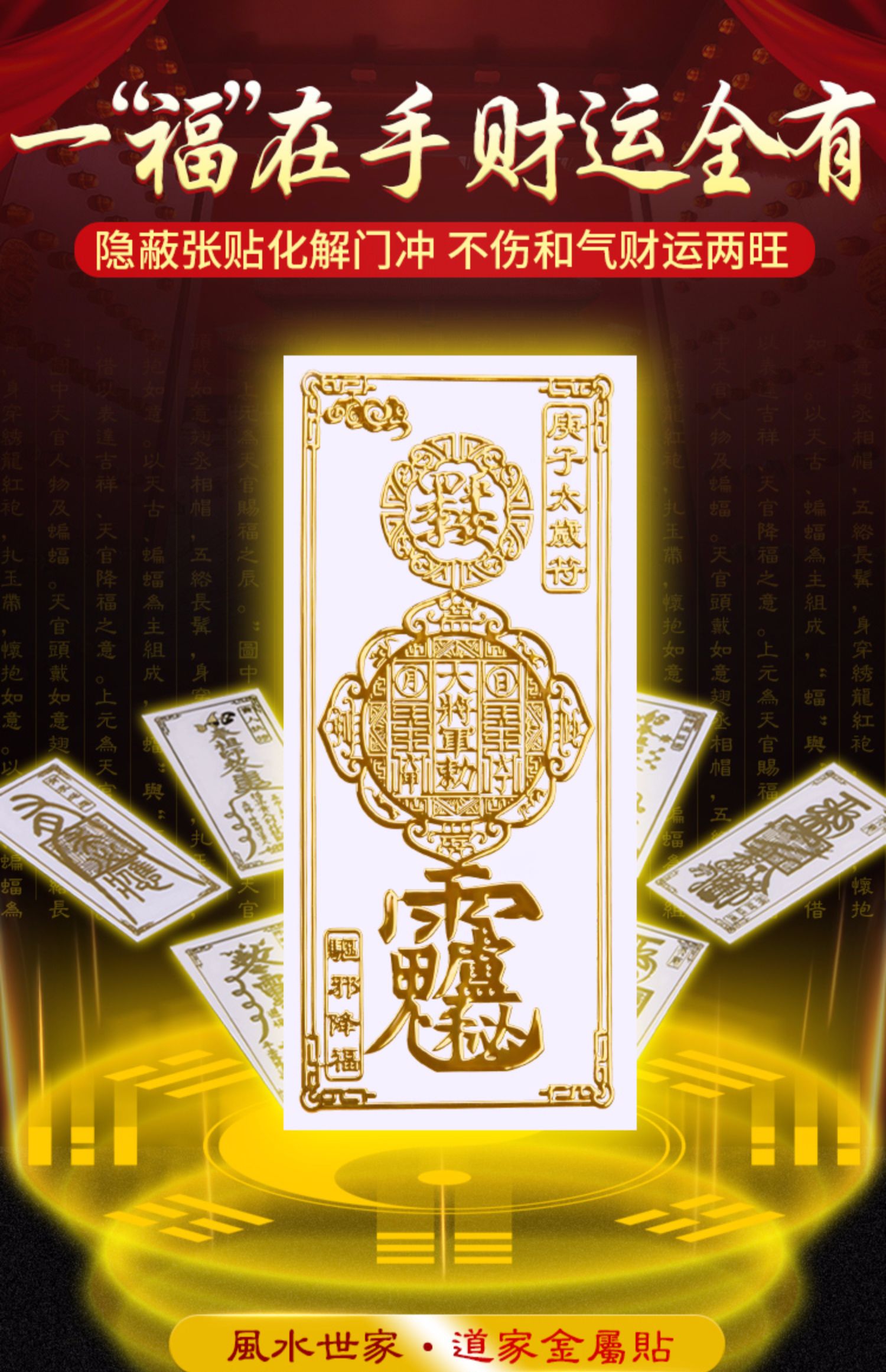 新年好运,门对门化解挂件招财化煞隐形大门符贴卫生间厕所对电梯楼梯卧室门。
