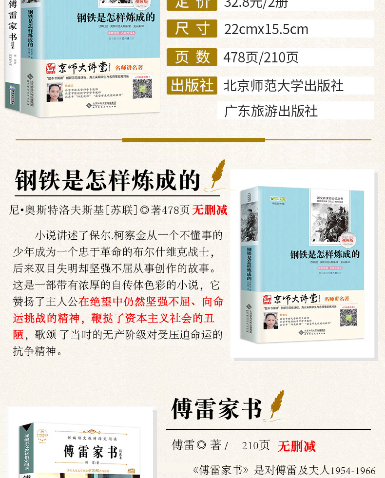 无删减《傅雷家书+钢铁是怎样炼成的》