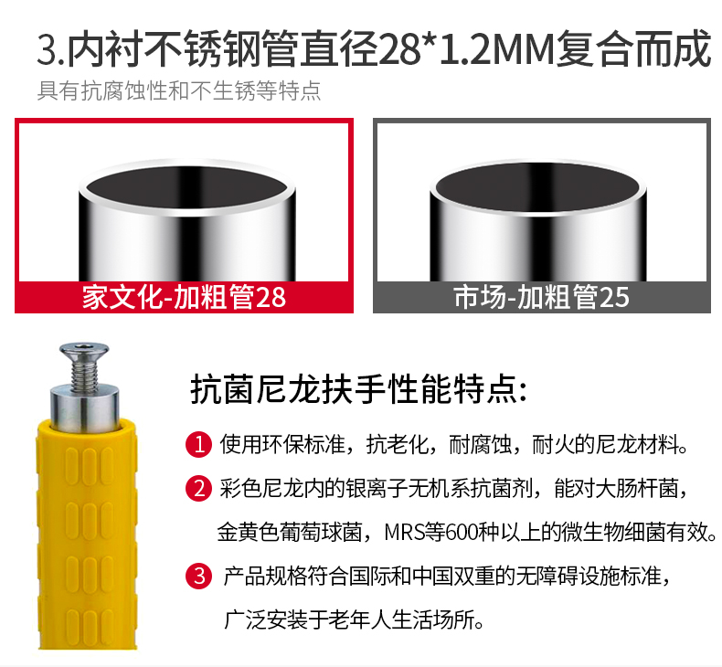 【现拍现发】马桶旁,浴缸旁,必备,配置夜光圈,不惧黑暗,表面颗粒防滑,增强扶手表面的阻力,加厚ABS套管,防止静电,双色和长度均可选择~专注老年安全,给父母多一点温暖,扶起孝心
