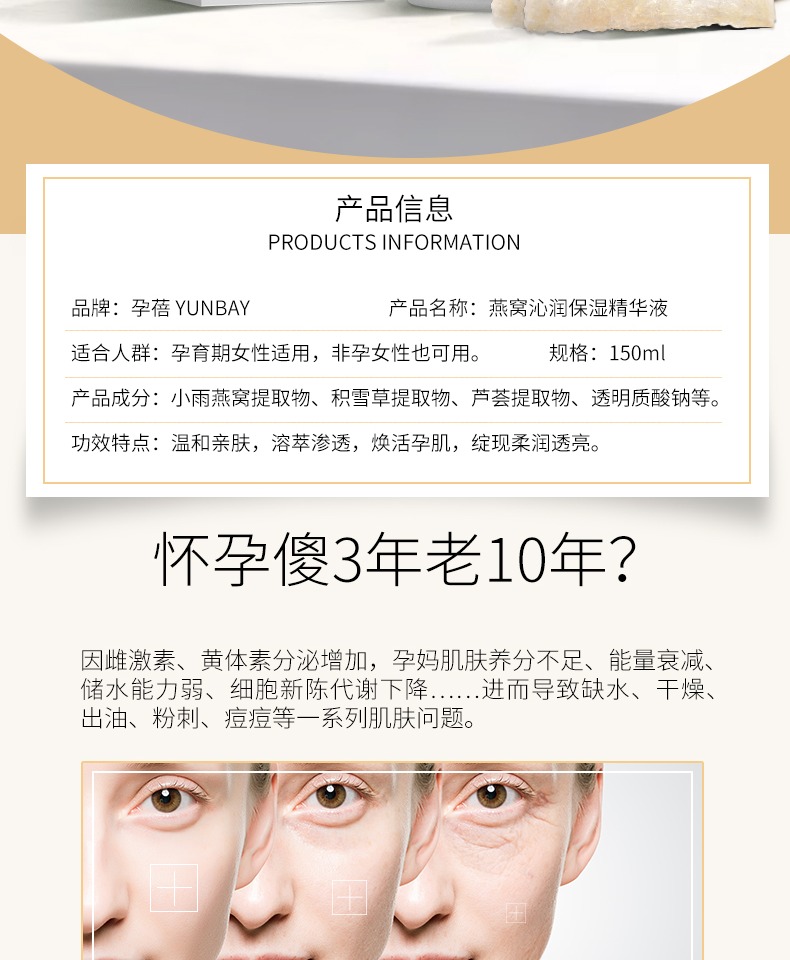 【孕蓓】燕窝补水保湿面部精华液,买一送面膜。小雨燕窝提取物,天然植萃!沁润焕活亮肤,绽放净白透美肌肤!