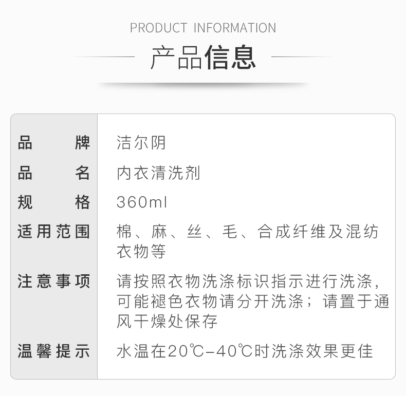 洁尔阴内衣洗衣液,使用更放心,专用洗内衣裤,天然植物提取物,温和不刺激,深层清洁,去异味,抑菌祛渍,姨妈期的血渍不再怕,大人小孩内衣内裤都能用!!!【赠运费险】