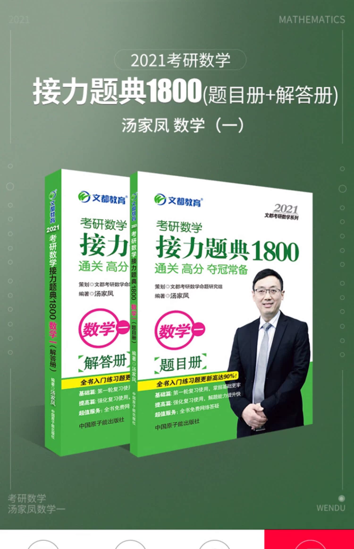 2021新版【赠公式+视频】,预售汤家凤1800题数学一,2021考研数学接力题典1800题数一文都数1,配2020李永乐复习大全全书历年真题李林,赠错题本+数学公式手册+实用复习指导。买一送三哦