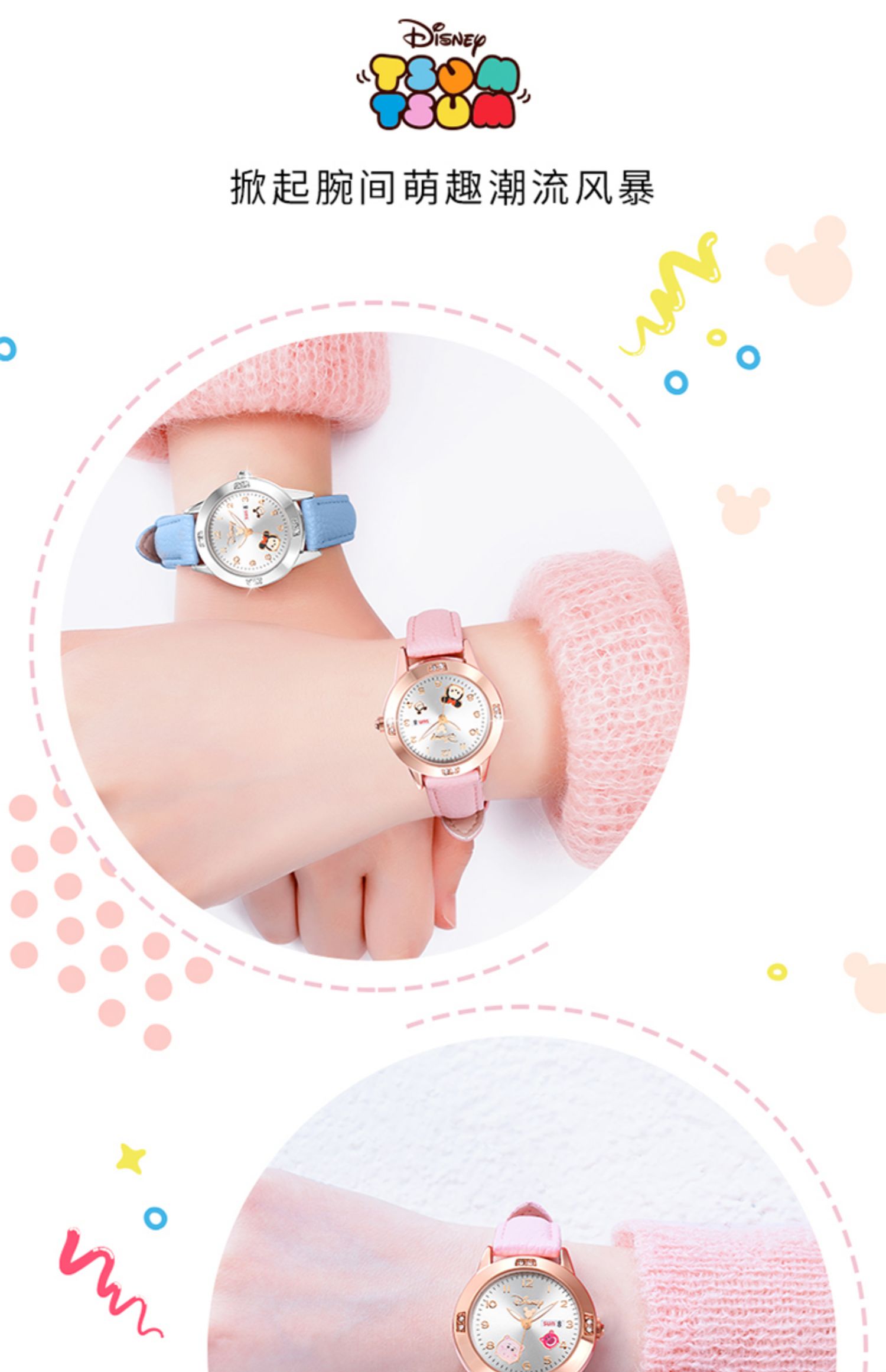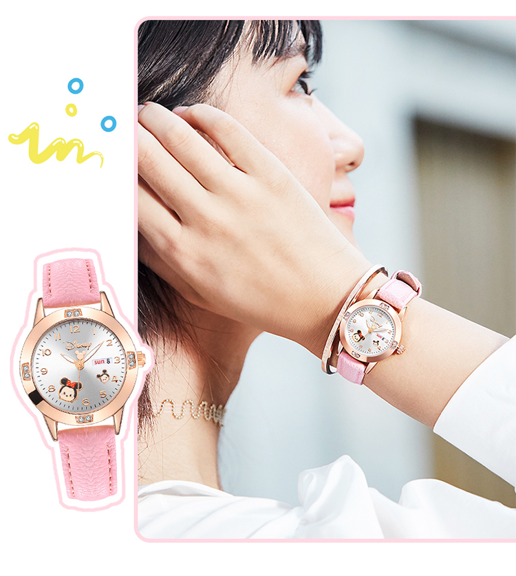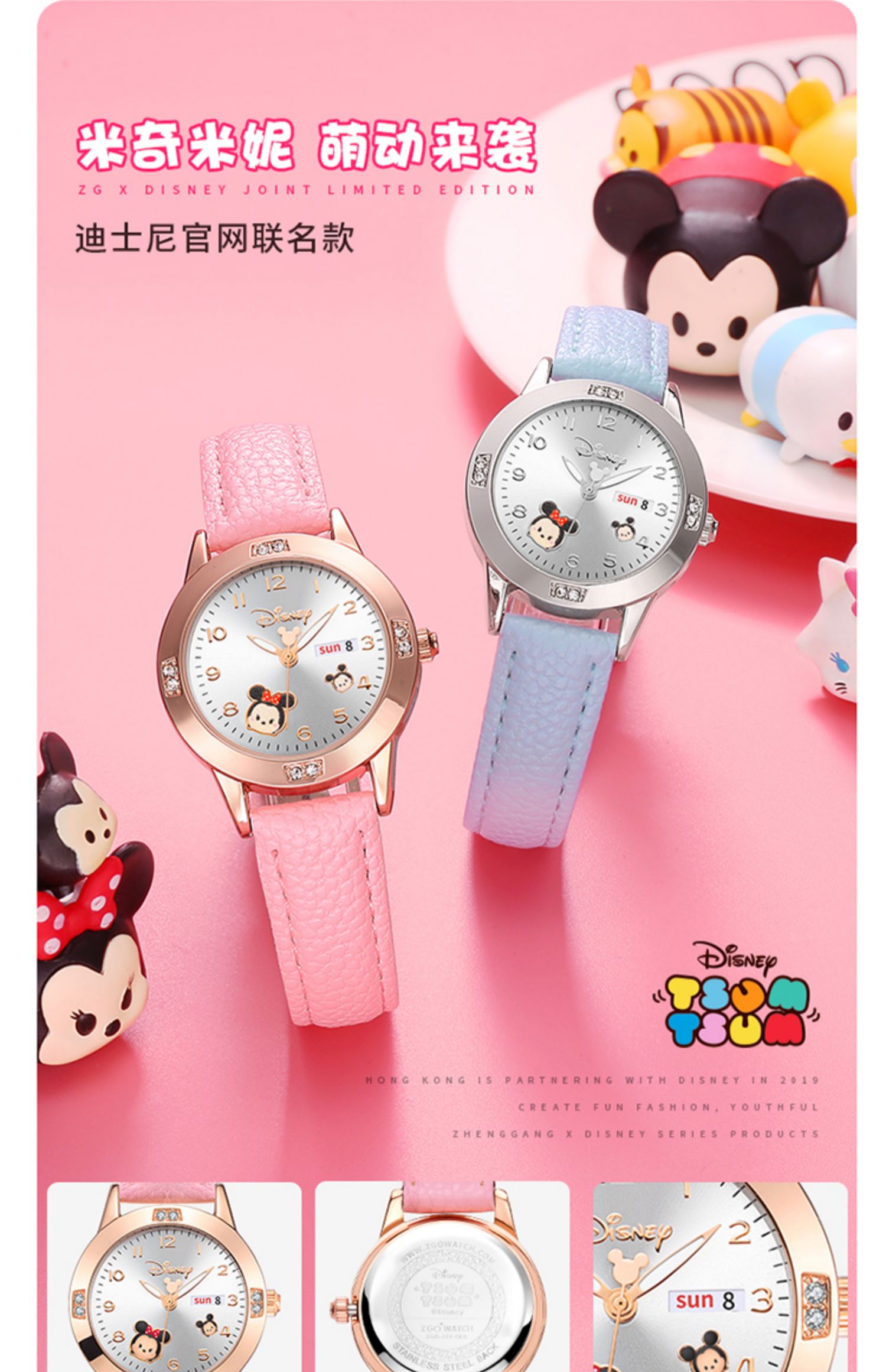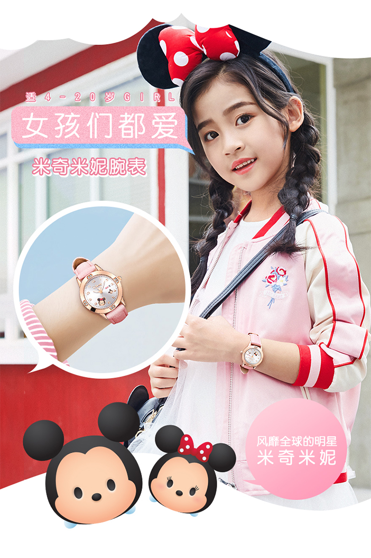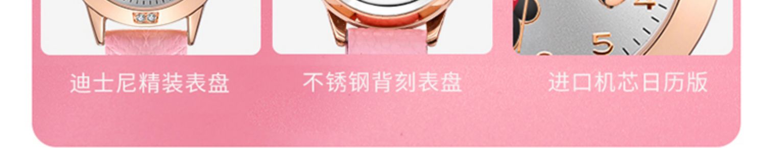 迪士尼官方正品,风靡全球的明星米奇米妮,迪士尼精装表盘,不锈钢背刻表盘,进口机芯日历版,亿万小女的可爱萌搭~
