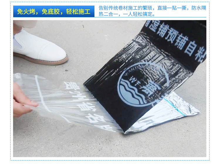 国标自粘防水卷材,屋顶补漏材料,楼房顶sbs改性沥青强力贴纸防漏水,强力自粘型,一粘即免火烤,免底胶,耐高低温,延展性高,黏性大,三秒治漏,终身质保,防水隔热二合一,四季皆可施工!