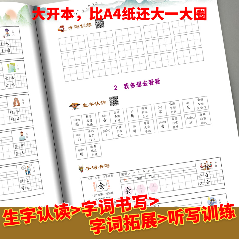 新春快乐,快递不打烊正常发货呦,增送!方格本和田格本。让孩子写一手好字,要从小练哇~乐学熊不只是练字帖!认读+书写+拓展+听写四合一,一年级同步人教版。