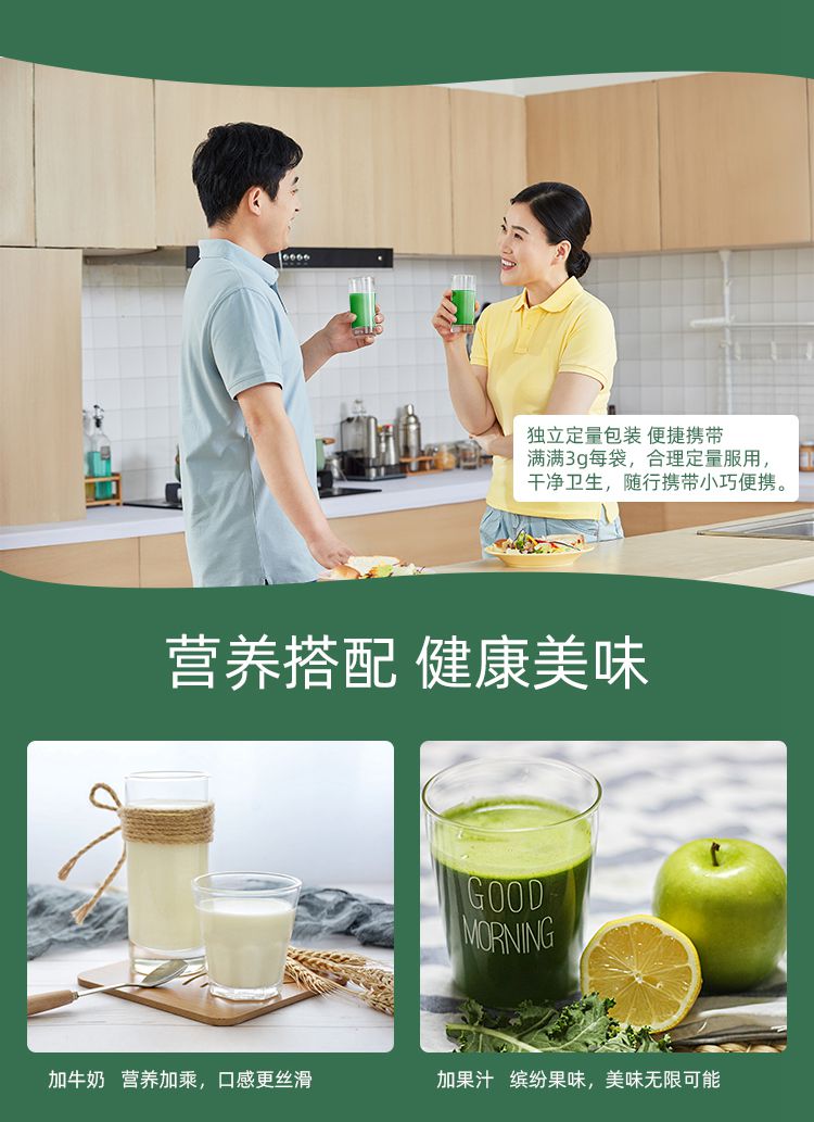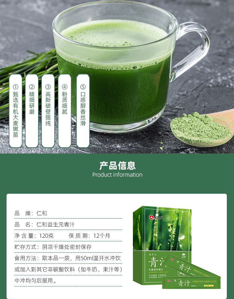 仁和大麦若叶青汁粉,独立小包装,添加益生菌,超丰富膳食纤维,清宿便排肠毒,让不爱吃蔬菜的你营养更均衡!让你轻松喝出来A4腰