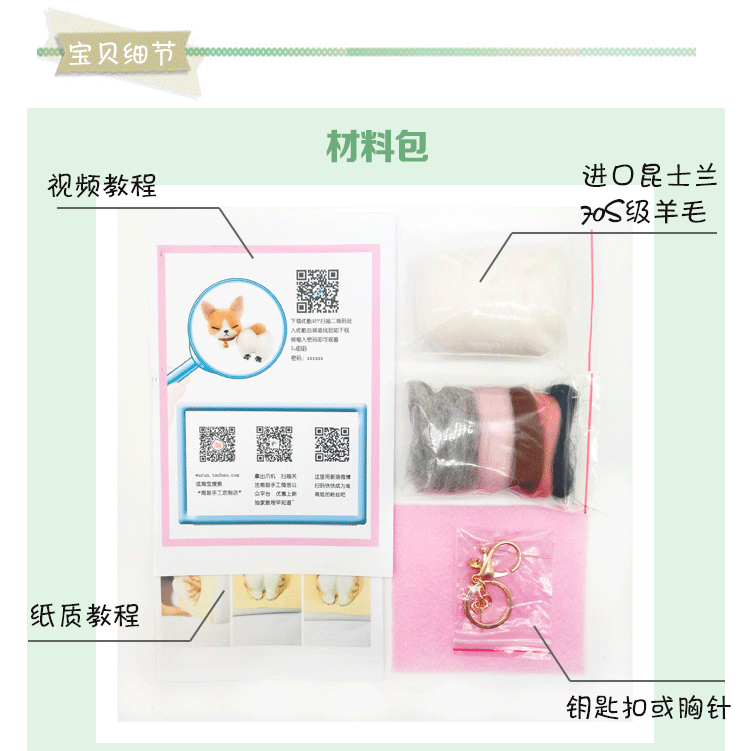 爆款!DIY手工羊毛毡戳戳乐钥匙扣材料包