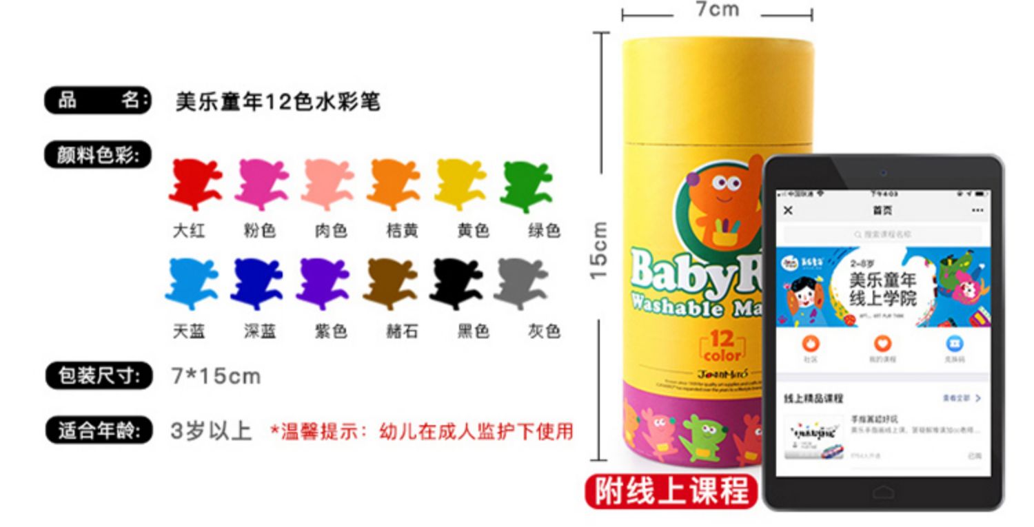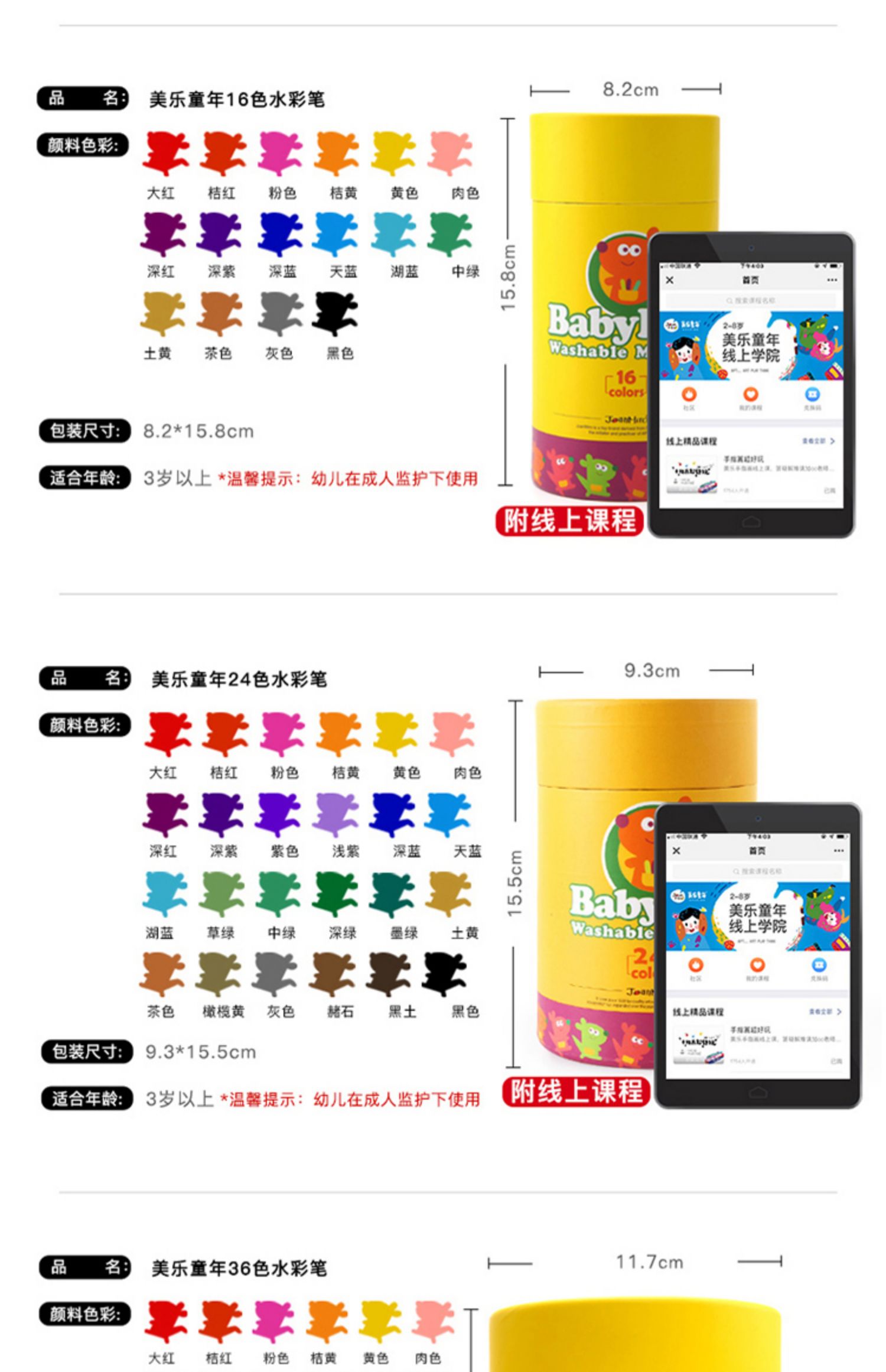 【买就送全年在线绘画课程】世界第yi儿童美术玩具品牌,欧盟美国双达标,环保级pp料,出水流畅好上色,水洗性高达90%!弄脏手、弄脏衣服、弄脏墙面都不怕