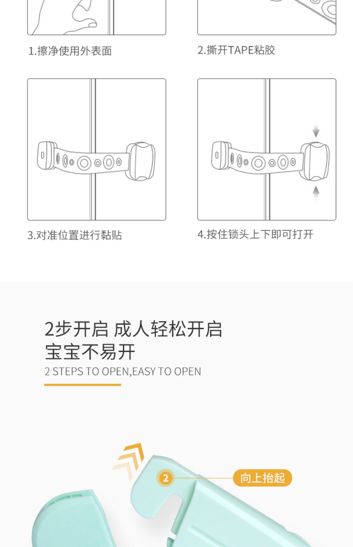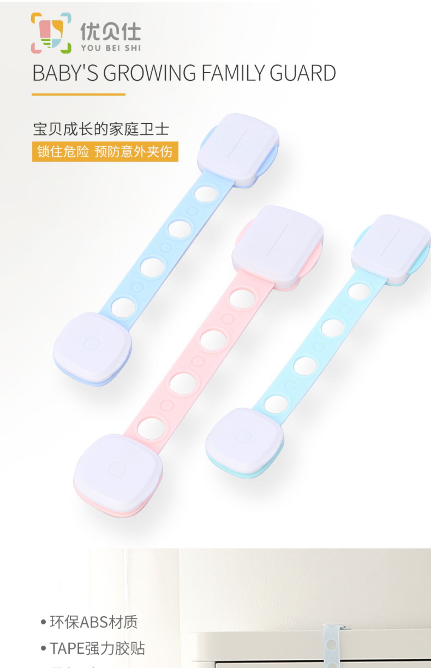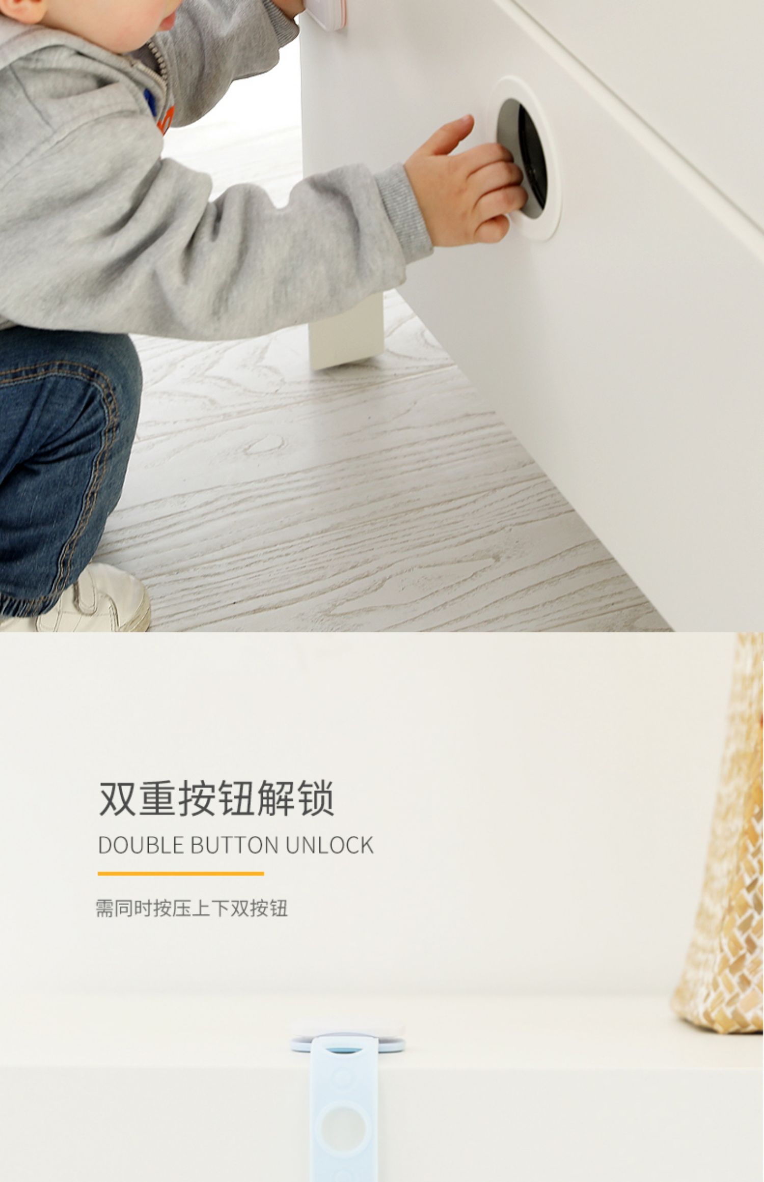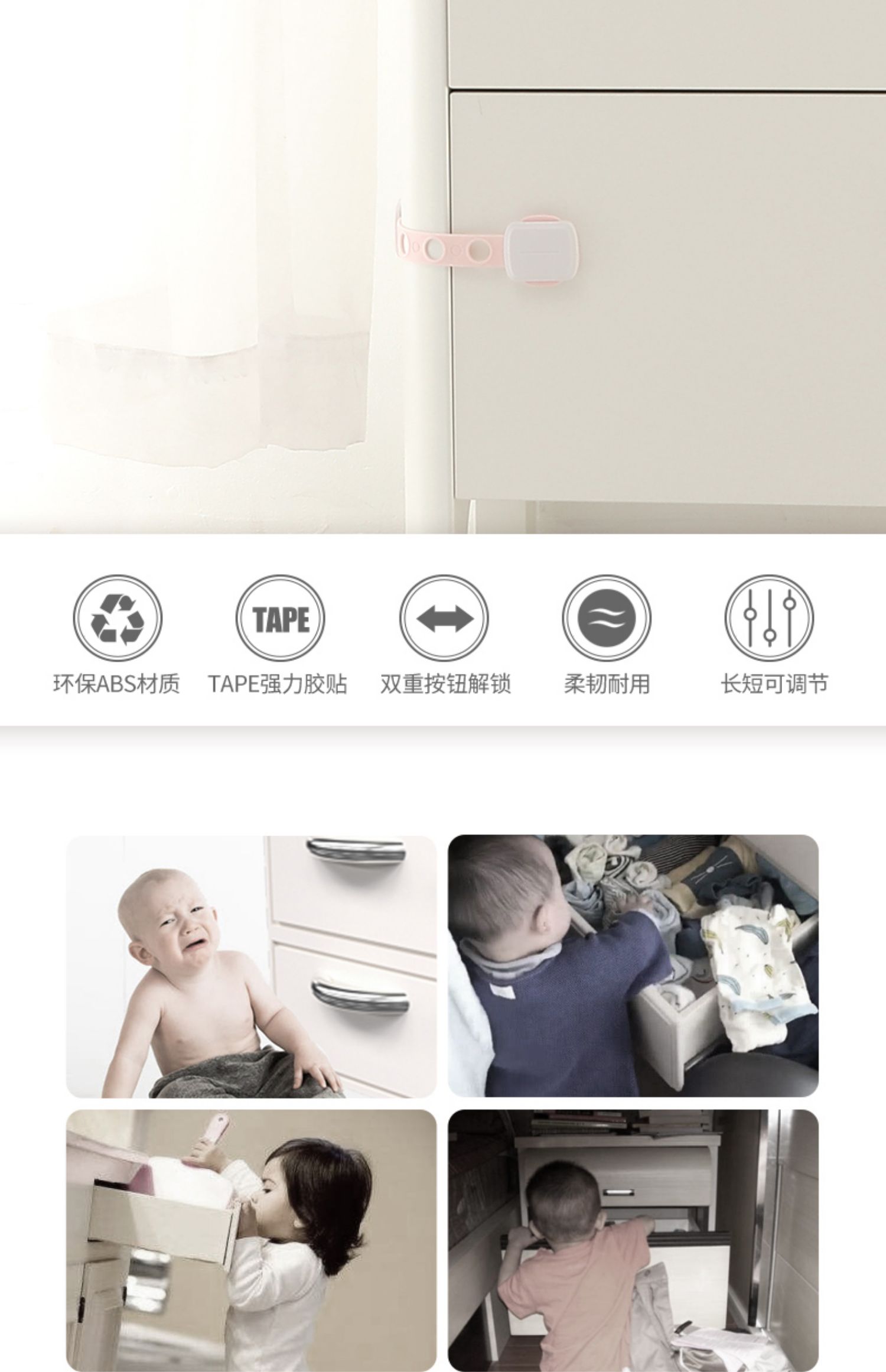 可调节安全锁,防止宝宝乱开抽屉柜门夹伤手,粘贴牢固,清除无痕,适用于多种场景,宝妈值得入手~