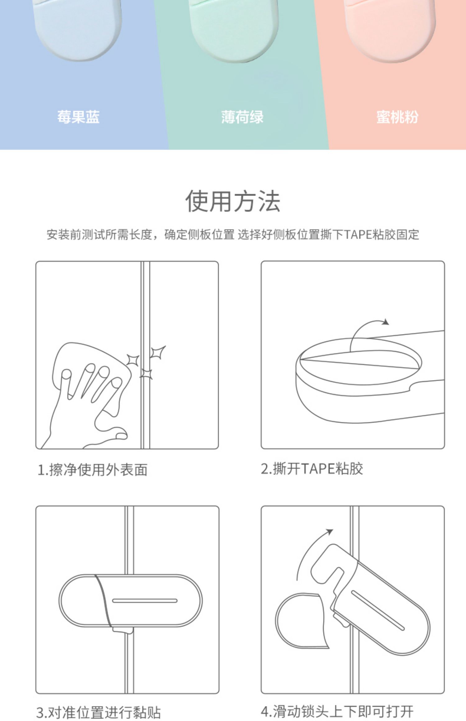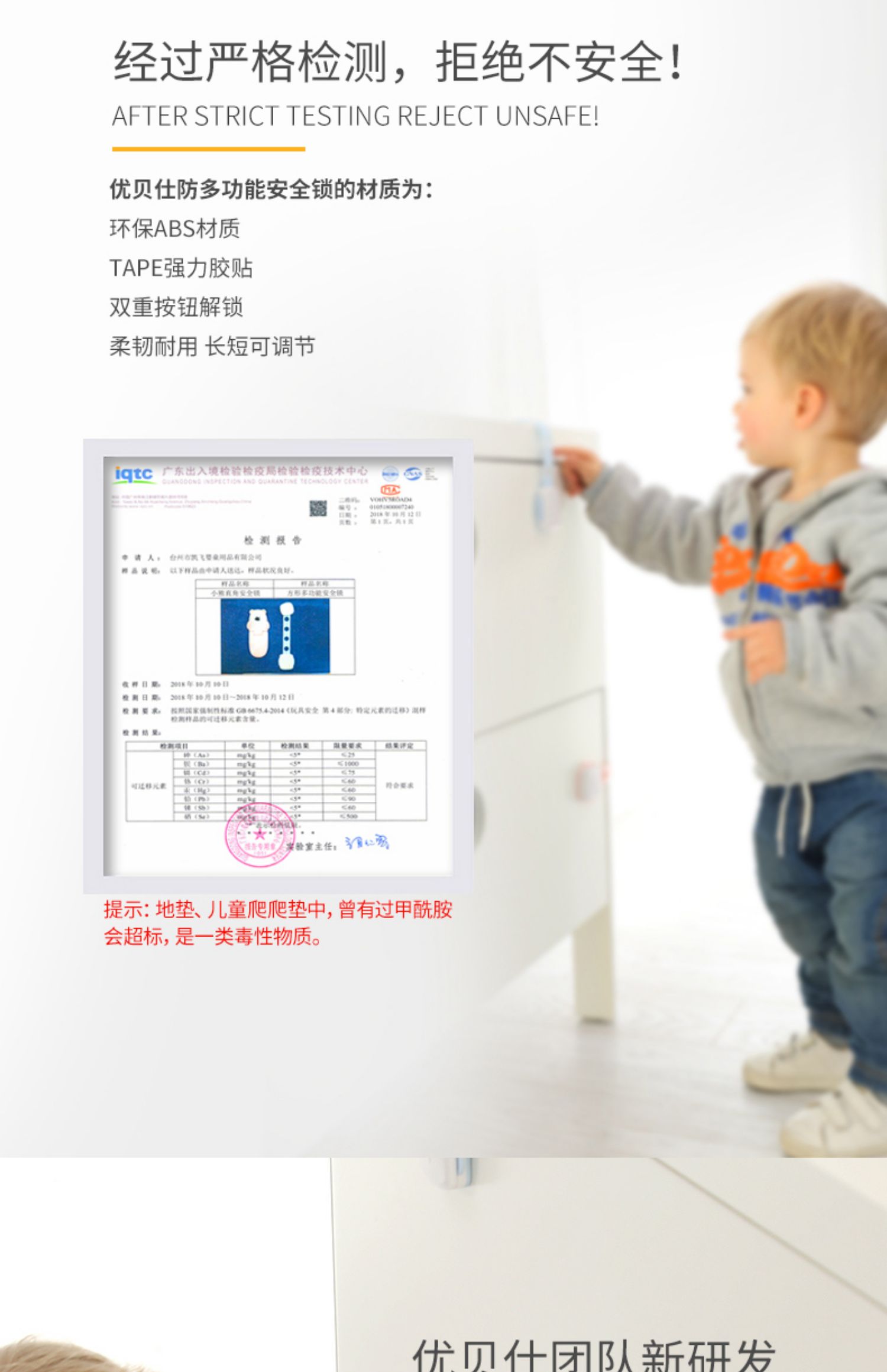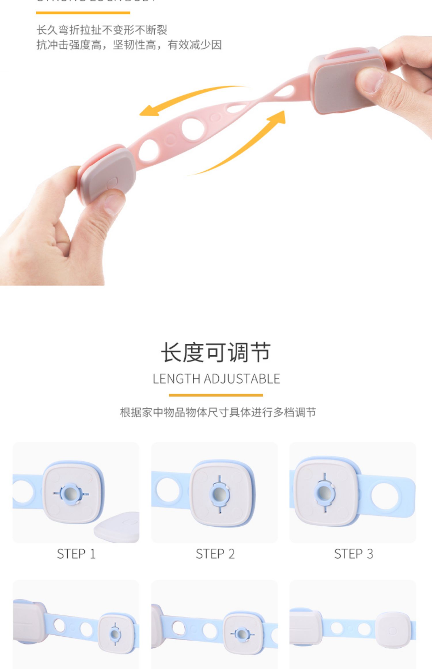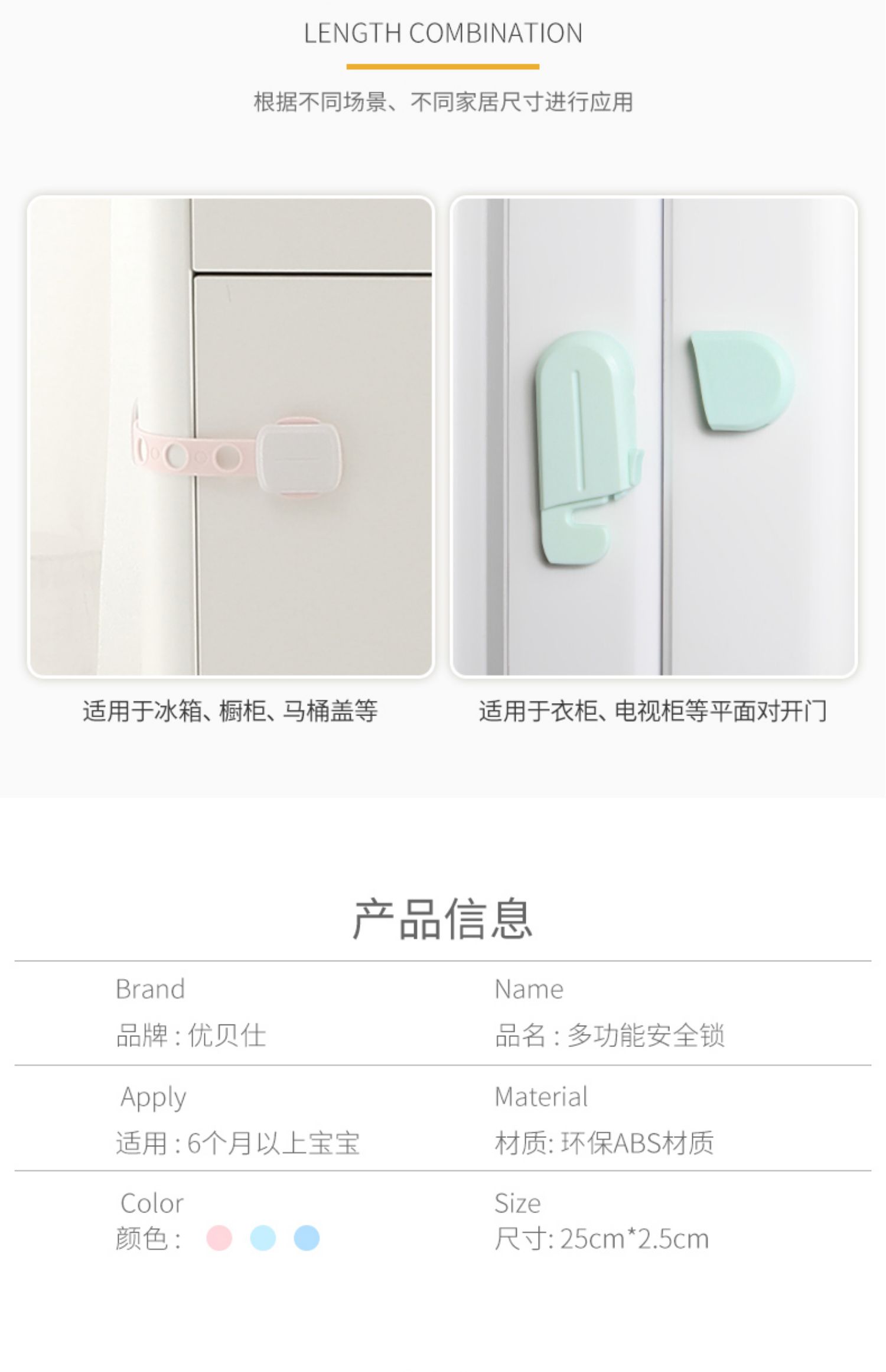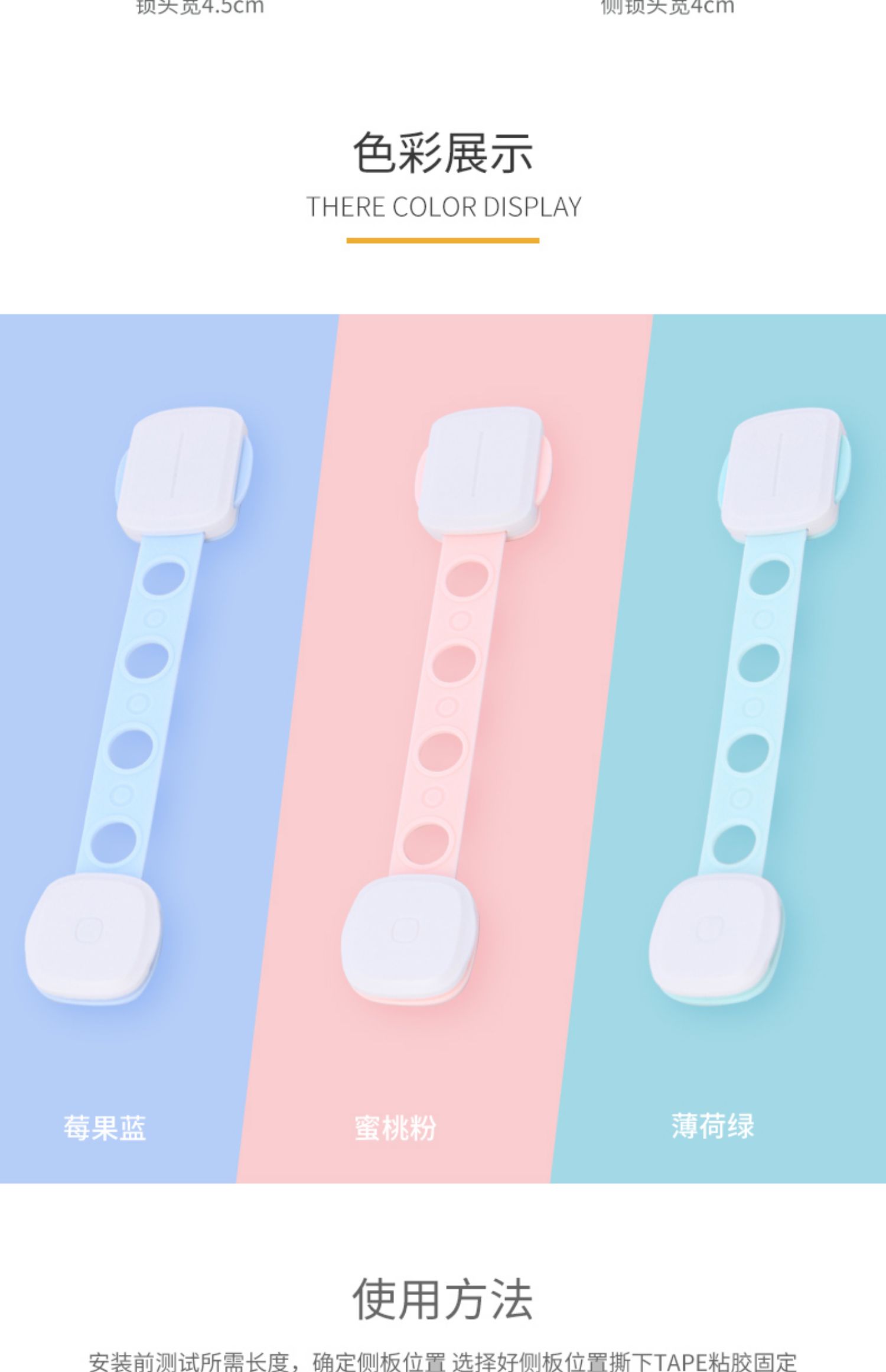 可调节安全锁,防止宝宝乱开抽屉柜门夹伤手,粘贴牢固,清除无痕,适用于多种场景,宝妈值得入手~