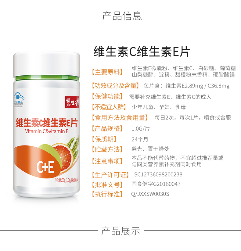 碧生源大牌的维生素C+E片!可以同时补充维生素C跟维生素E,具有抗氧化作用,防止皮肤色素沉着,坚持服用,皮肤越来越白皙~还能提高身体免疫力呢!
