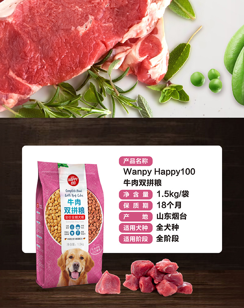 顽皮宠物通用牛肉双拼狗粮1.5kg