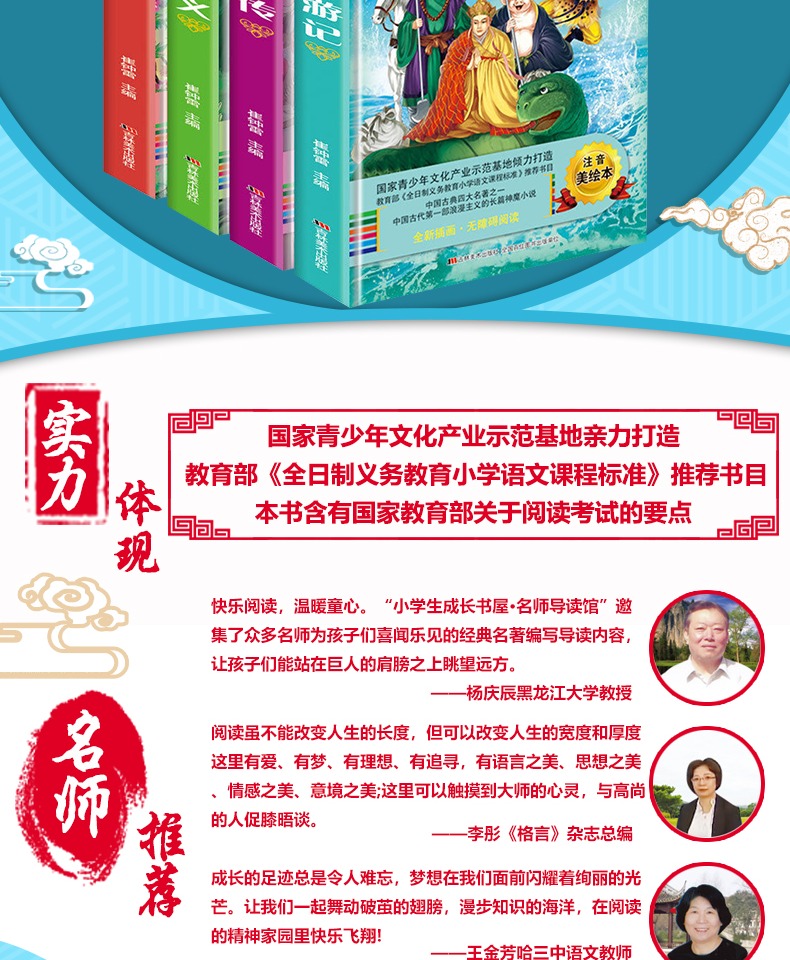 【教育部指定】中国四大名著全套4本,彩绘注音版,内含各种注解名师批注,适合全国中小学生使用,优质纸张,印刷精美清晰,保护视力,配在线课程,新课标必读书!