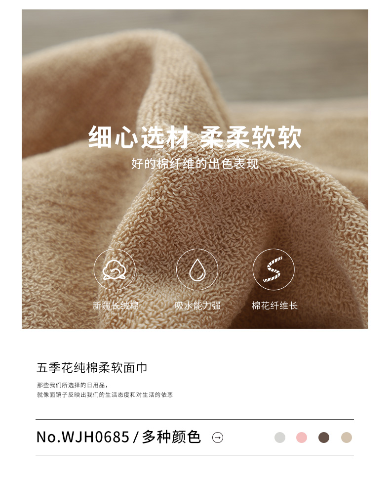 【精选4条,家庭装】甄选长绒棉,纯棉材质,健康舒适安全,吸水拧干不费力,蓬松纤柔不易褪色洗久如新,无荧光剂安全健康,精致生活必备!