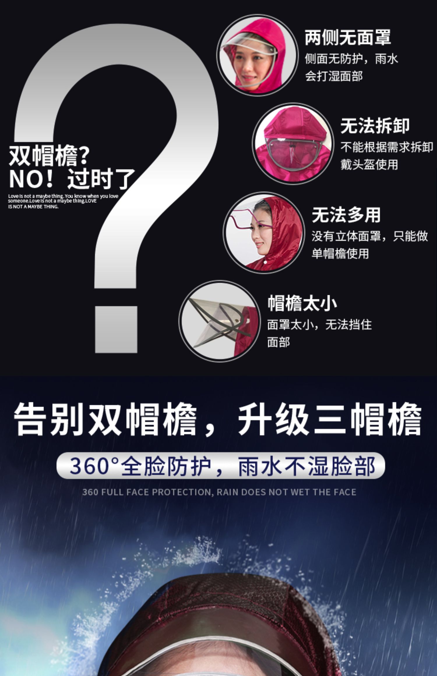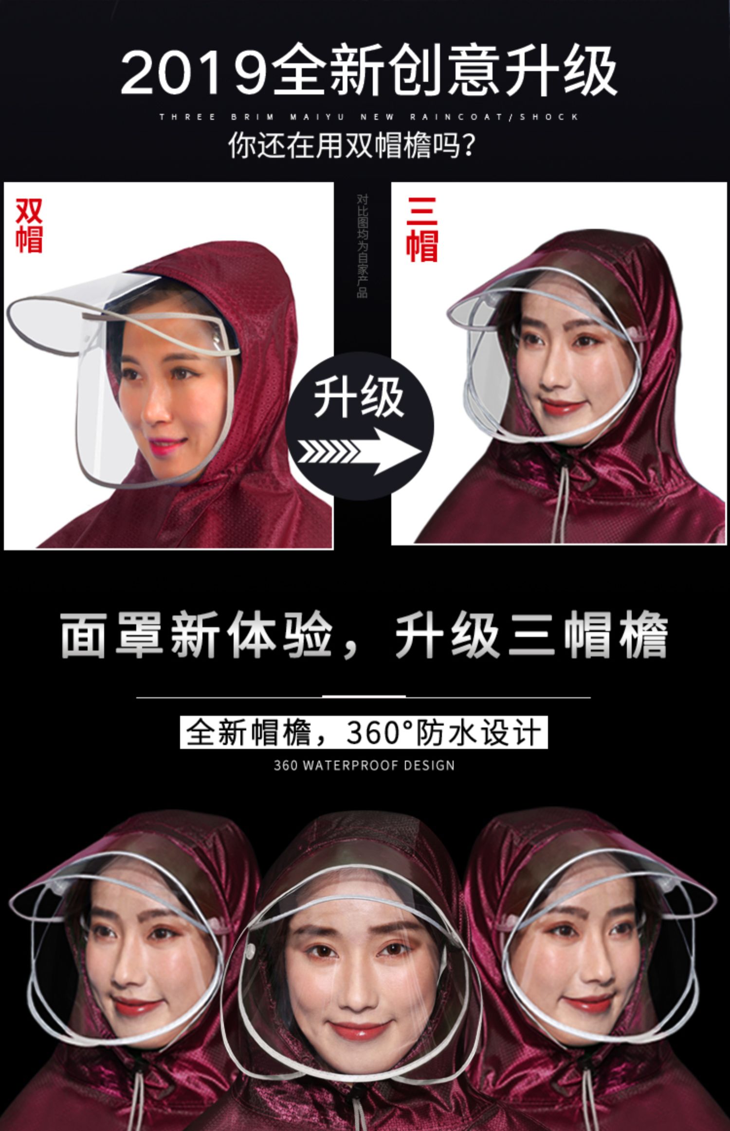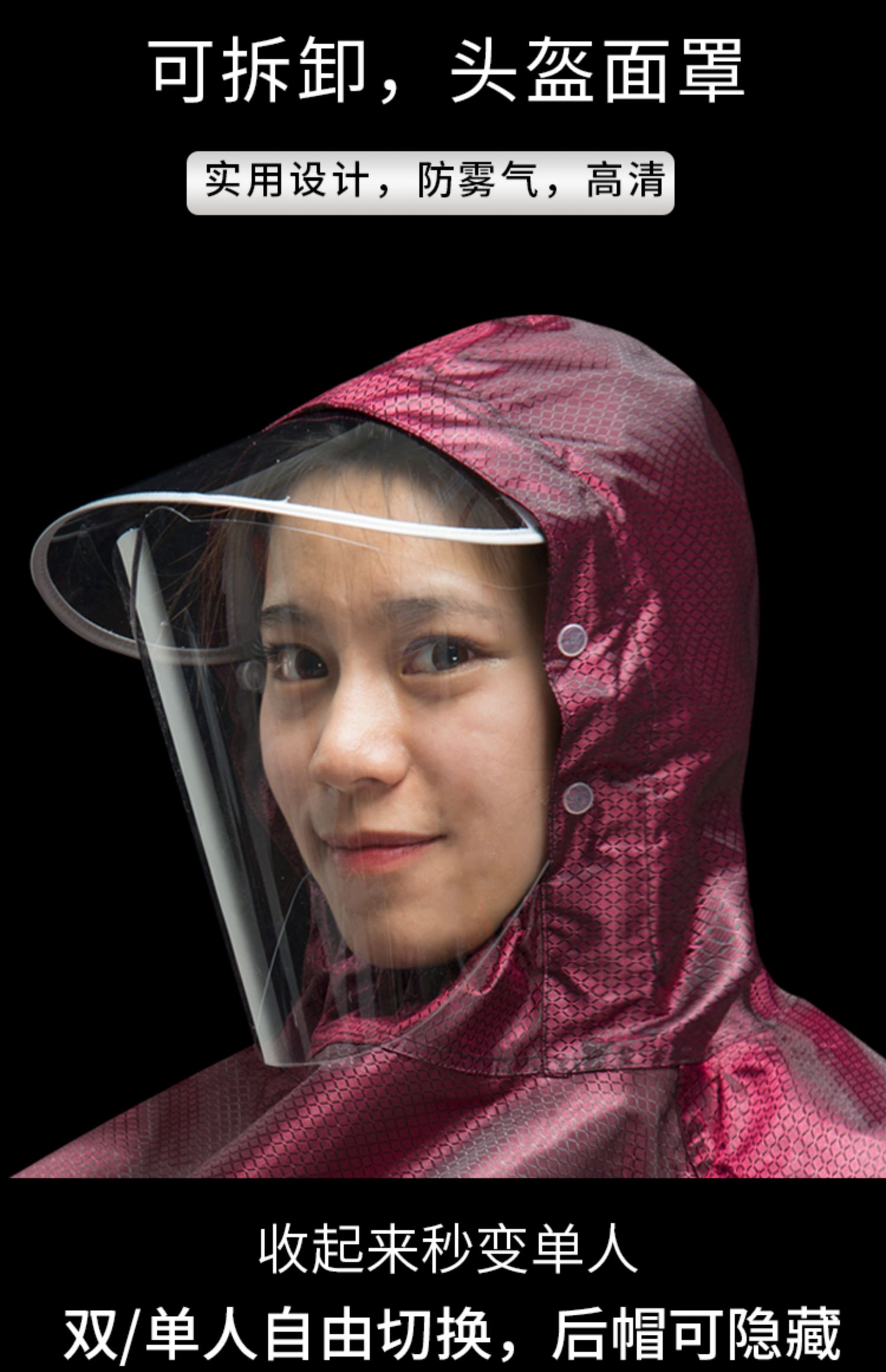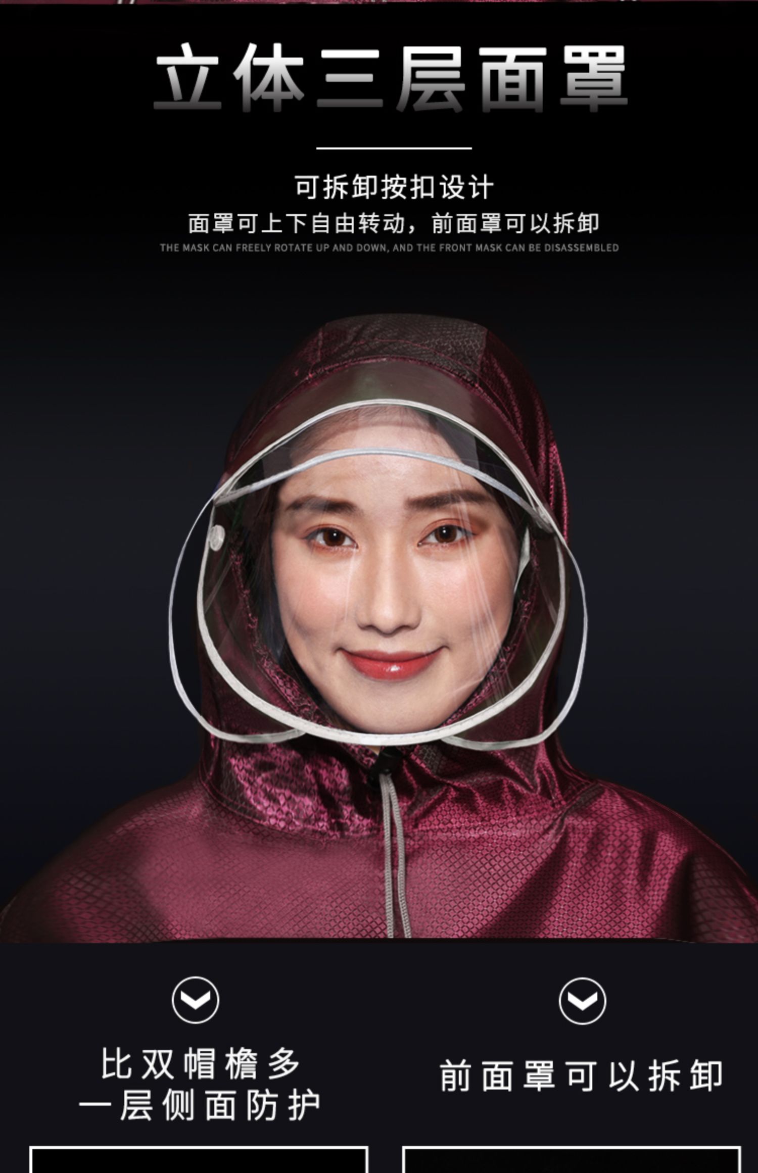 【XXXXL加大码】更大尺寸,包裹防雨,三层帽檐面罩防护,360度无死,更大更安全,透明大面罩防飞沫防雨,出行更安全~!