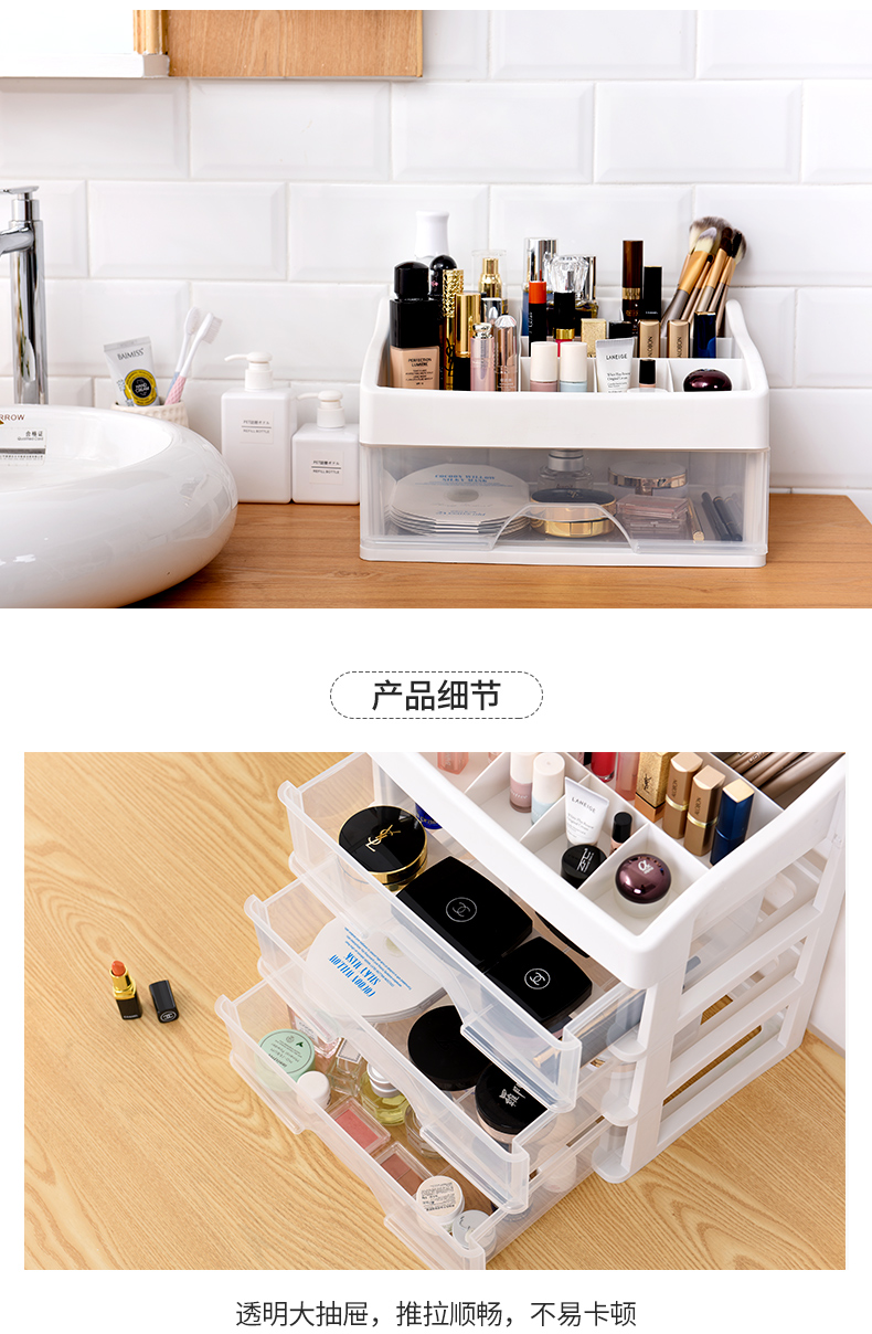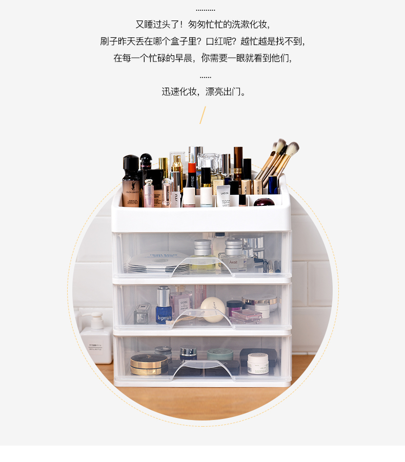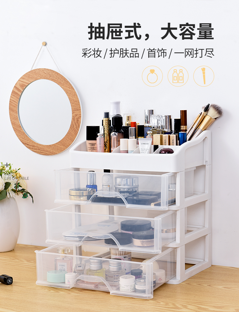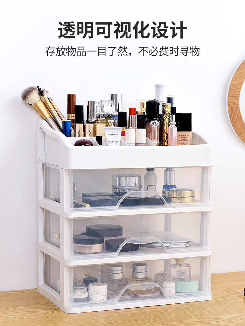超级大容量化妆品收纳盒,34*24.5cm,透明抽屉一目了然,顶层还可以摆放超多瓶瓶罐罐,只要一层就能收纳日常所有护肤品!化妆品、药品、遥控器等收纳都合适【赠运费险】