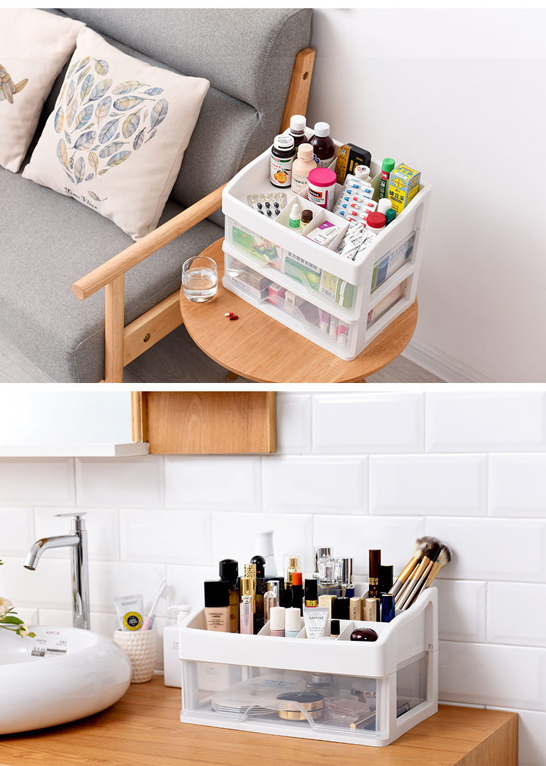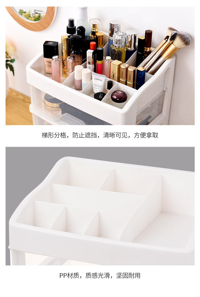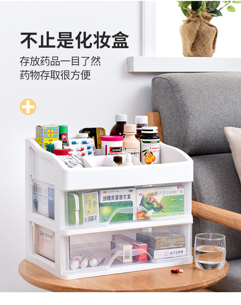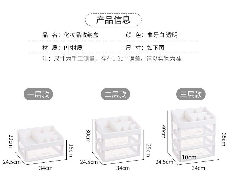 超级大容量化妆品收纳盒,34*24.5cm,透明抽屉一目了然,顶层还可以摆放超多瓶瓶罐罐,只要一层就能收纳日常所有护肤品!化妆品、药品、遥控器等收纳都合适【赠运费险】