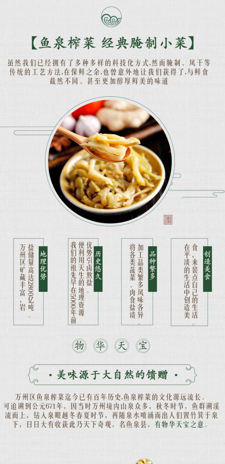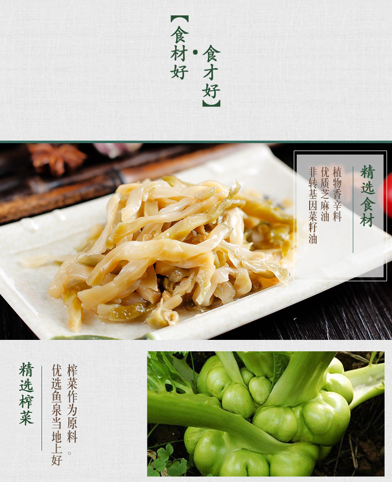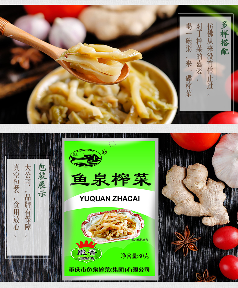 【推荐理由】家中有粮,心中不慌!鱼泉榨菜,出口级品质!鲜香脆嫩!常年出口国外30余个国家和地区。疫情在家不便出门,80gx20袋量贩家庭装,相当适合一家人食用。炒肉丝、下饭、拌面…..都妥妥的。健