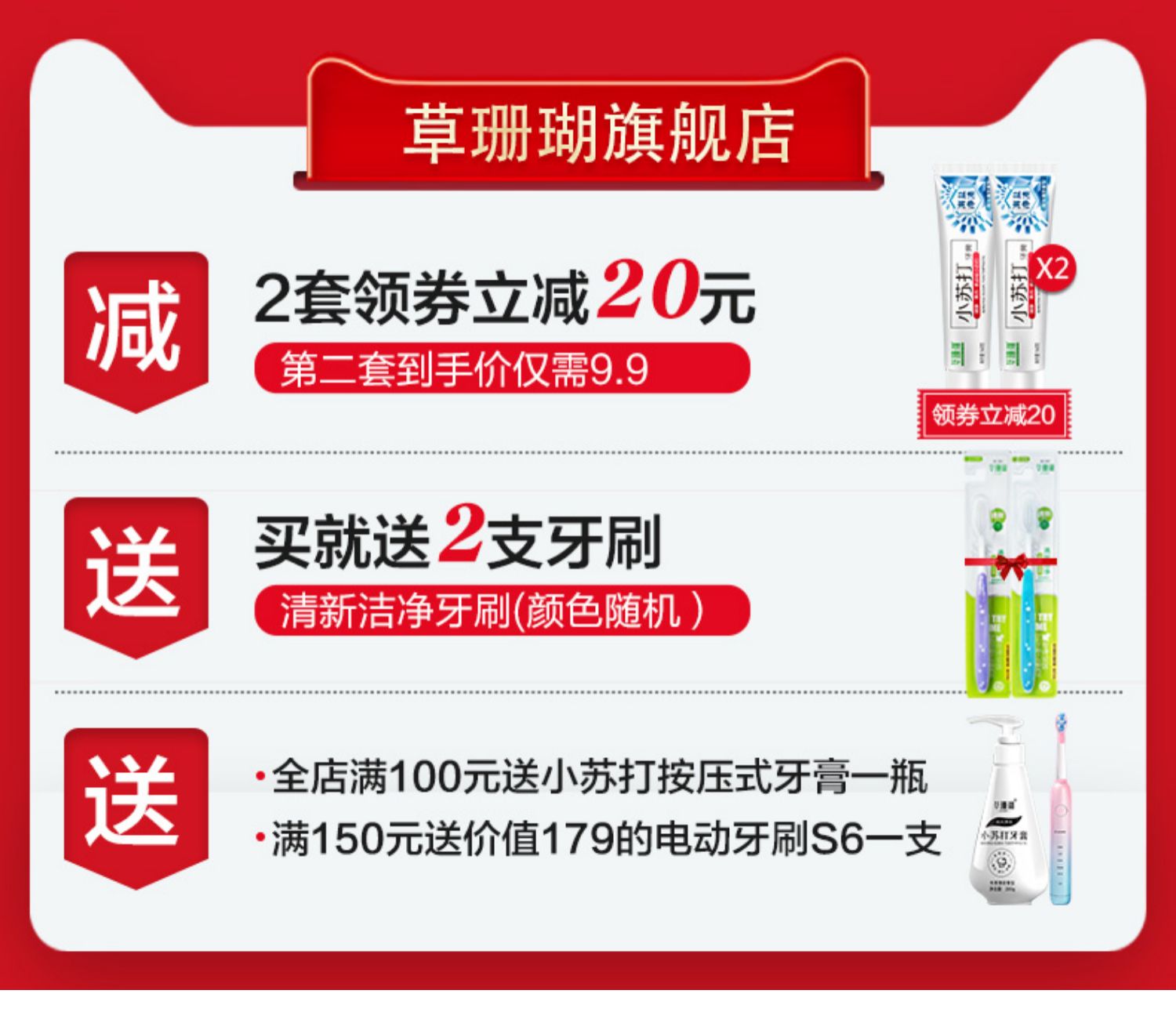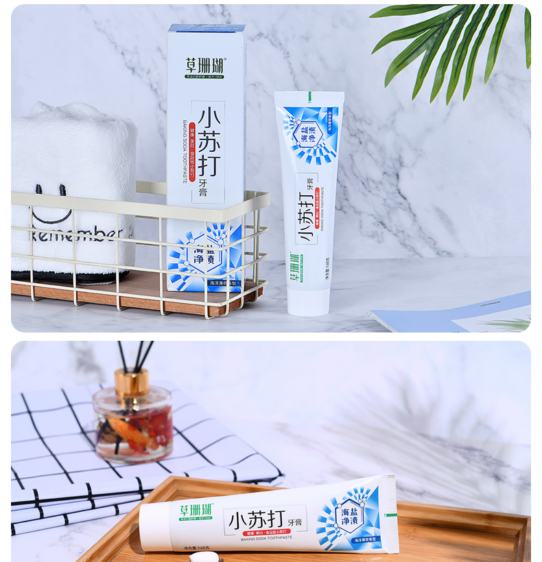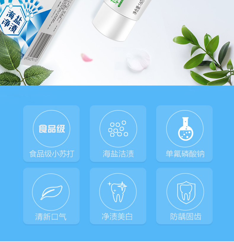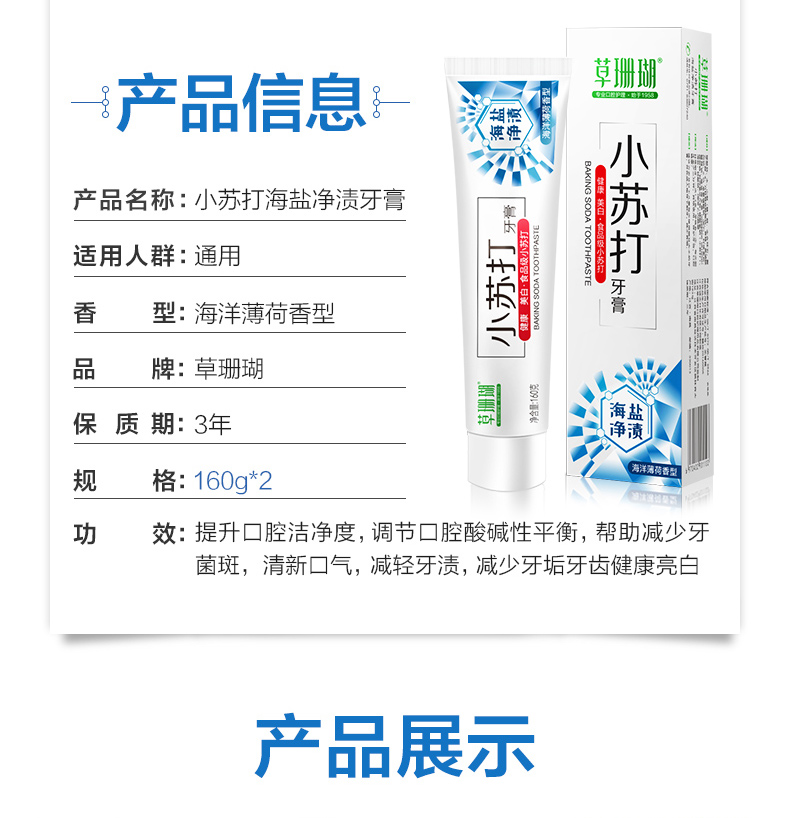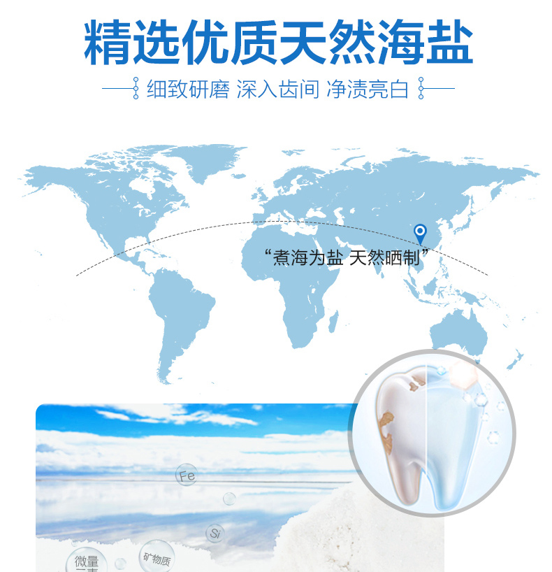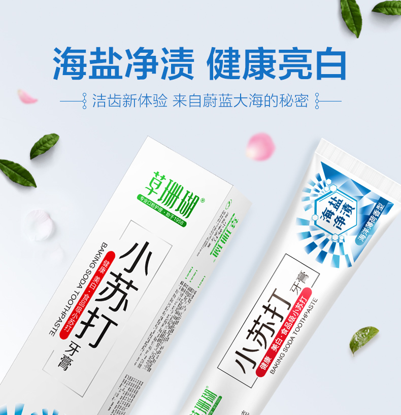 【拍两件,19.8,实体超市一盒20,精选优质天然海盐,细致研磨,深入齿间,净渍亮白。食品级配方小苏打,减少牙菌斑,平衡口腔,加倍臻白。