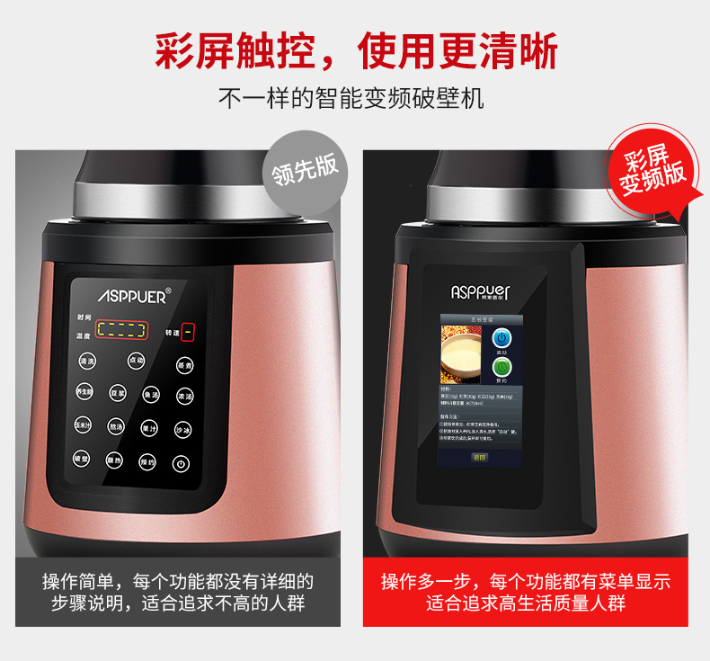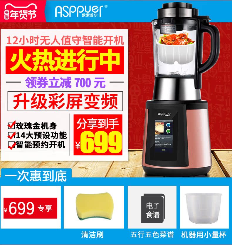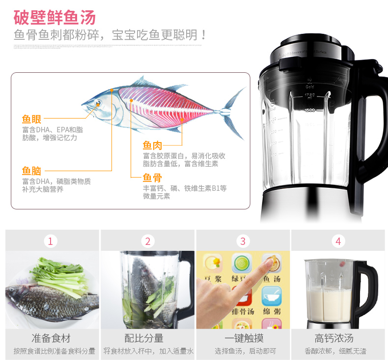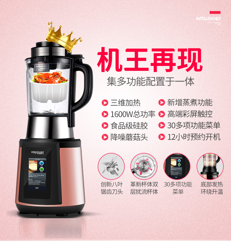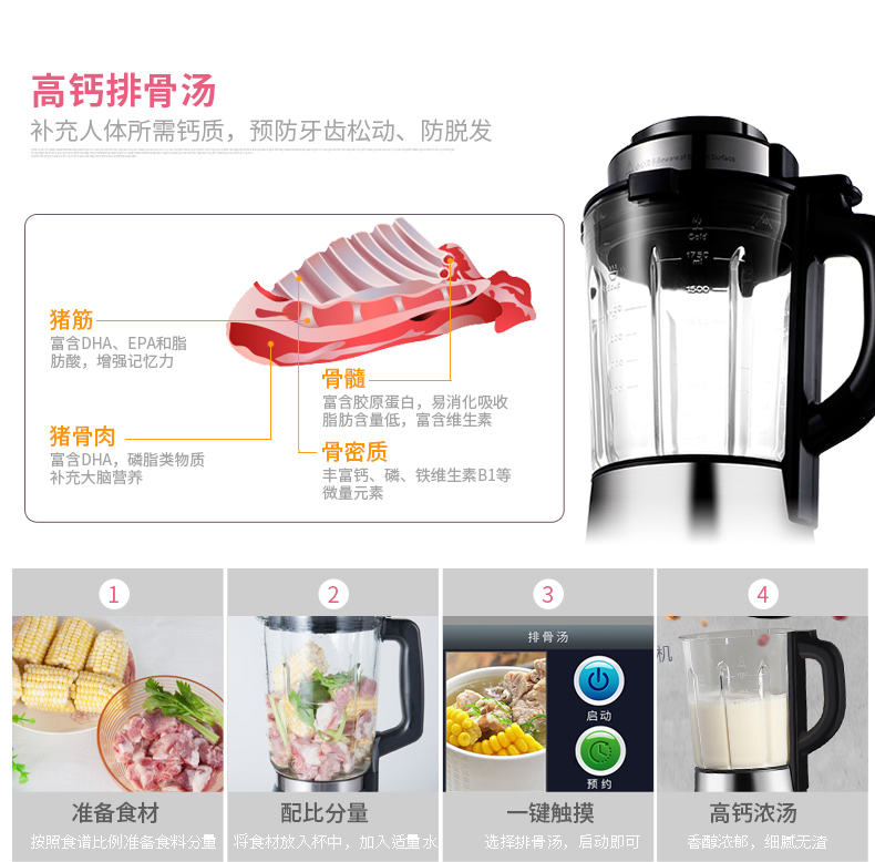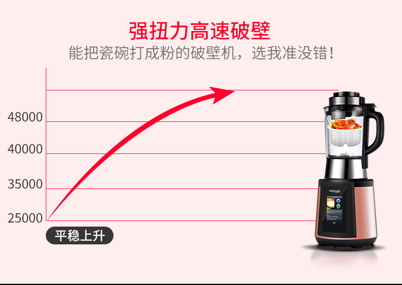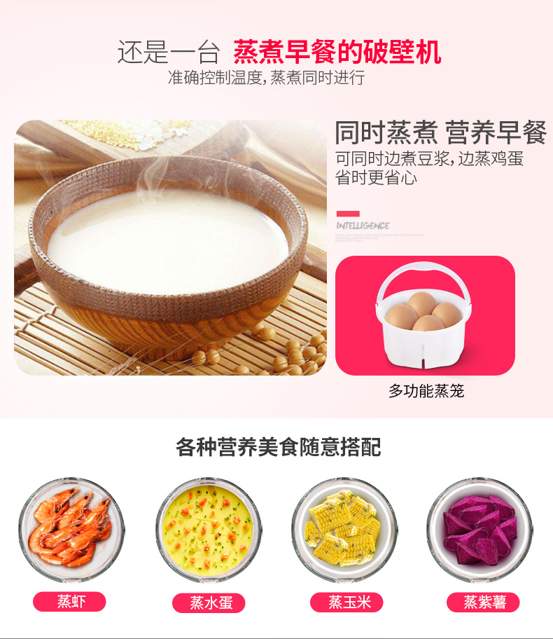 【彩屏变频36项智能超强功能,买就送蒸架+破壁大礼包,赠运费险】升级蒸煮功能,边打豆浆边蒸包,超高转速,碎骨毫无压力,降噪静音,防糊底变频技术,超大彩屏触控,破壁营养更好吸收!