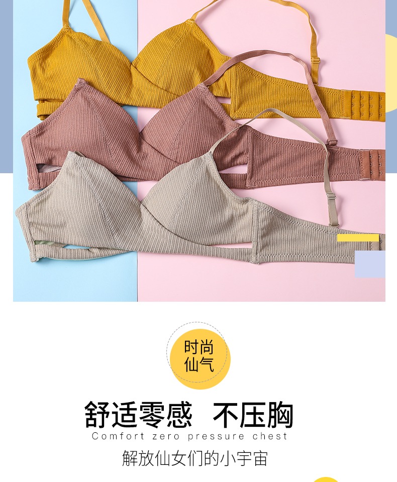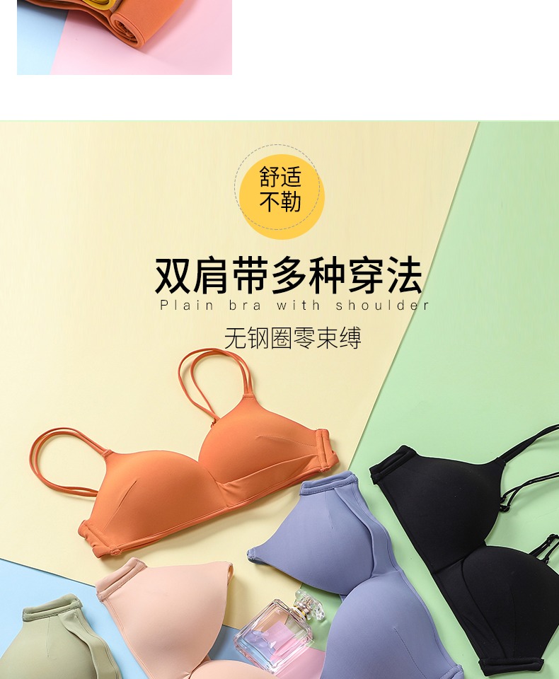 【第二件9.9!】既性感活力,又没有肩带下滑的烦恼,光面无痕罩杯,定型侧收~简洁三角杯~下摆前侧交叉设计,辅助收托胸部,自然微集中!运动睡眠0束缚,颜色也超清新~【赠运费险】