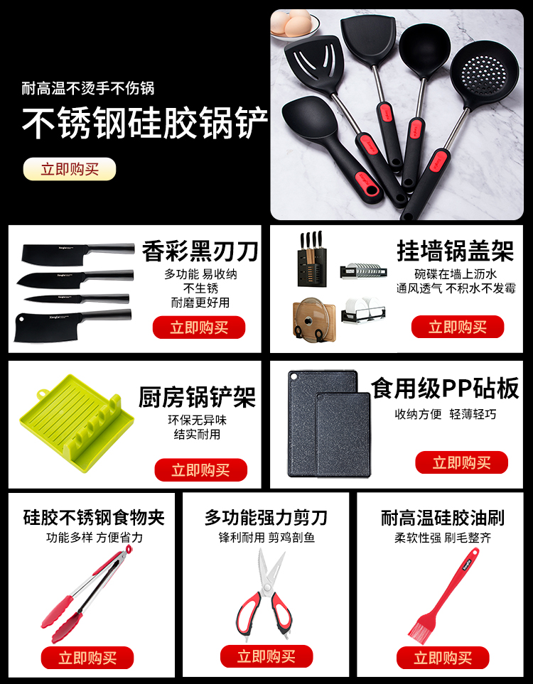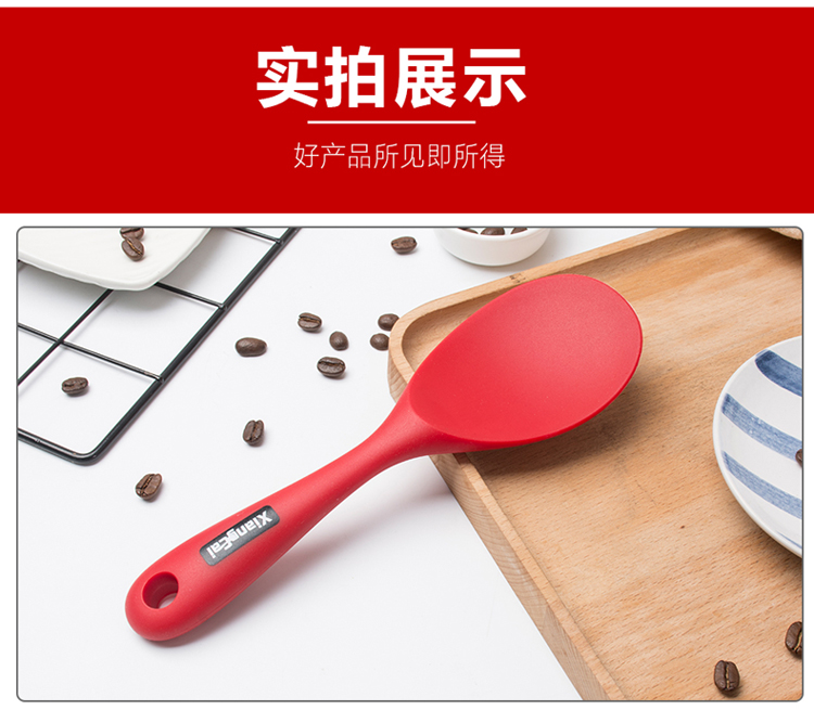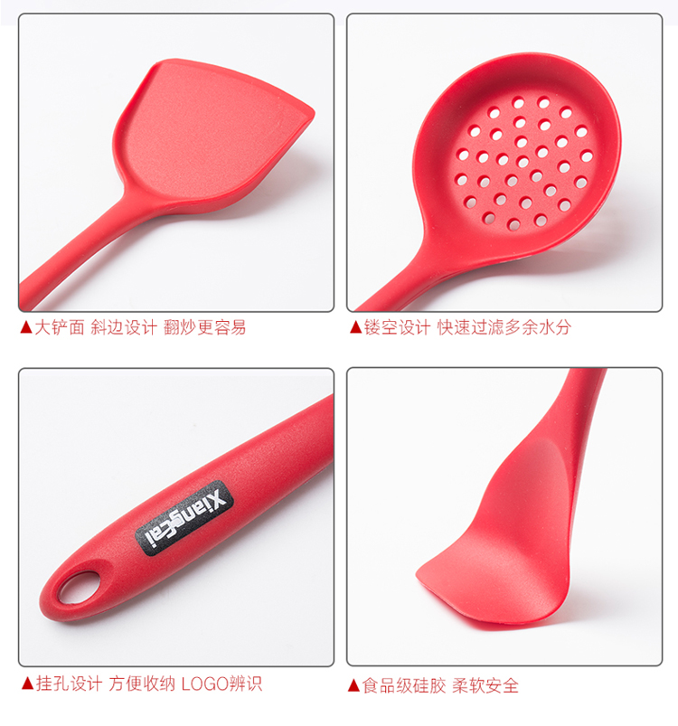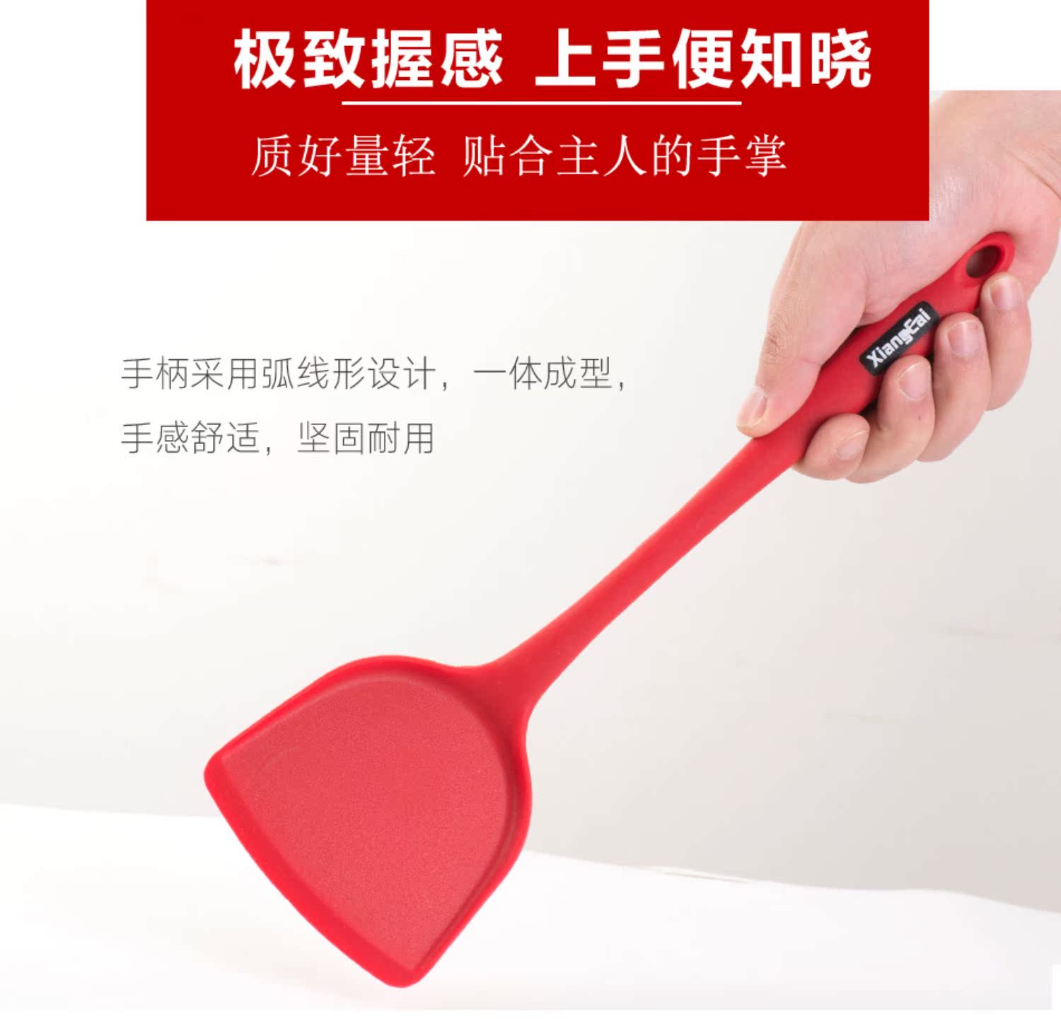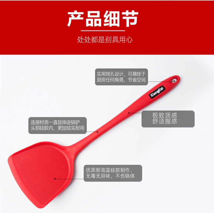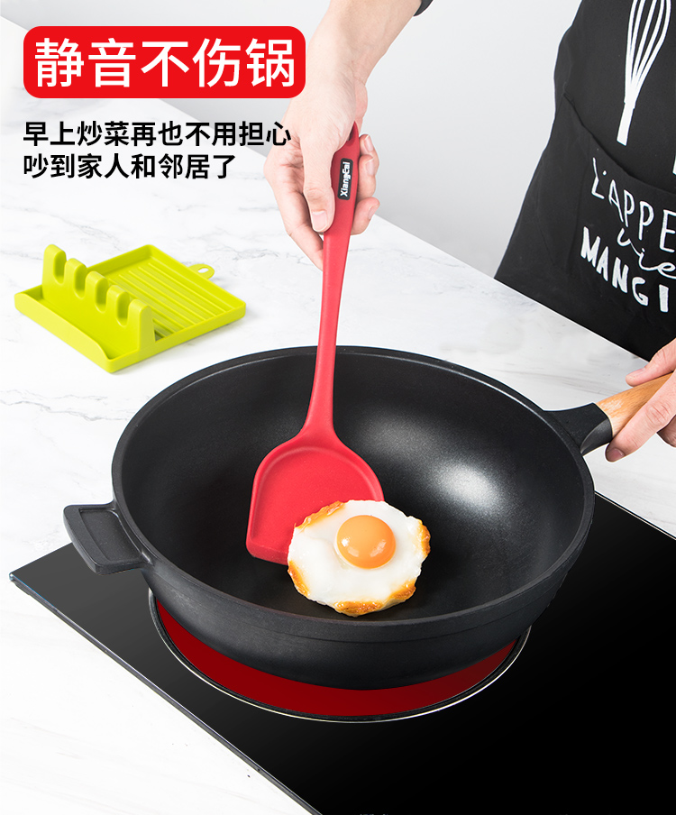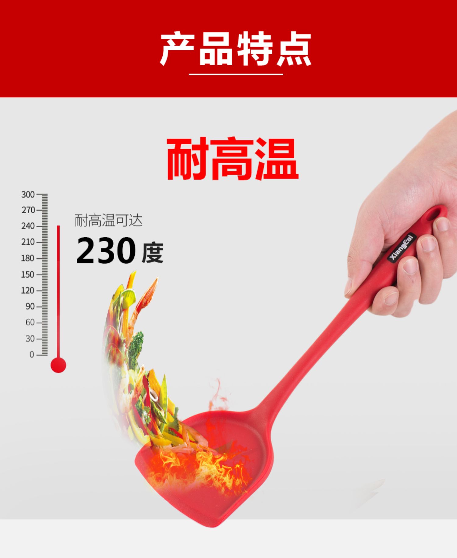 食品级硅胶锅铲、耐高温,不粘锅专用,翻炒有力,不伤锅底,使用起来更加方便灵活,厨房好帮手。