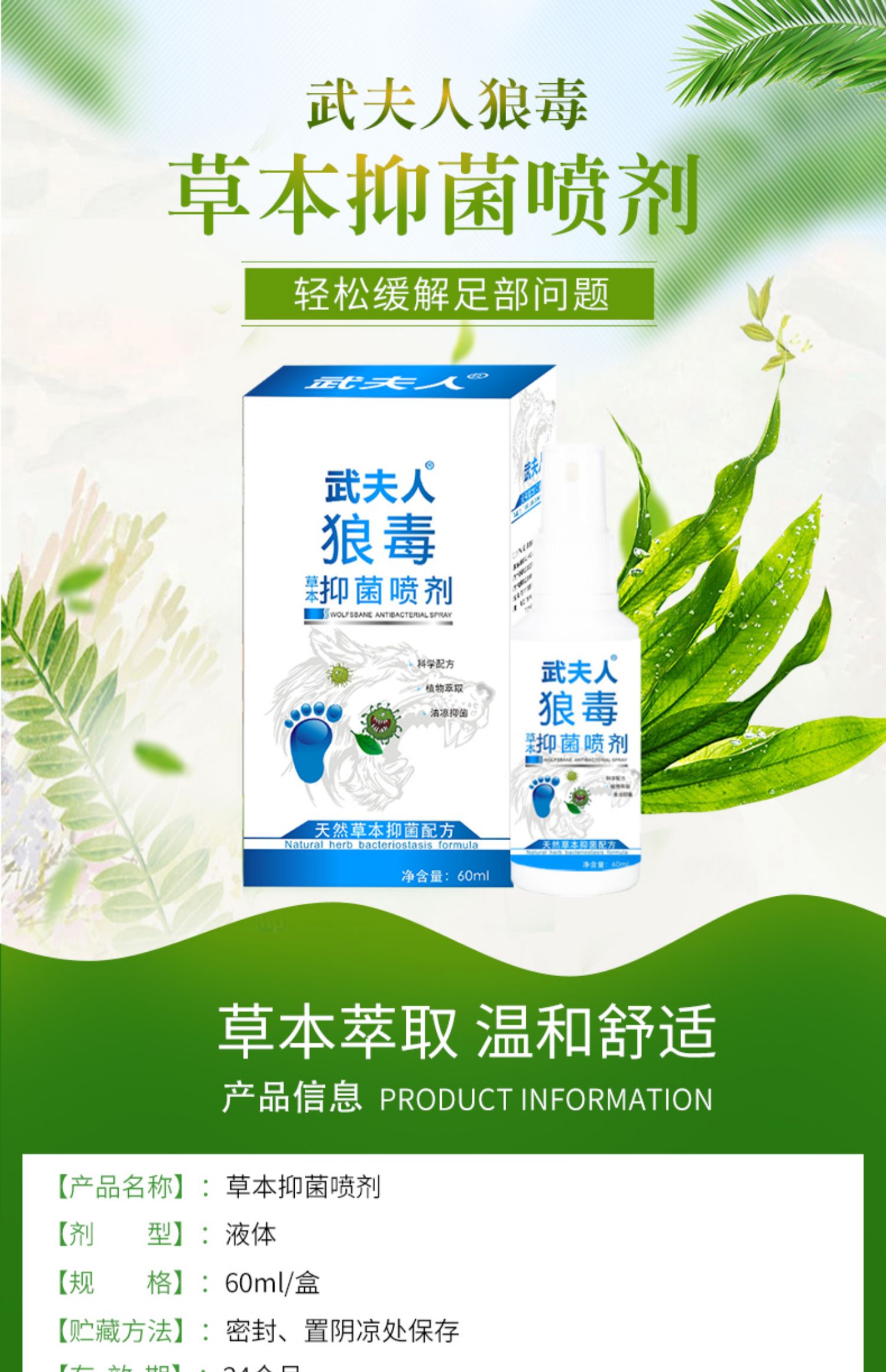 【荃网蕞低价】武夫人脚气喷剂,大容量60ML~天然植物草本萃取,清凉抑菌,温和不刺激,有效缓解脚气、脚臭、脚痒、脱皮、水泡等足部问题,快速止痒,告别烦恼~每天喷一喷,和脚气说拜拜~