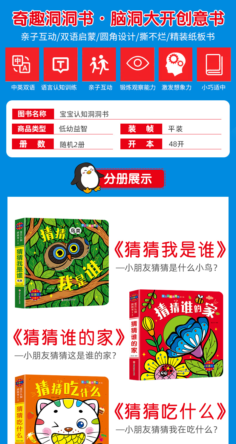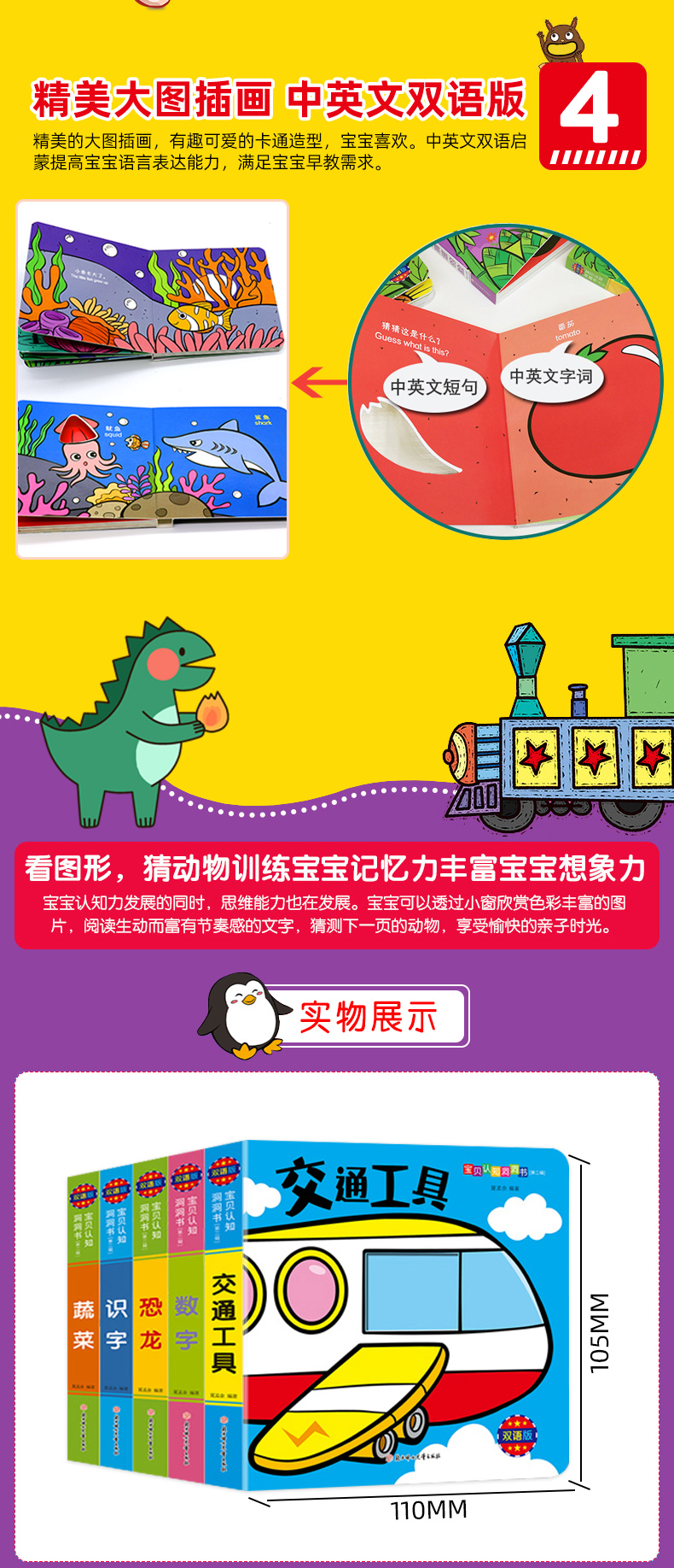 【超值秒杀!2册6.8元!】儿童早教启蒙认知书,中英双语版。圆角设计不伤手,加厚纸板撕不烂。0-8岁幼儿必备益智游戏书,开发宝宝大脑潜能,宝妈必备睡前亲子故事书。