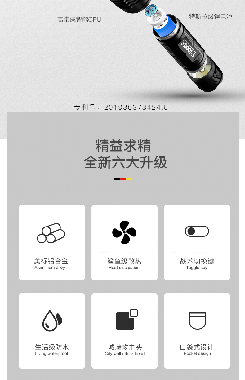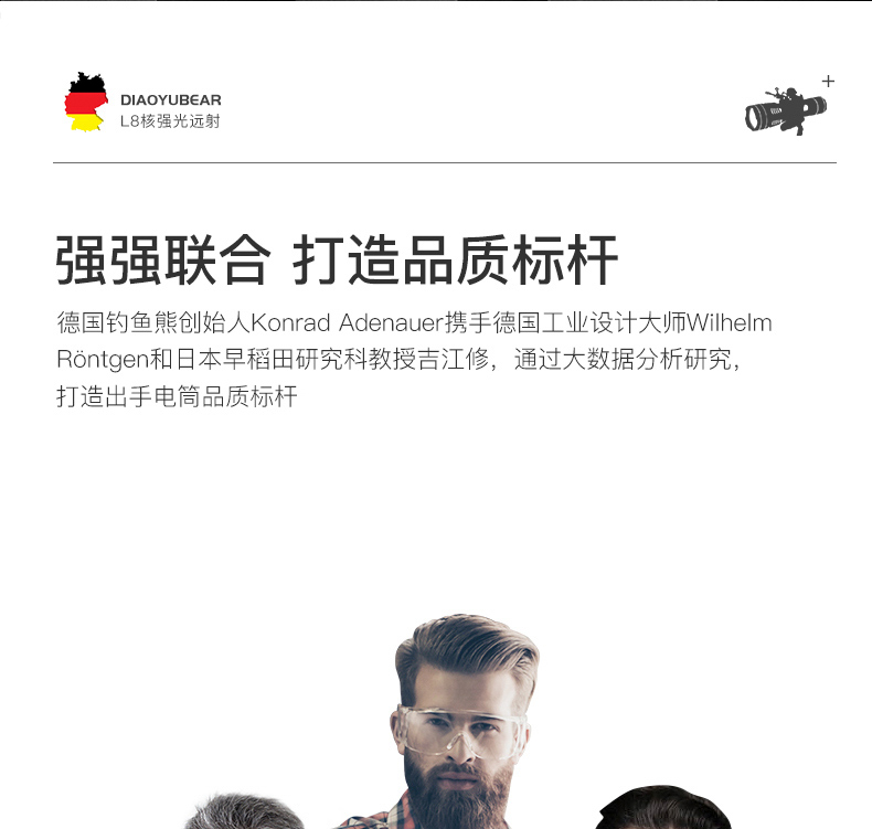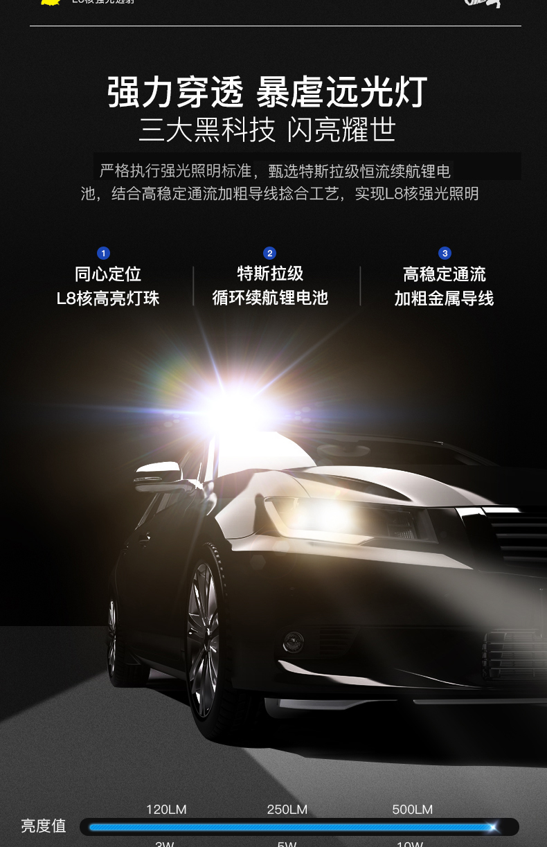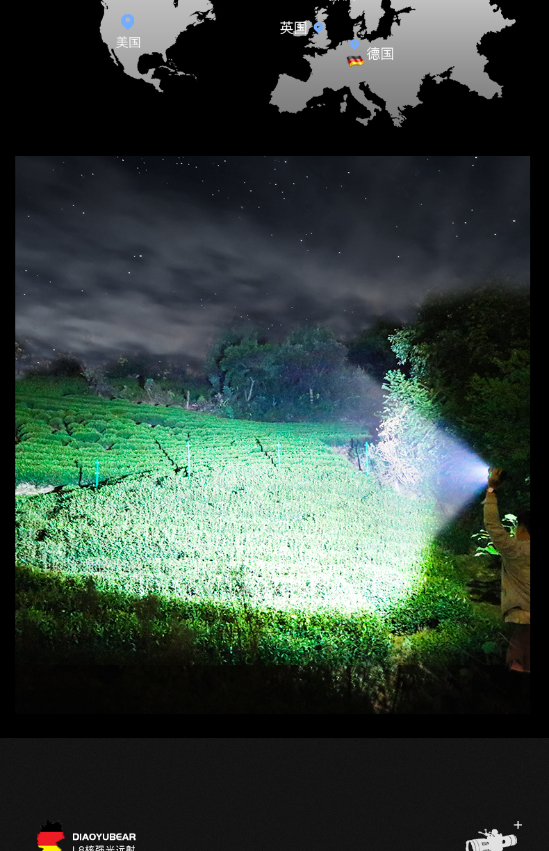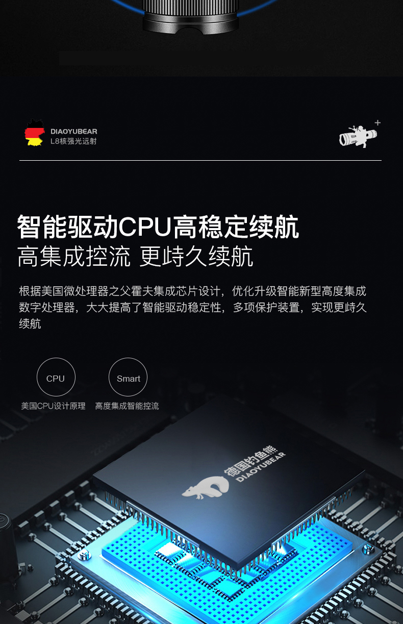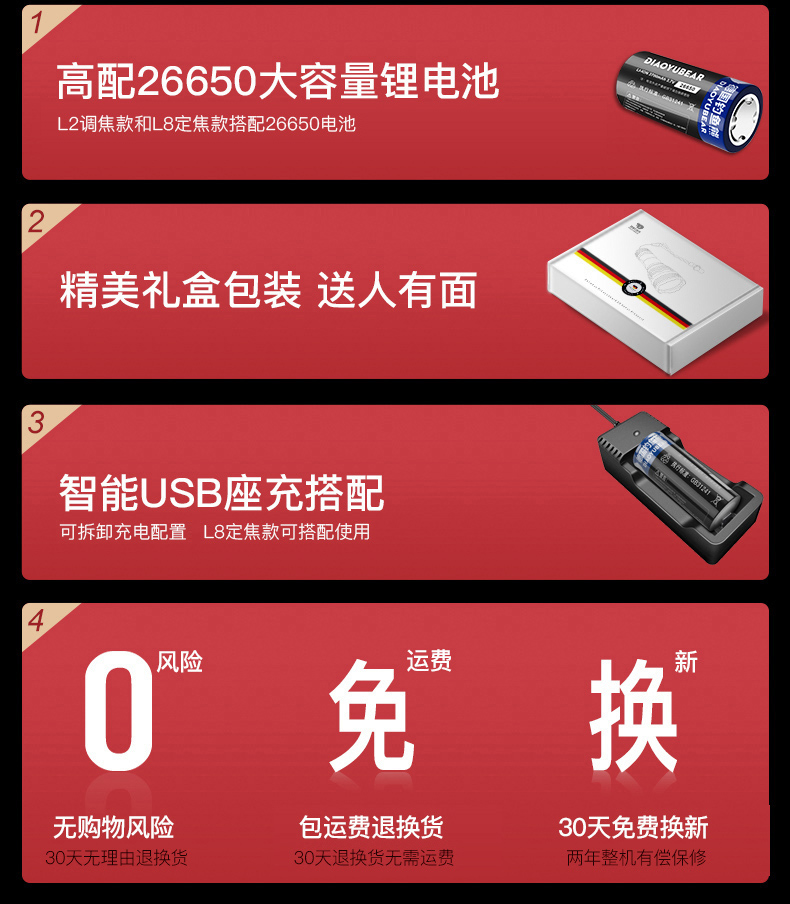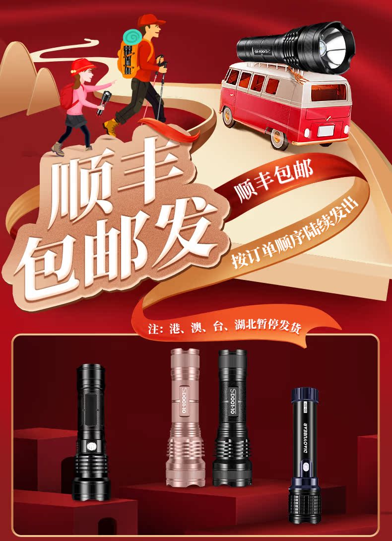 【德国钓鱼熊户外天猫手电筒销售第1名】6w+消费者好评,品质值得信赖!L8核强光远射,3倍远光灯,直射500m!电池可充电两用,4种照明模式,,多用途,外出居家必备,送原装充电线+电池+挂绳!【赠运费