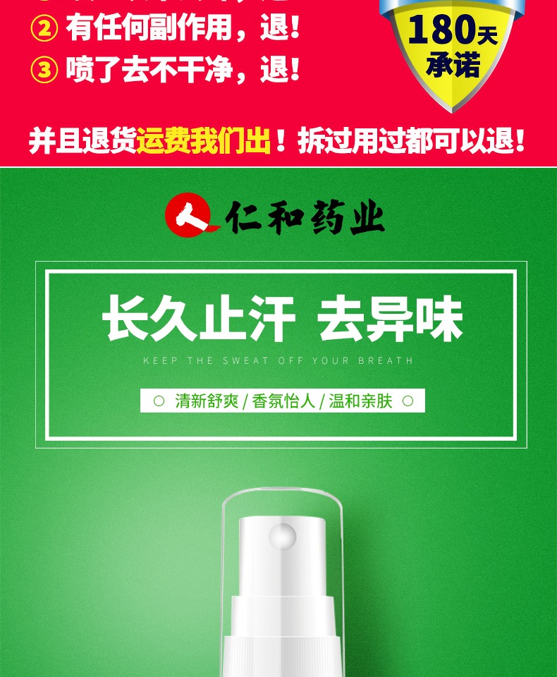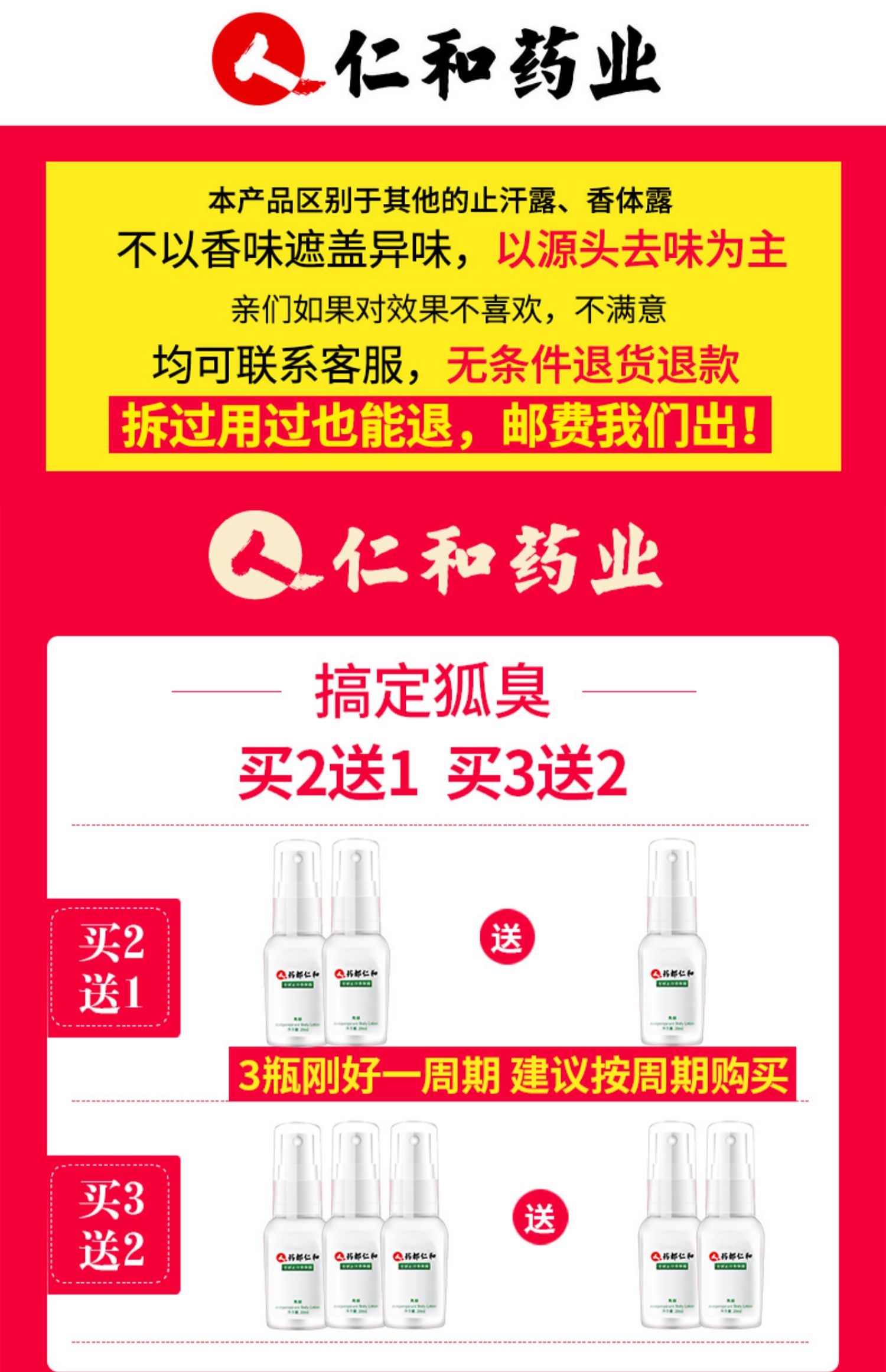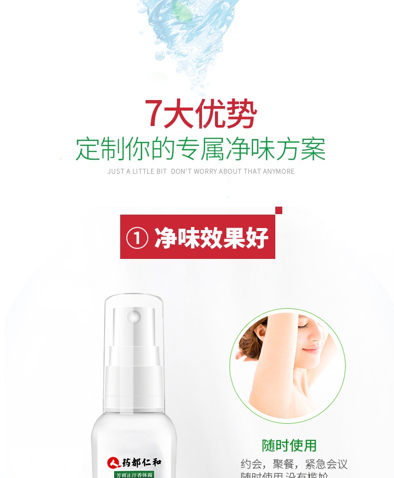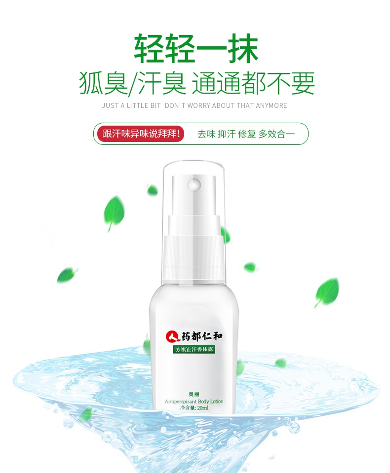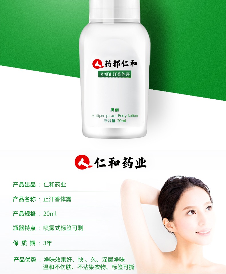 【仁和药业出品】夏季热卖,清新舒爽,温和亲肤,长久止汗,去异味,只需一瓶,轻轻一抹,狐臭汗臭通通搞定。