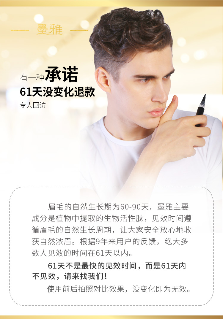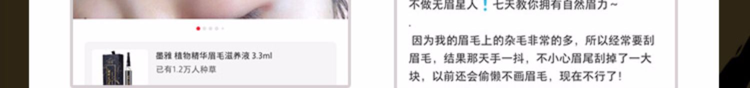 【墨雅】专注睫毛8年品牌,自然、纤长、浓密。从灵芝和人参中提取生物活性肽,自然浓眉,轻轻一抹,每天只需10秒,不用再考虑植眉、,用了墨雅,从此不再因为睫毛而抬不起头来!