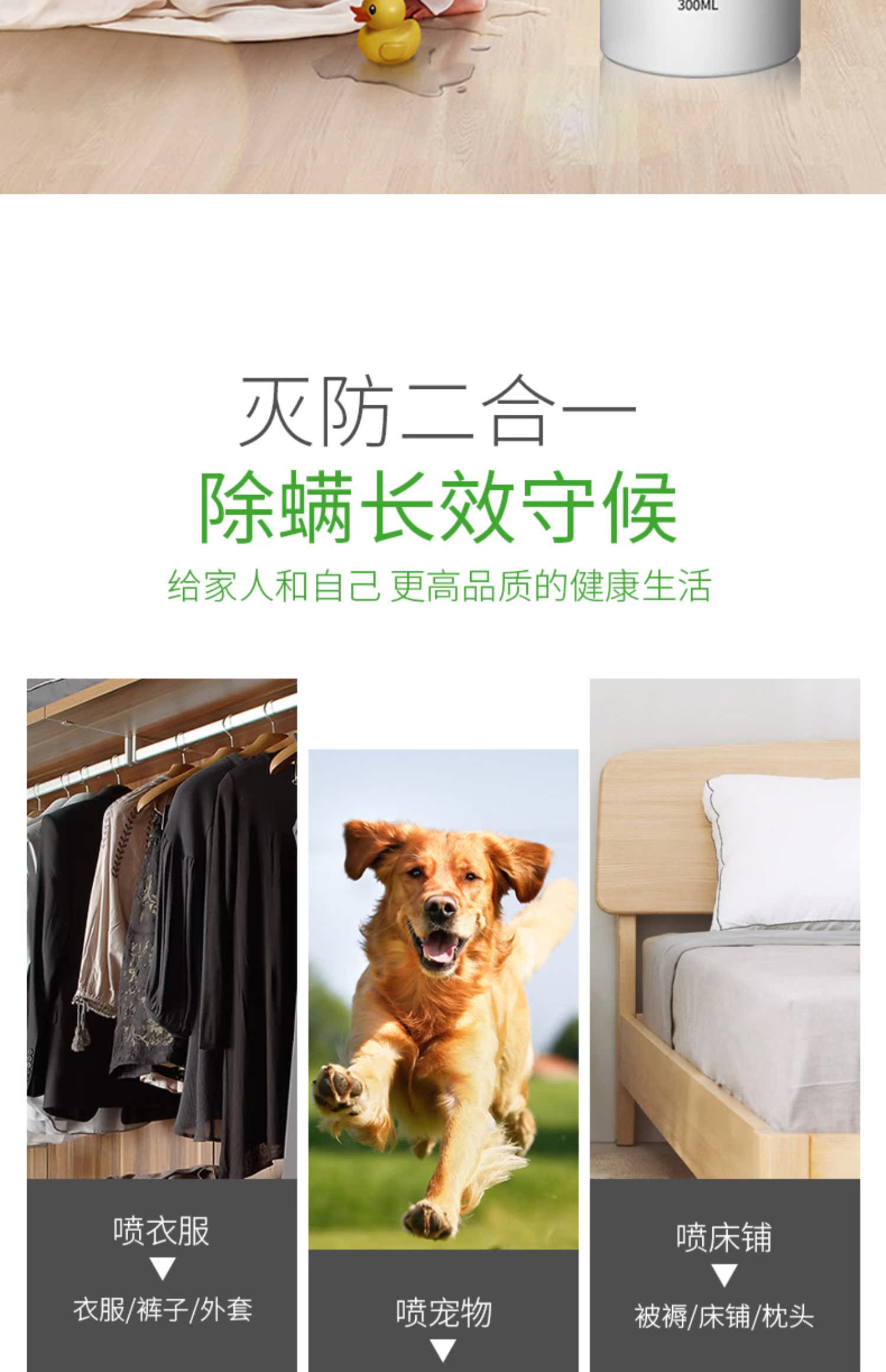 消除过敏源,高效除螨虫,强力去螨虫,安全环保,喷一喷,快速除螨,没螨生活,虫此无忧,喷洒不留痕,给家人一个舒适健康的环境!