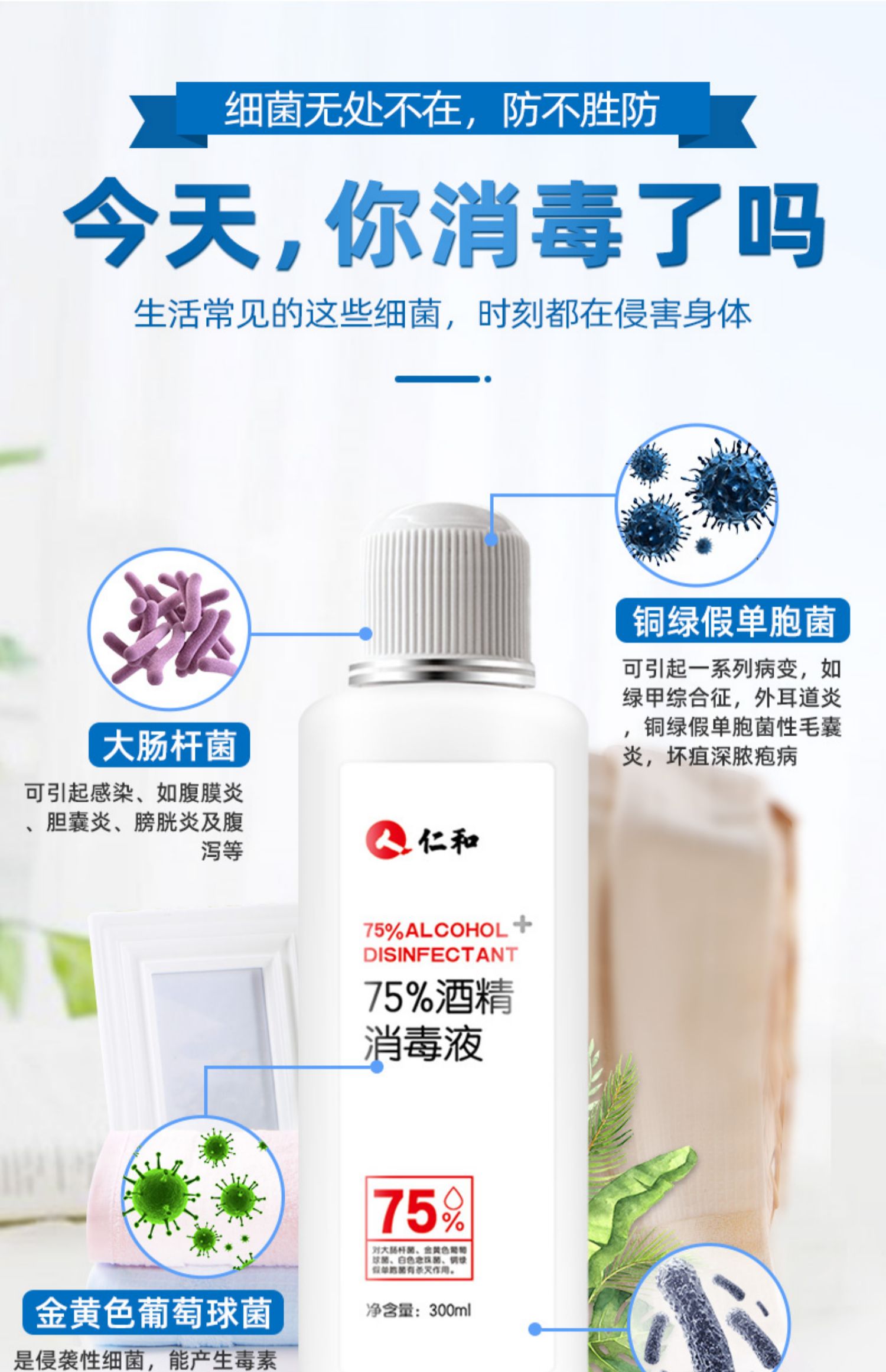 【仁和品牌!医用75%浓度酒精消毒,杀菌率高达99.999%!】防疫期间杀菌抑菌必备品!国家卫健委专家:新型冠状病毒不耐高温,能被75%的酒精杀死。医用酒精喷雾预防交叉感染,杀毒消毒必备品【买5送一】