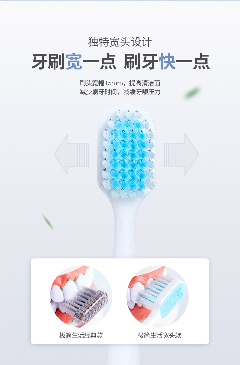 创新宽型设计扩大与牙齿的接触面积更好清洁,磨尖软毛刷丝,深入牙缝清洁,洁净口腔,独特的设计,复合人体工程学,能够让您安全放心的刷牙!!【赠运费险】