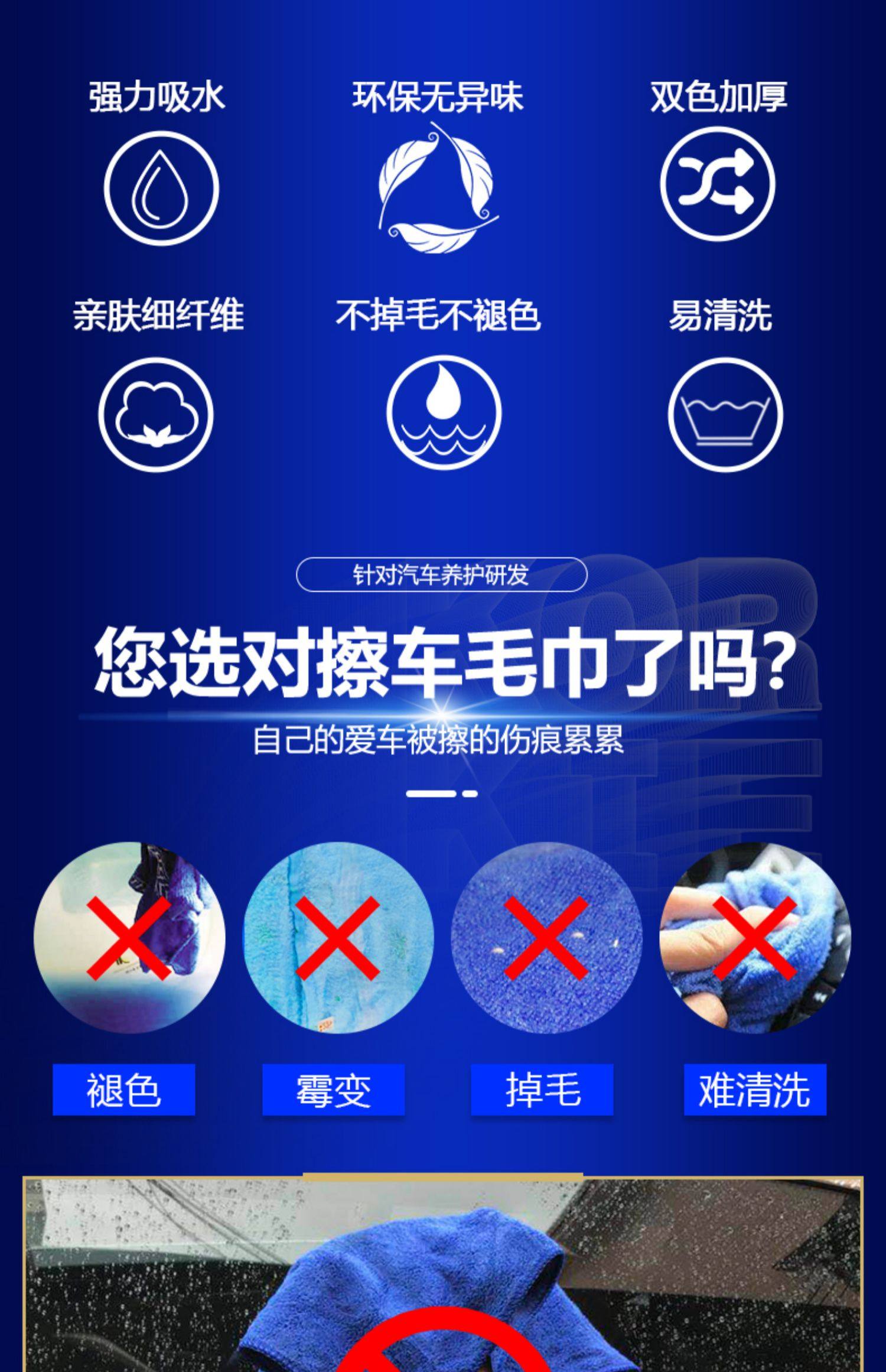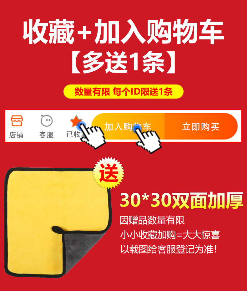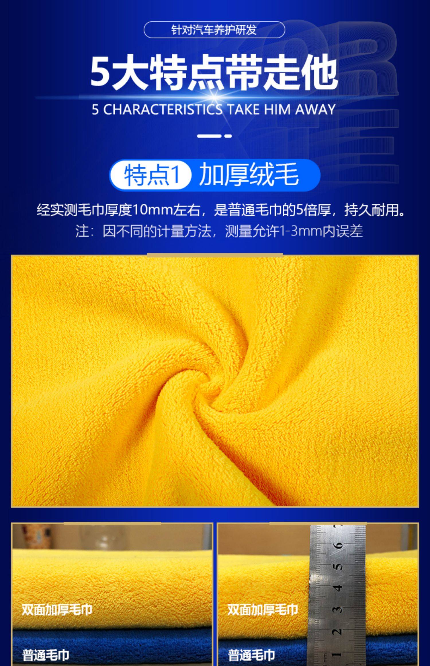 【水渍一擦即干!】加厚磨绒毛巾,柔软舒适,不掉色不掉毛,有效去污,轻轻一擦,不留痕迹,车家两用!擦的超干净