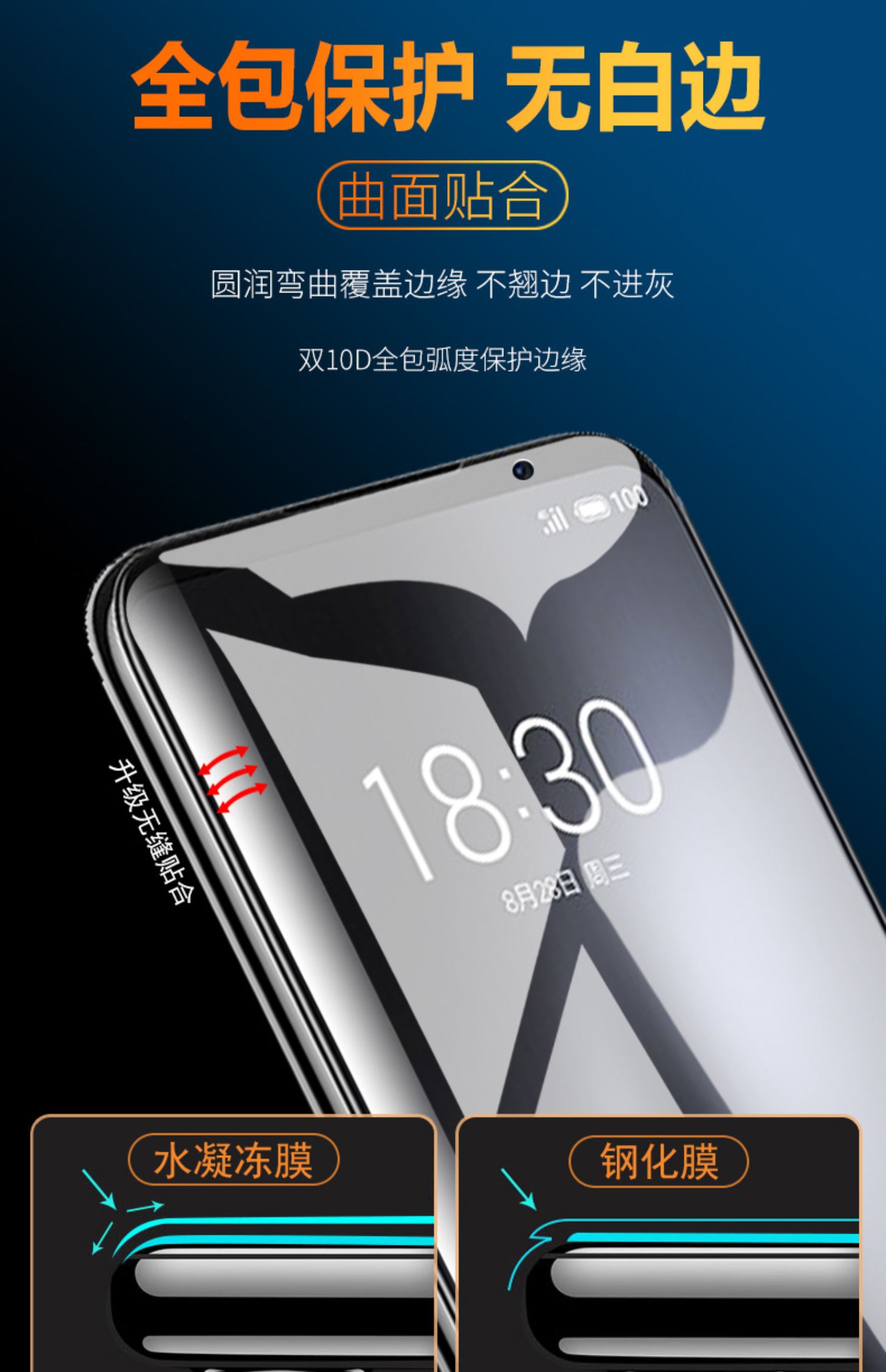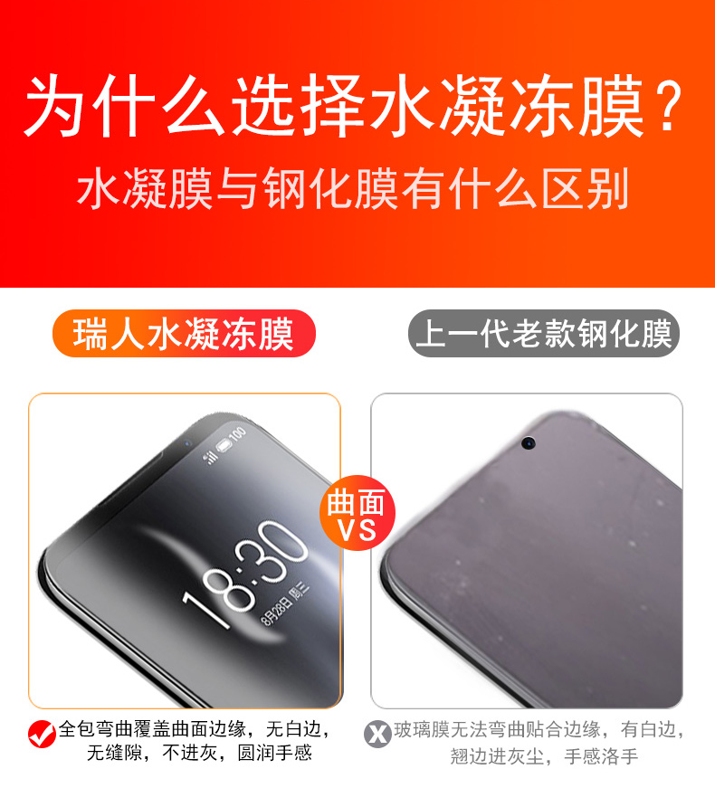 【送贴膜神器+后模】韩国进口10D水凝冻膜,24小时,自动修复刮痕,纳米回弹技术,无惧刮伤!抗蓝光,保护眼睛,无白边,无气泡,无需喷水!还原裸机手感!!