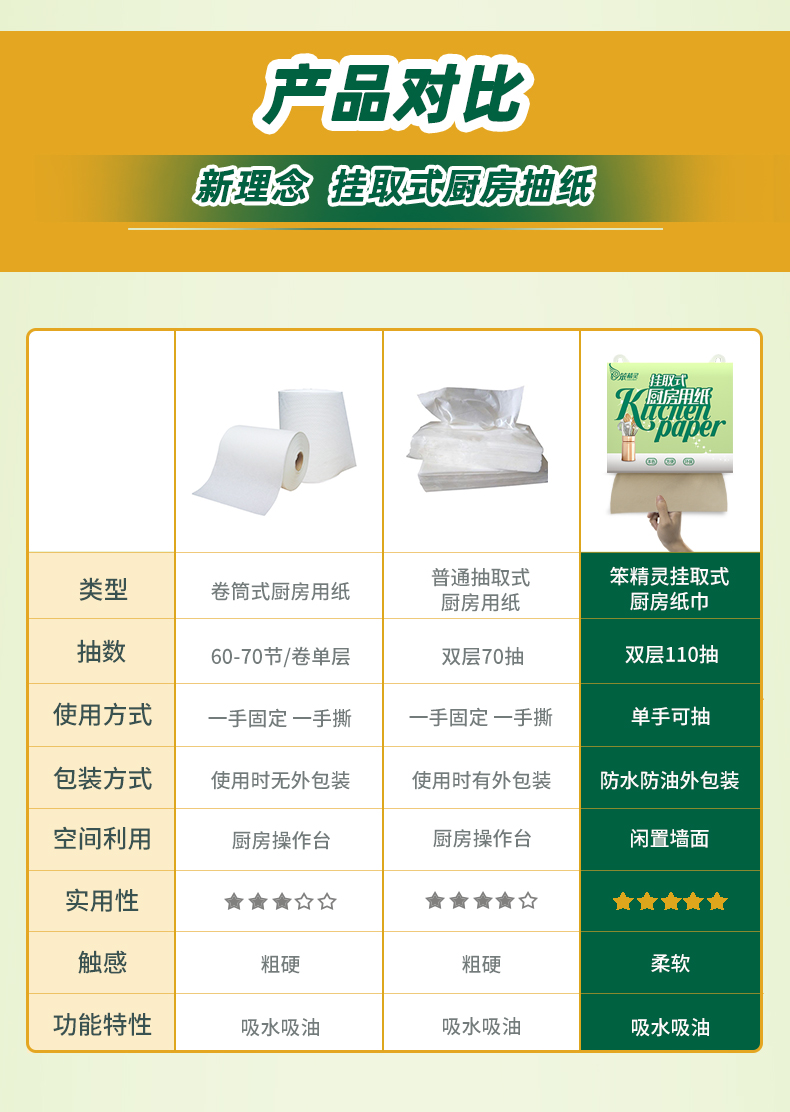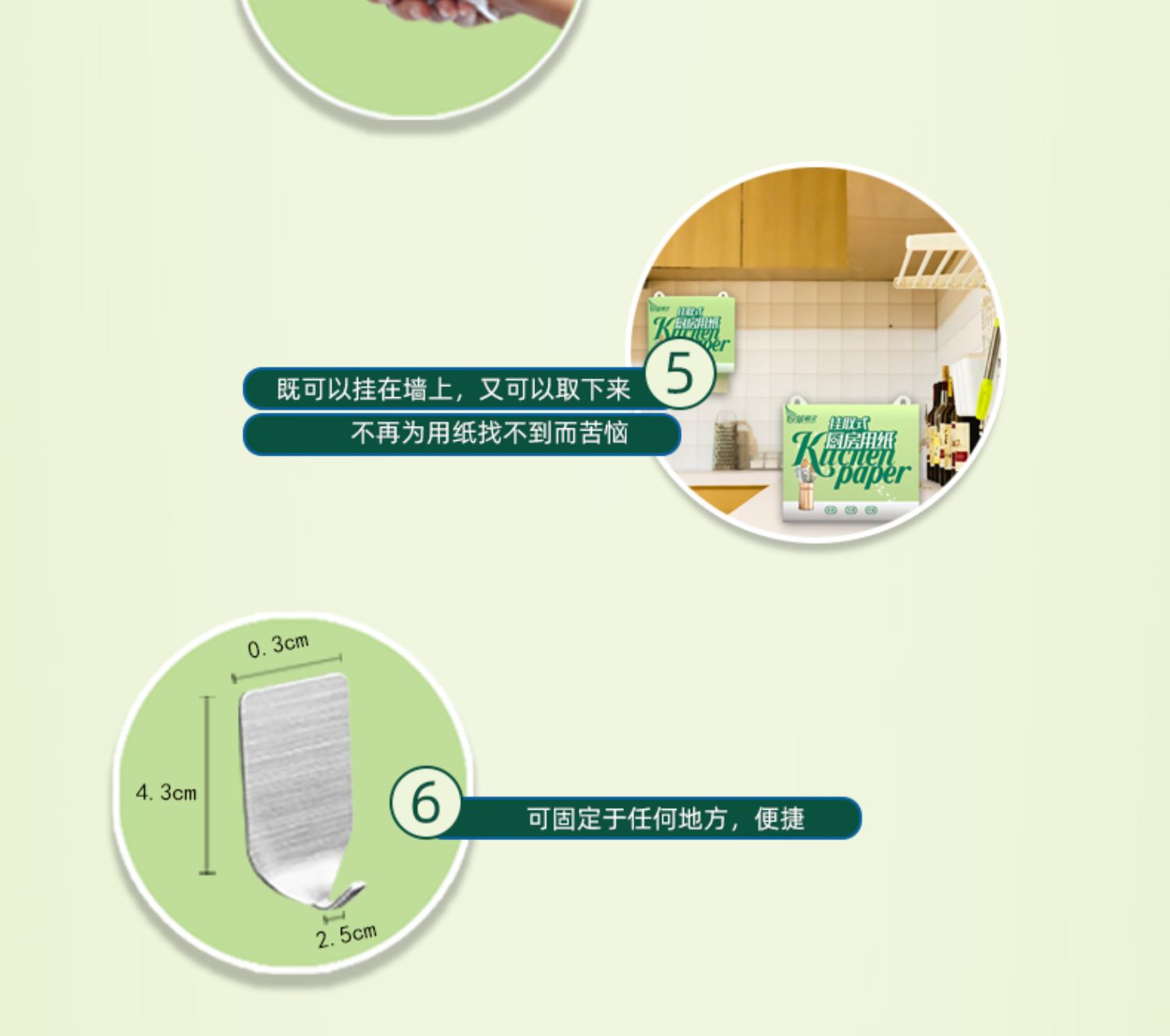【送挂钩外包装盒】专利设计,挂壁式抽取,简单方便,原生竹浆,双层加厚,湿水不易破,擦拭不掉屑~吸水吸油性强,快乐厨房好伴侣