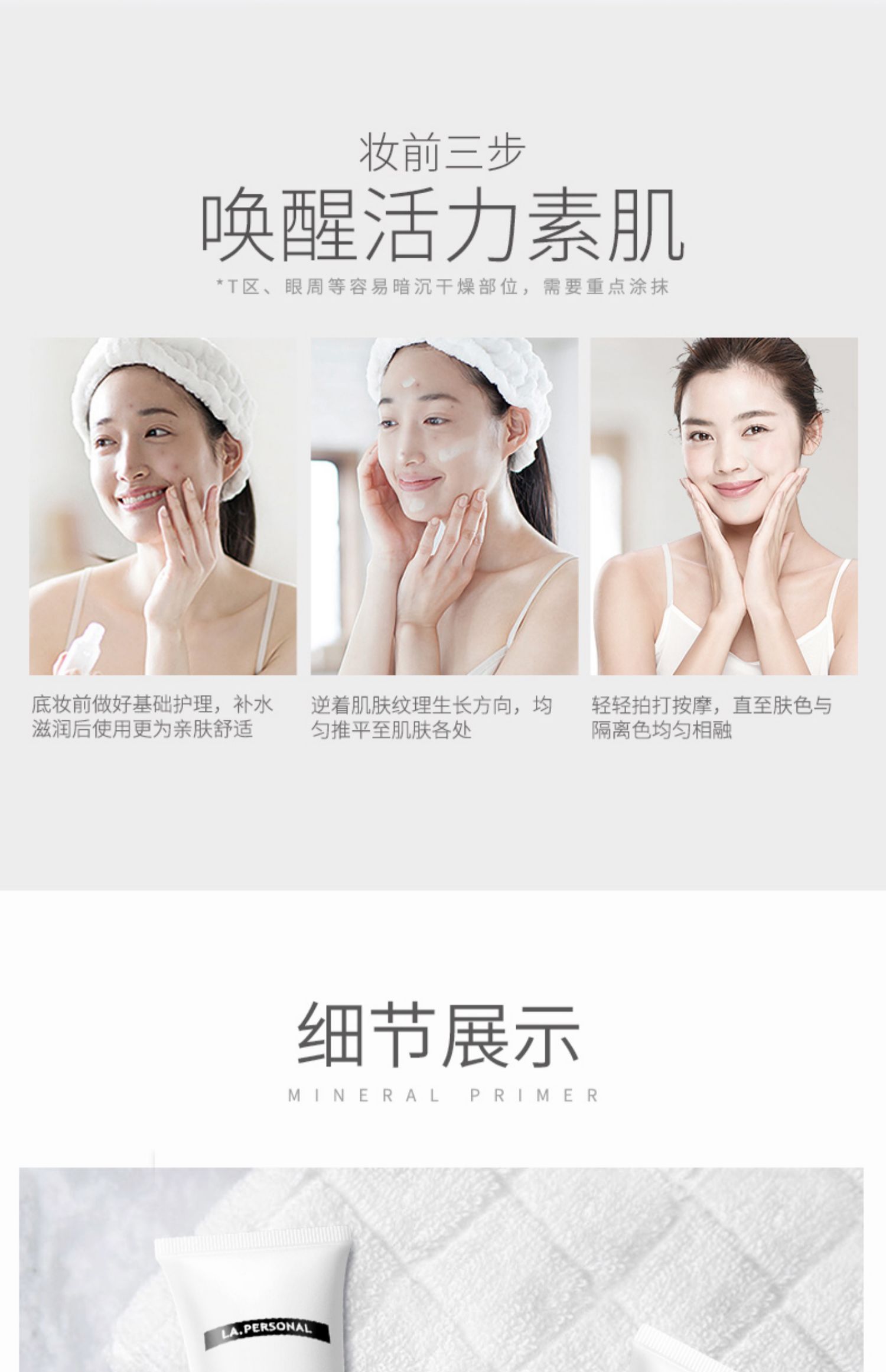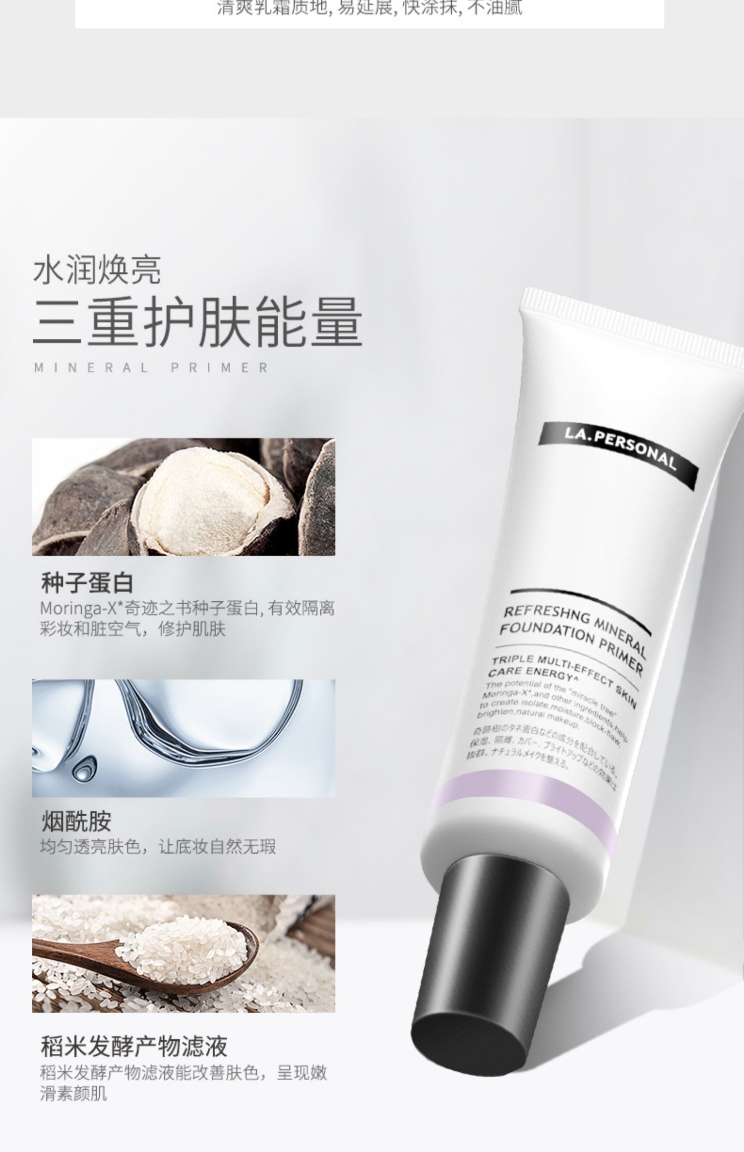 LA-PERSONAL保湿补水遮瑕提亮液素颜霜,遮瑕美白防蓝光,妆前打底,隐形毛孔,调节肤色,还超保湿水润~让你抹个隔离霜,素颜就超聚焦哟!