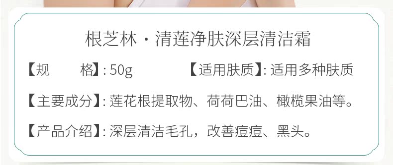 【赠运费险】根芝林清洁霜,深层清洁毛孔污垢脏东西按摩膏,面部排清理脸部毒素,卸妆去污,补水保湿,净透洁肤,适用各种类型肌肤,深层清洁收缩毛孔,给肌肤套上保护层~