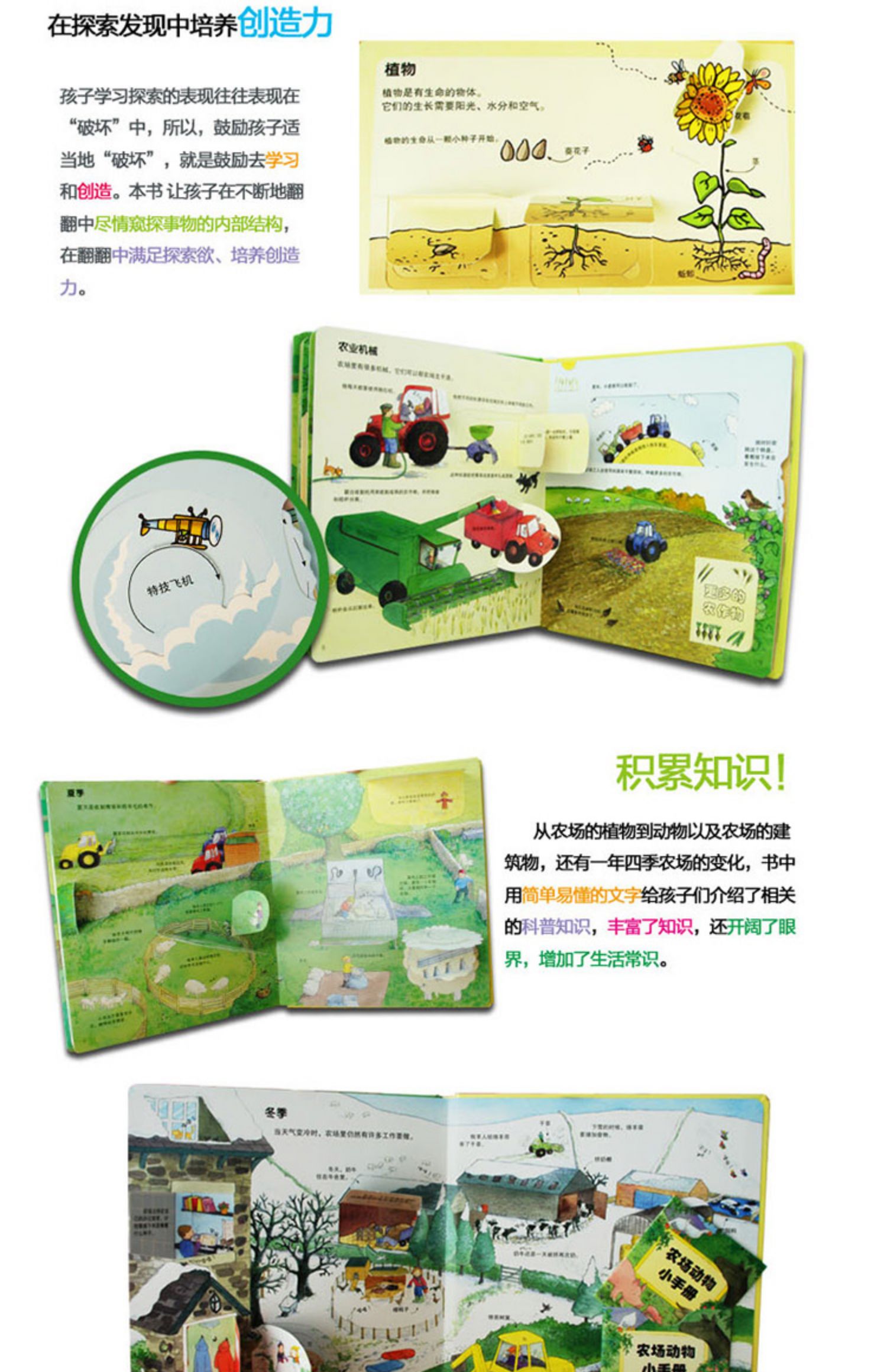 【英国引进】乐乐趣儿童早教启蒙认知洞洞书,婴儿3D立体绘本,揭秘农场科普翻翻书,少儿百科知识绘本。16开大版本,圆角设计,加厚纸板撕不烂,0-12宝宝早教必备,开发大脑潜能,宝妈必备睡前亲子故事书。