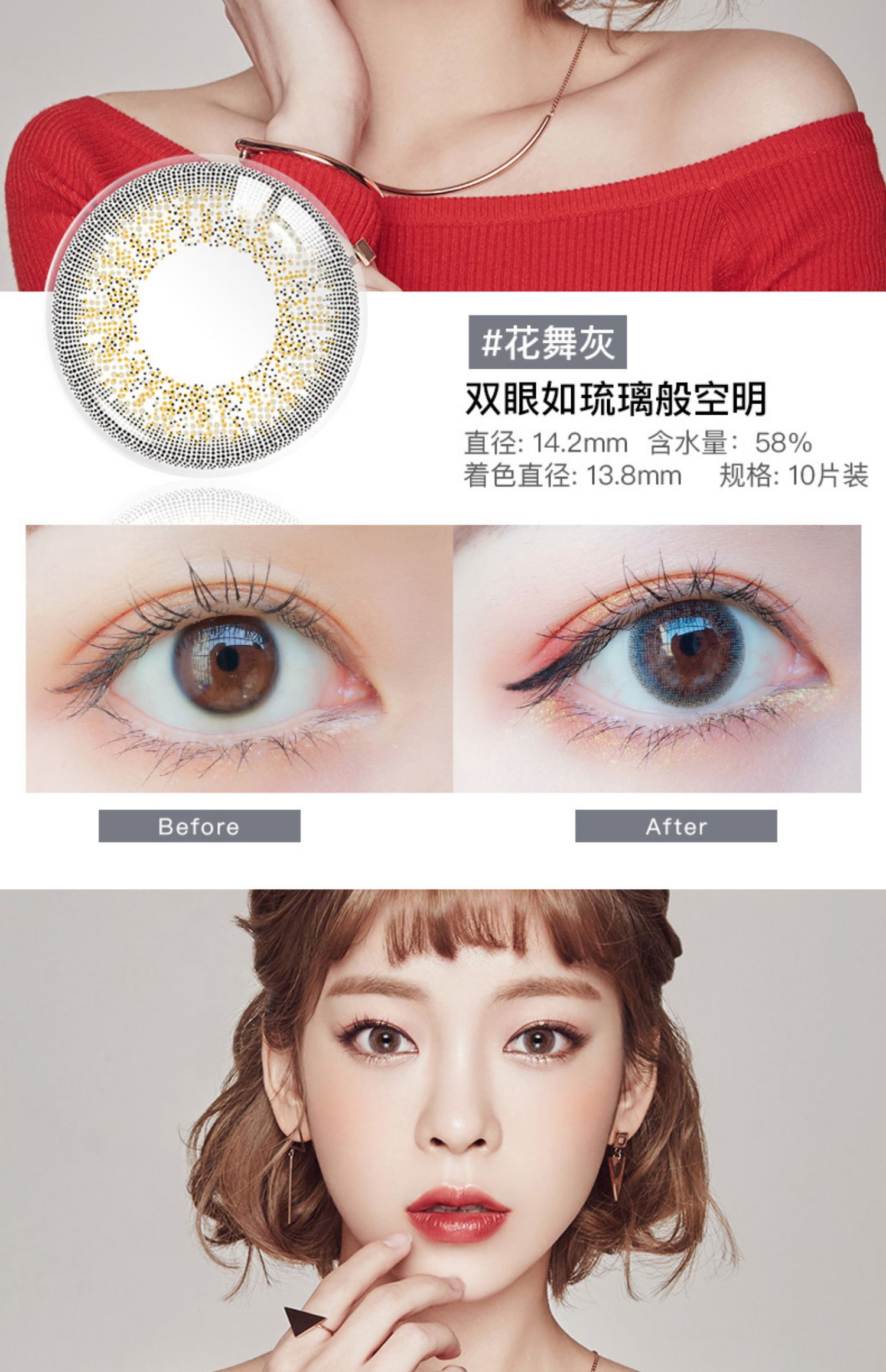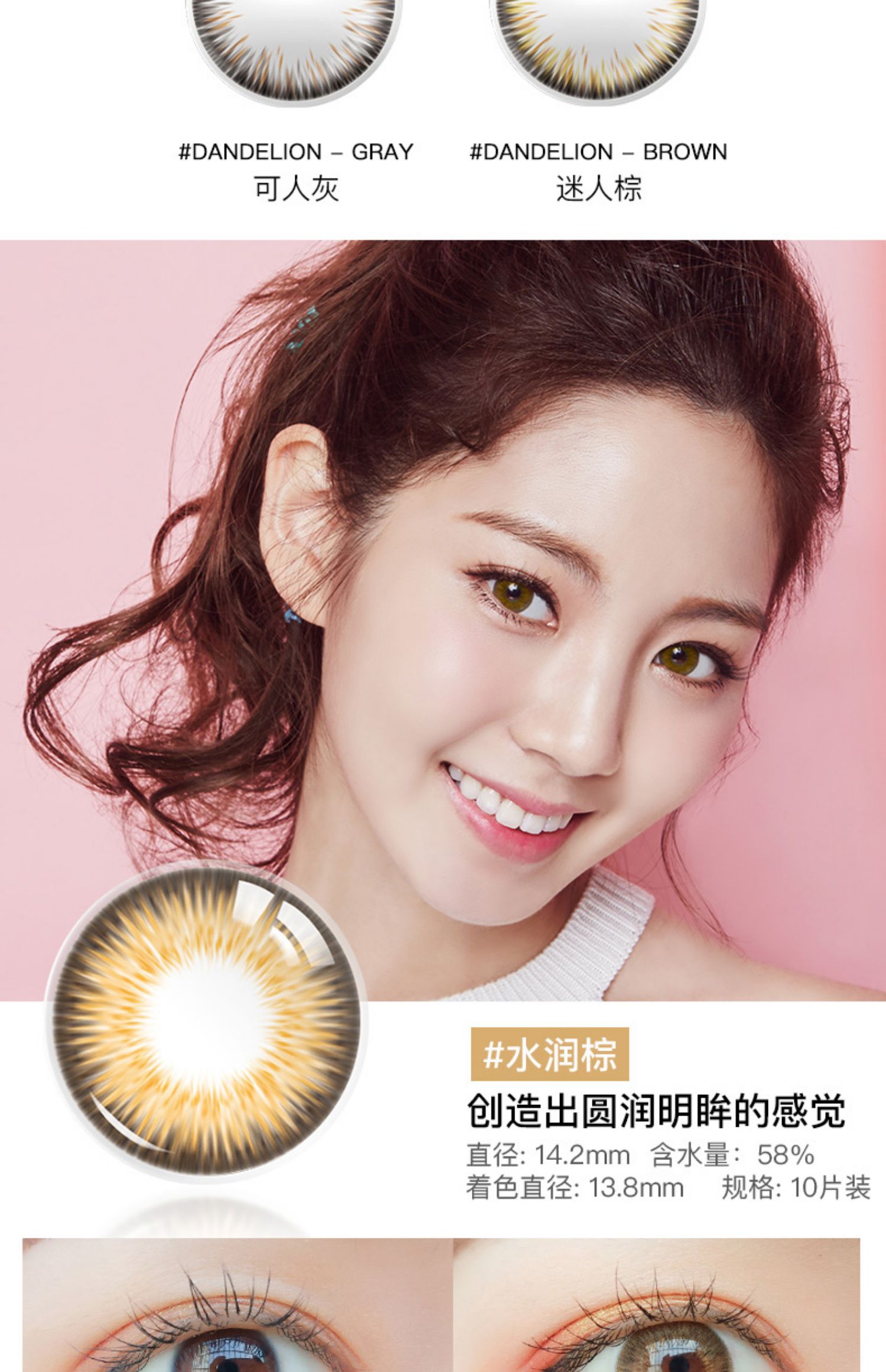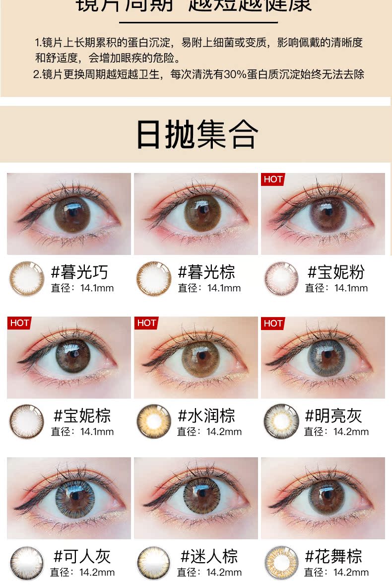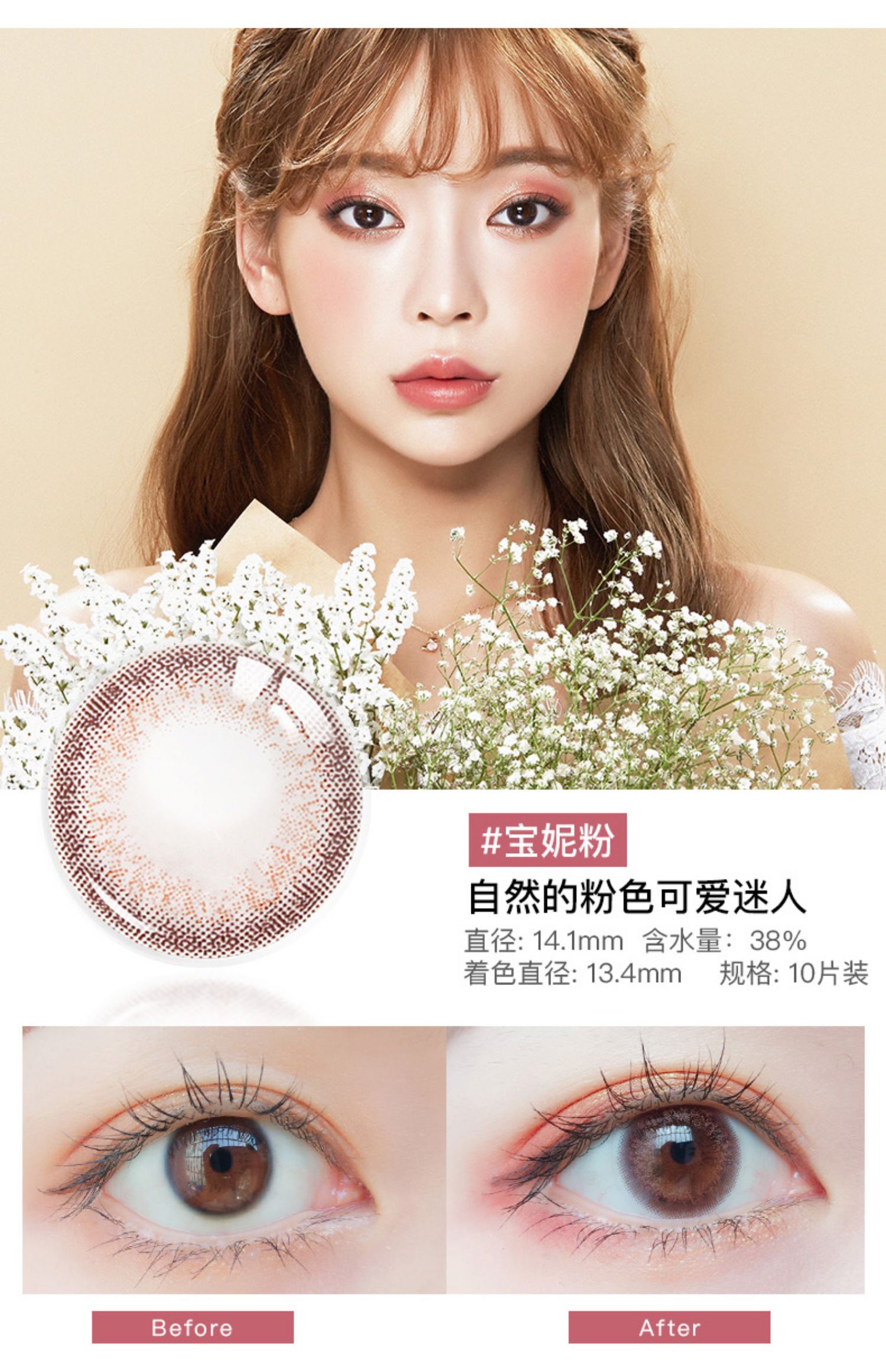 【日抛10片装】13款颜色可选,采用三明治工艺,持久水润,舒适透氧,长时间佩戴也没有异物感,佩戴后双目放大透亮,让双眸如水般清澈灵动~