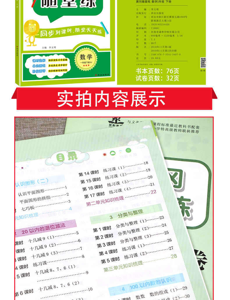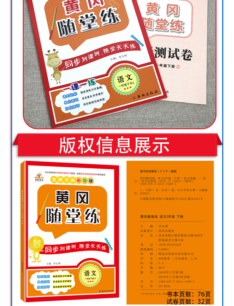 人教版,2020春全新升级彩绘版,书卷双测,多重功能,同步训练,及时巩固,着眼基础,逐步提升,题型多样,典型性强