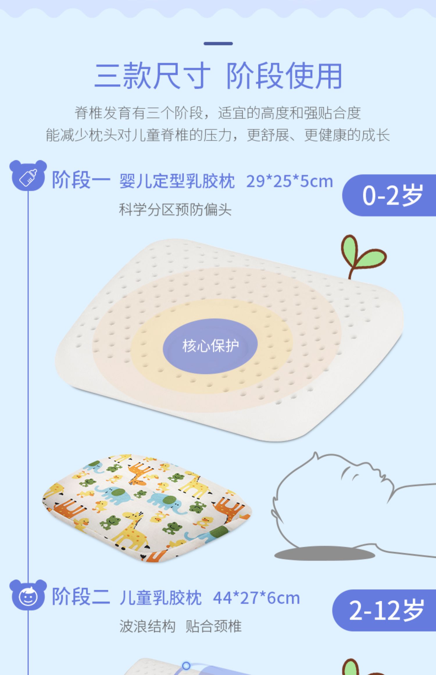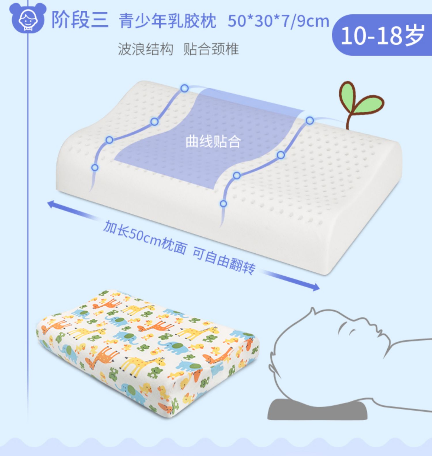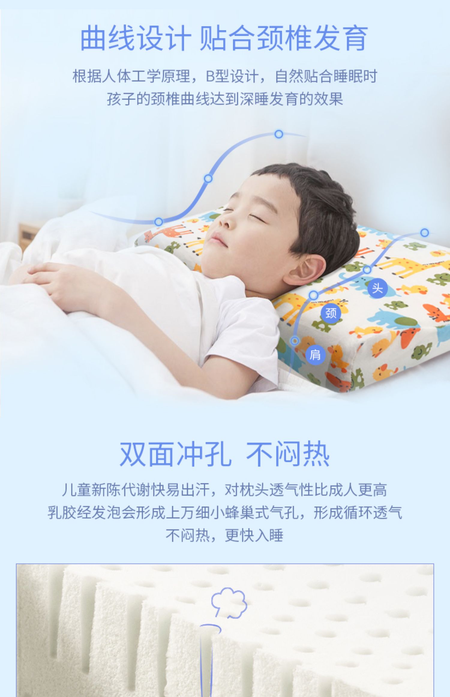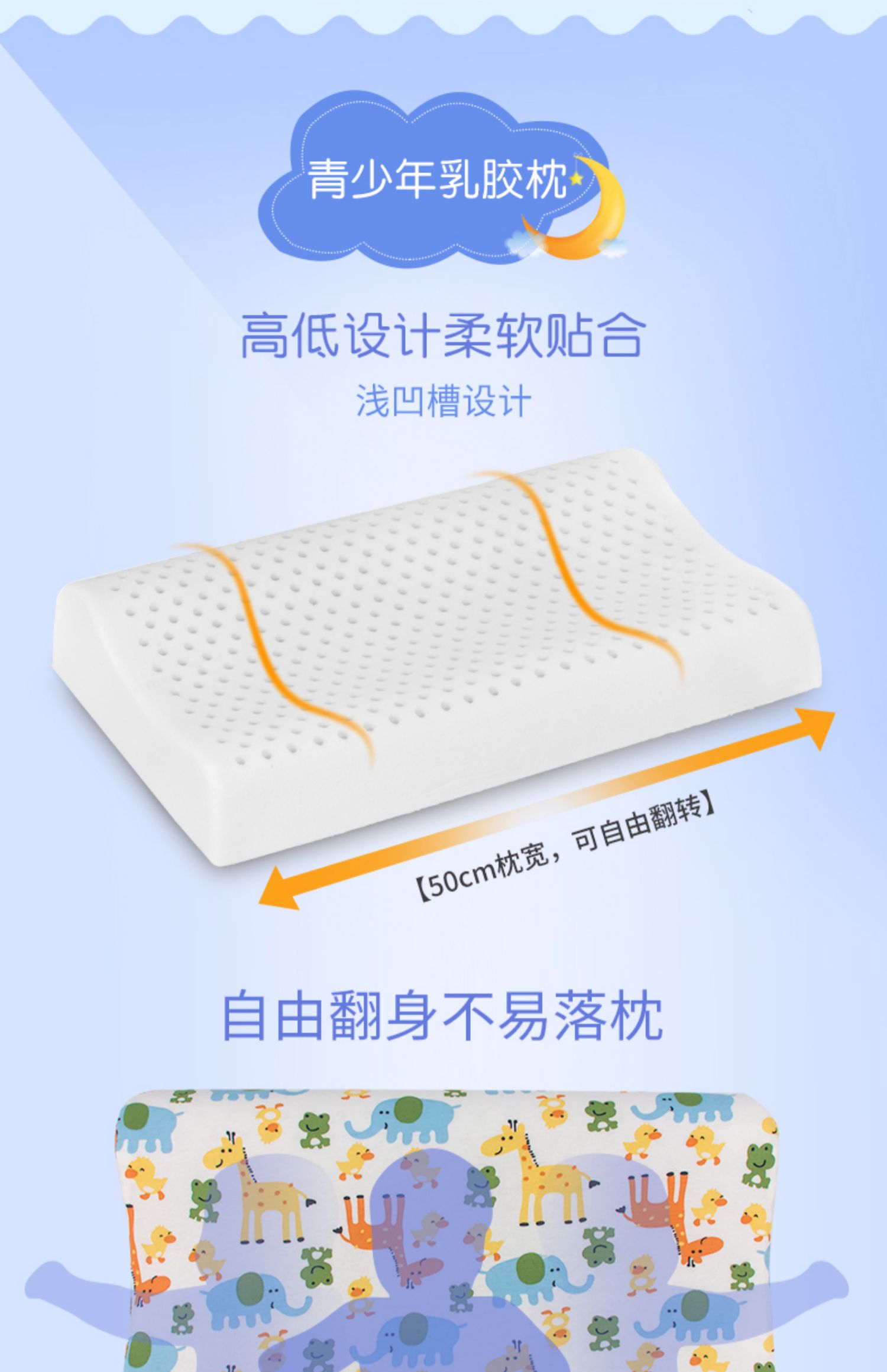 泰国原产地乳胶儿童枕0-18岁不同设计,天然乳胶更安全驱螨无甲醛ECO认证,SGS检测等四大权威认证,专为宝宝设计,轻盈透气不闷热,柔软Q弹,防偏头,舒适睡眠,睡出好头型【赠运费险】