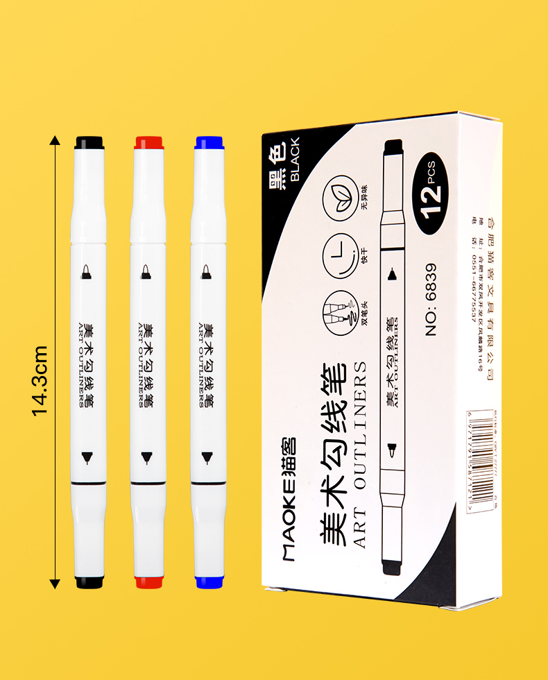 【天猫正品保障】采用优质塑料笔身,双头可用,笔触柔和,粗细均匀,出水流畅,速干不脏手,绘画勾描,增加无限神韵,可持续长时间使用