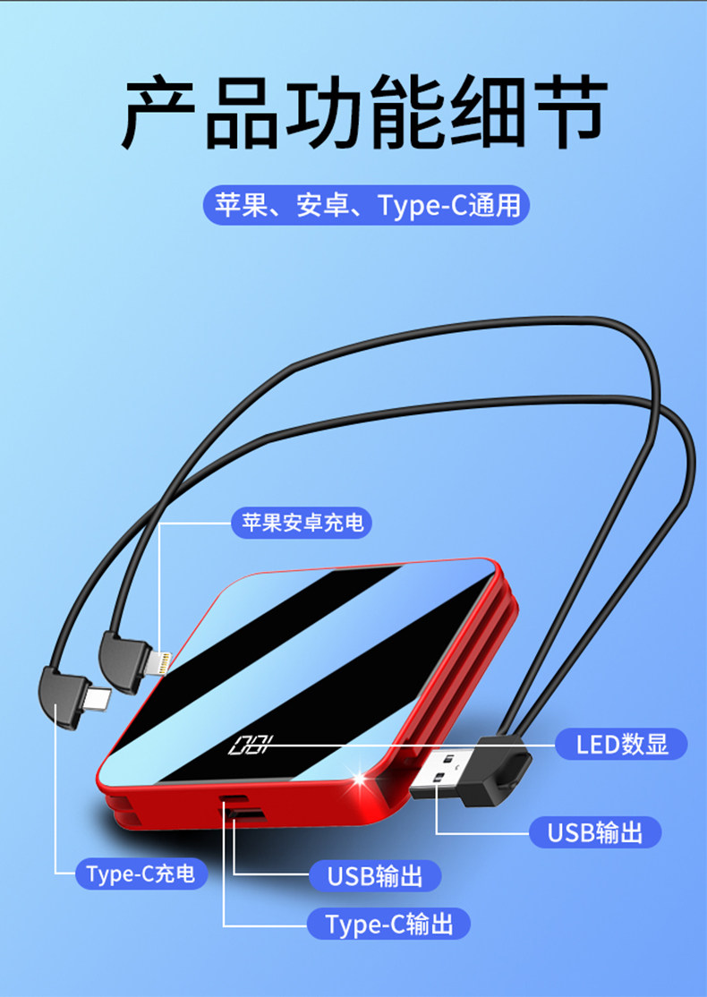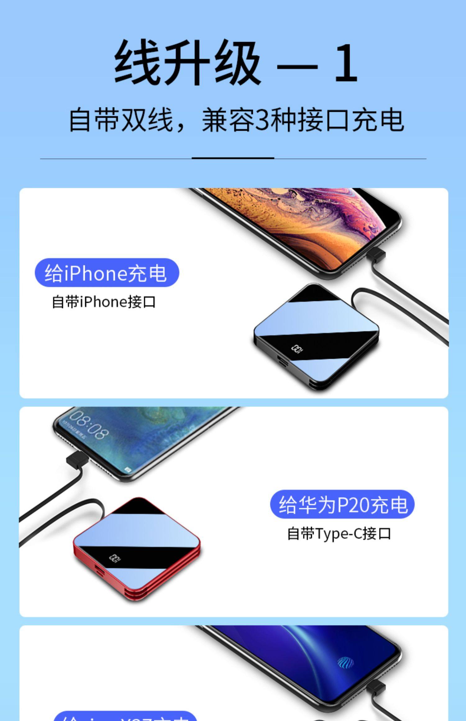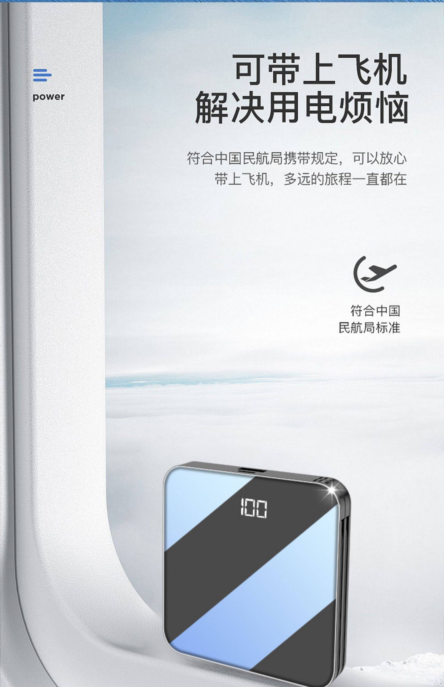 【天猫精选!严选好物!抖音爆款】20000毫安超大容量迷你充电宝,充一次够用一星期,出行携带无压力,全镜面身,七天超长待机续航双向快充不发热,拒绝虚电,心动不如行动,赶紧上!~【赠运费险】