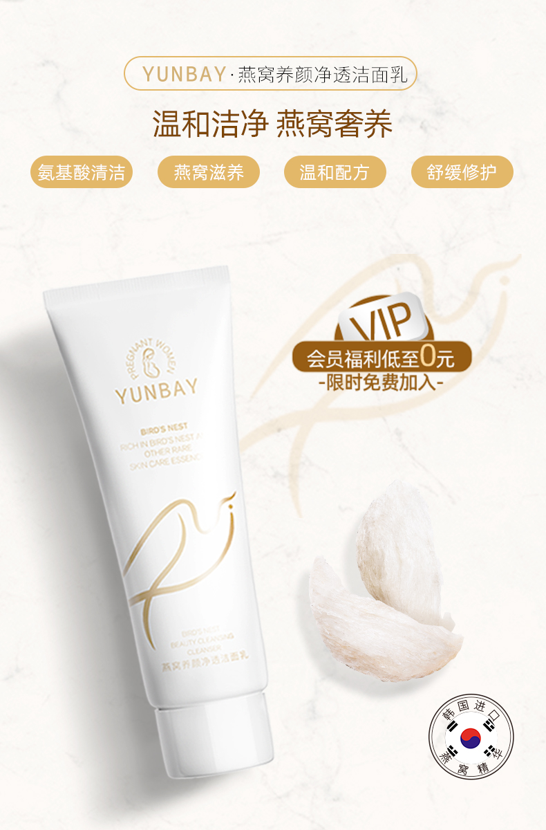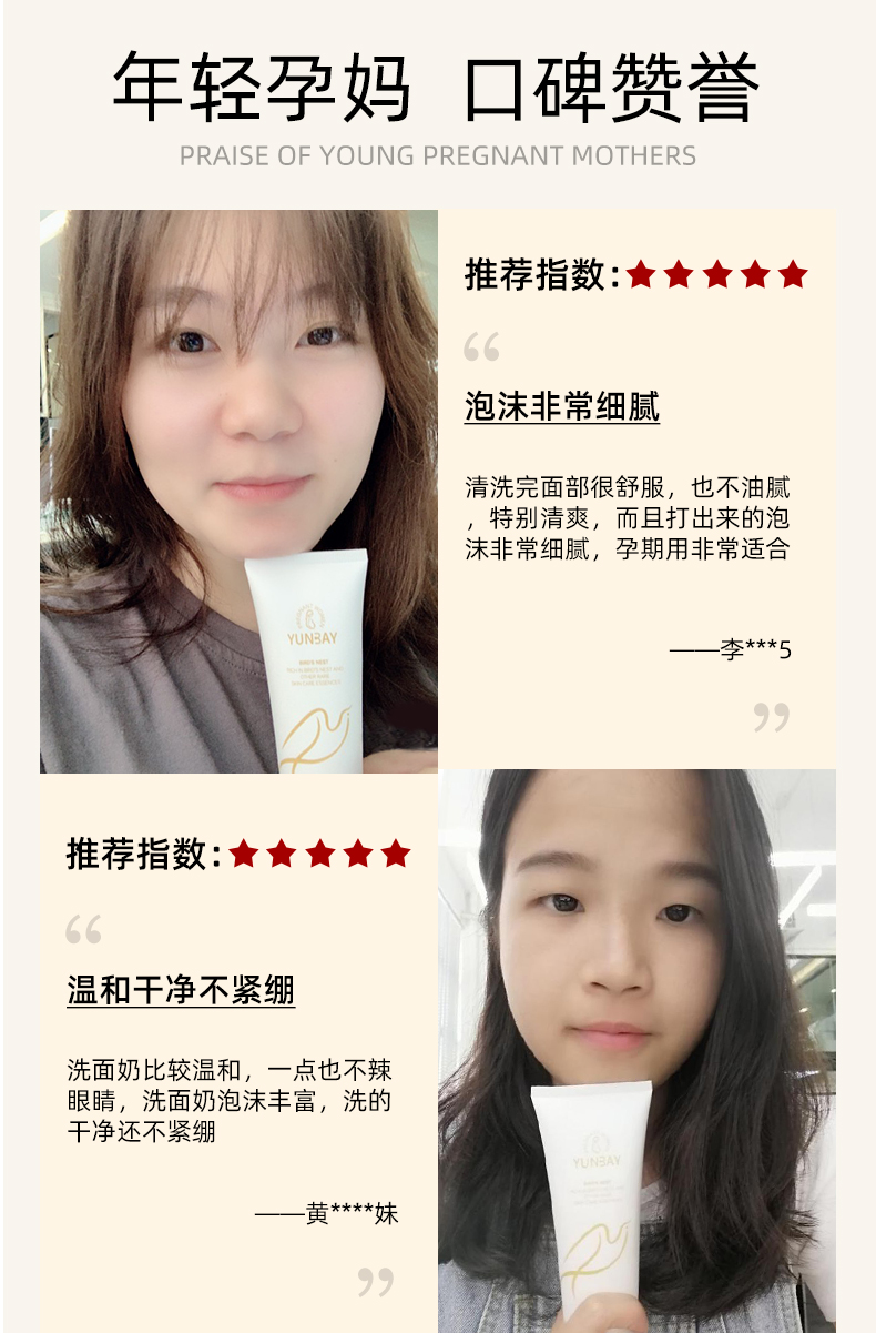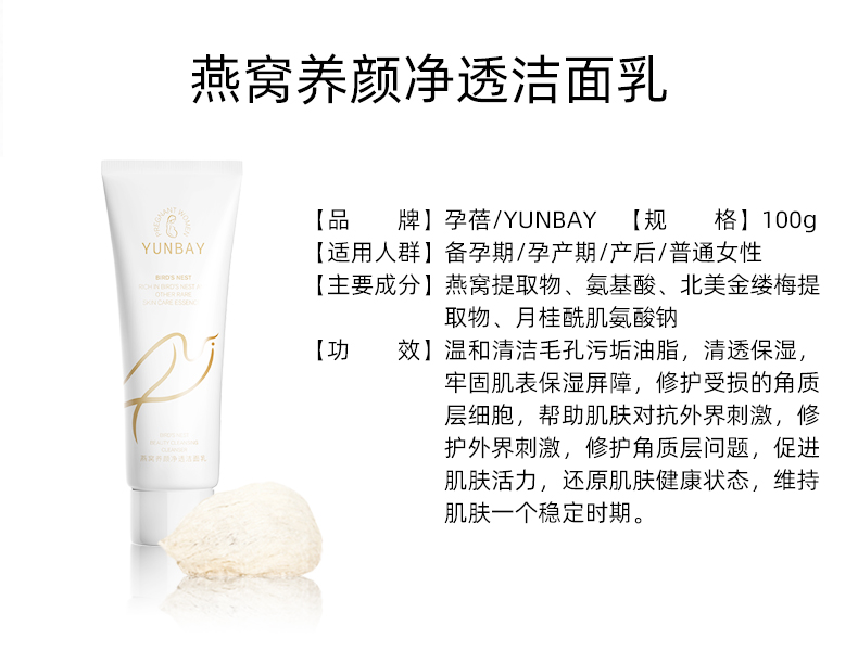 【孕蓓】买一送一!燕窝天然补水保湿深层清洁洁面乳~进口燕窝,温和洁净,修护受损的角质层细胞,促进肌肤活力!洗后不紧绷!